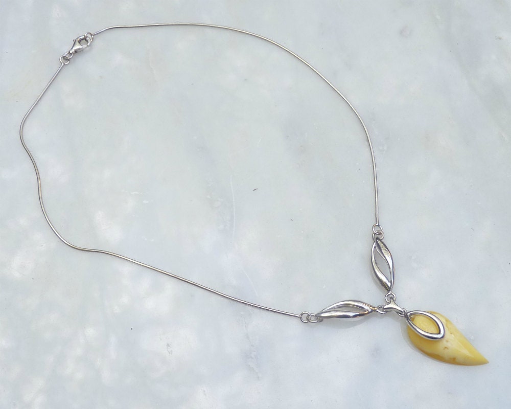 Baltic Amber necklace with a butterscotch leaf pendant on 925 sterling silver chain.