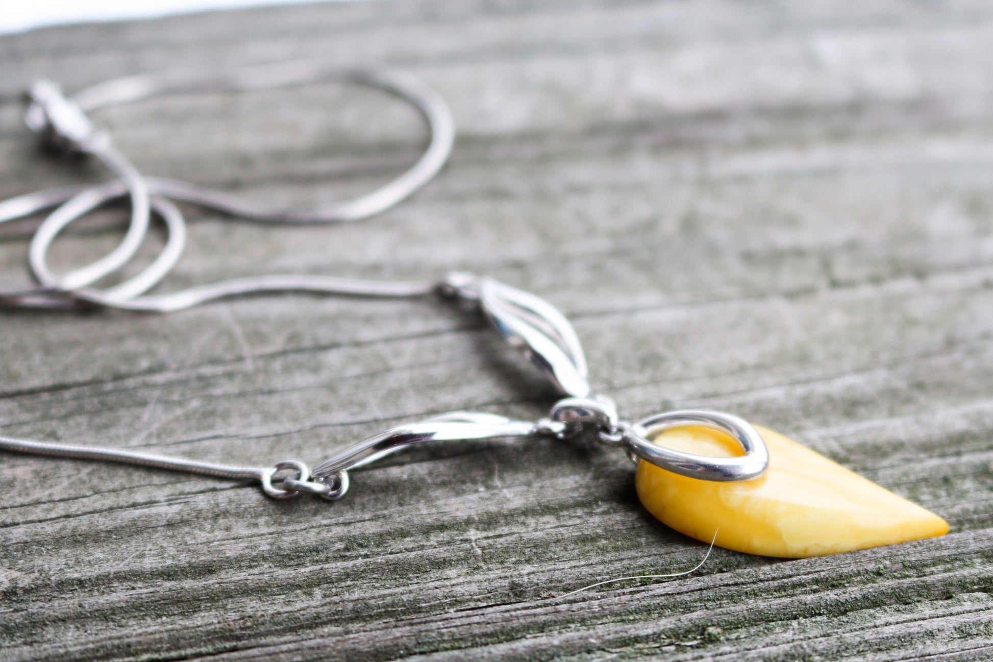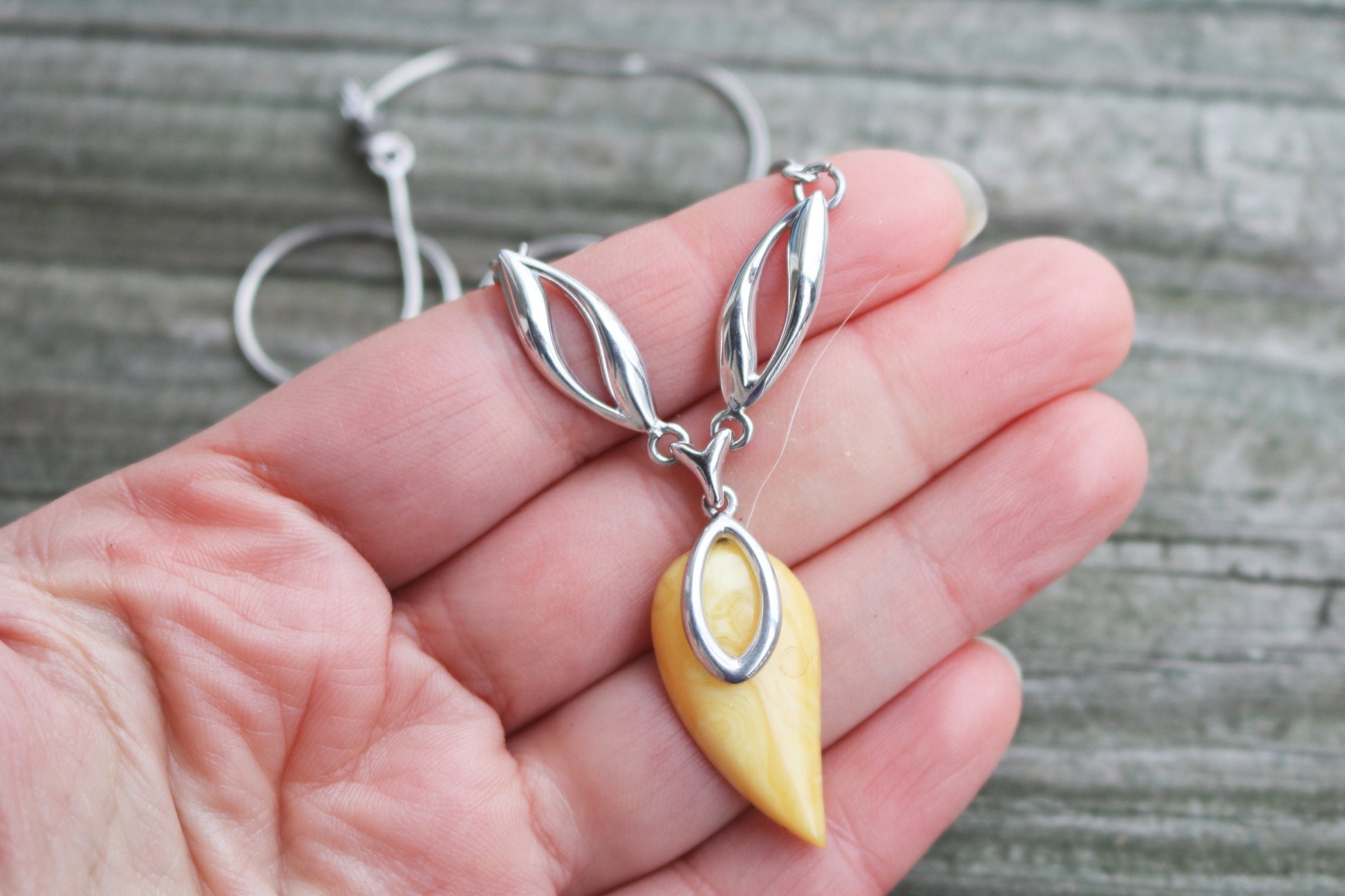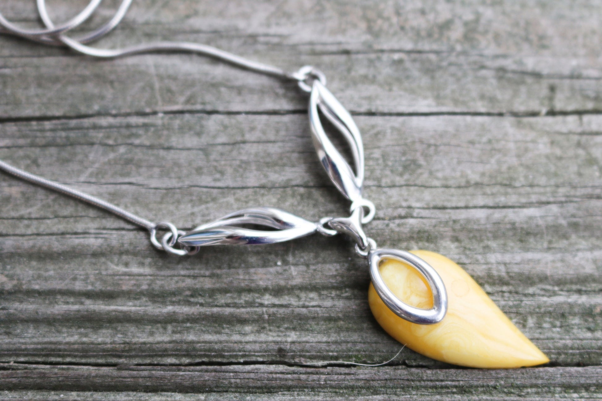 The amber pendant without silver is 1.1 inch long (2.8 cm).