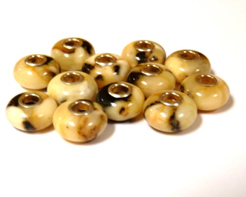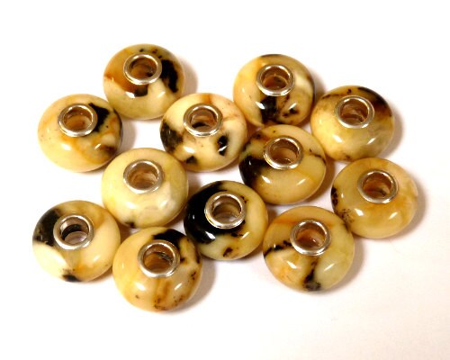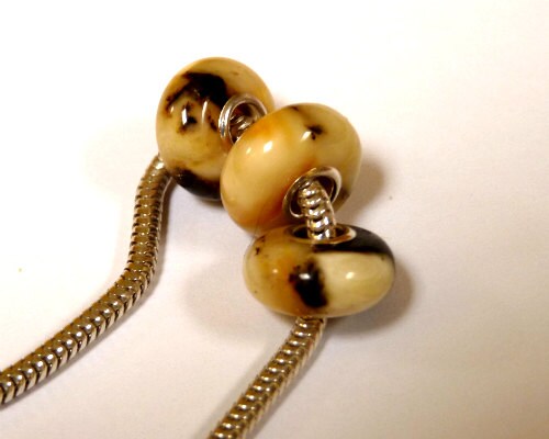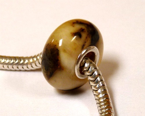 Baltic amber charm bead with 4 mm 925 sterling silver core. Natural butterscotch color with grey inclusions.