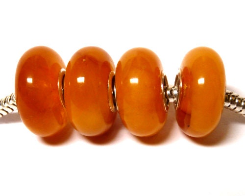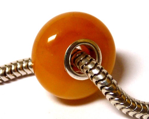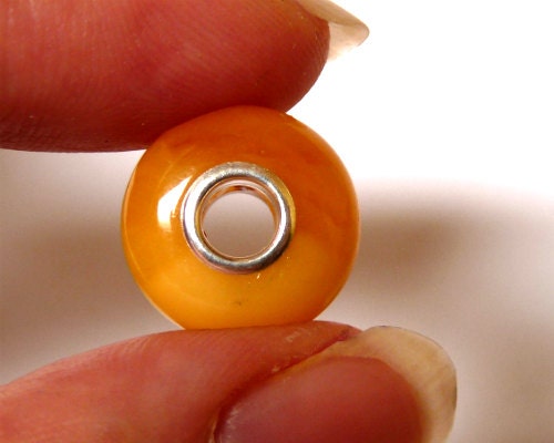 Natural Baltic amber European charm bead with 4 mm 925 sterling silver core.