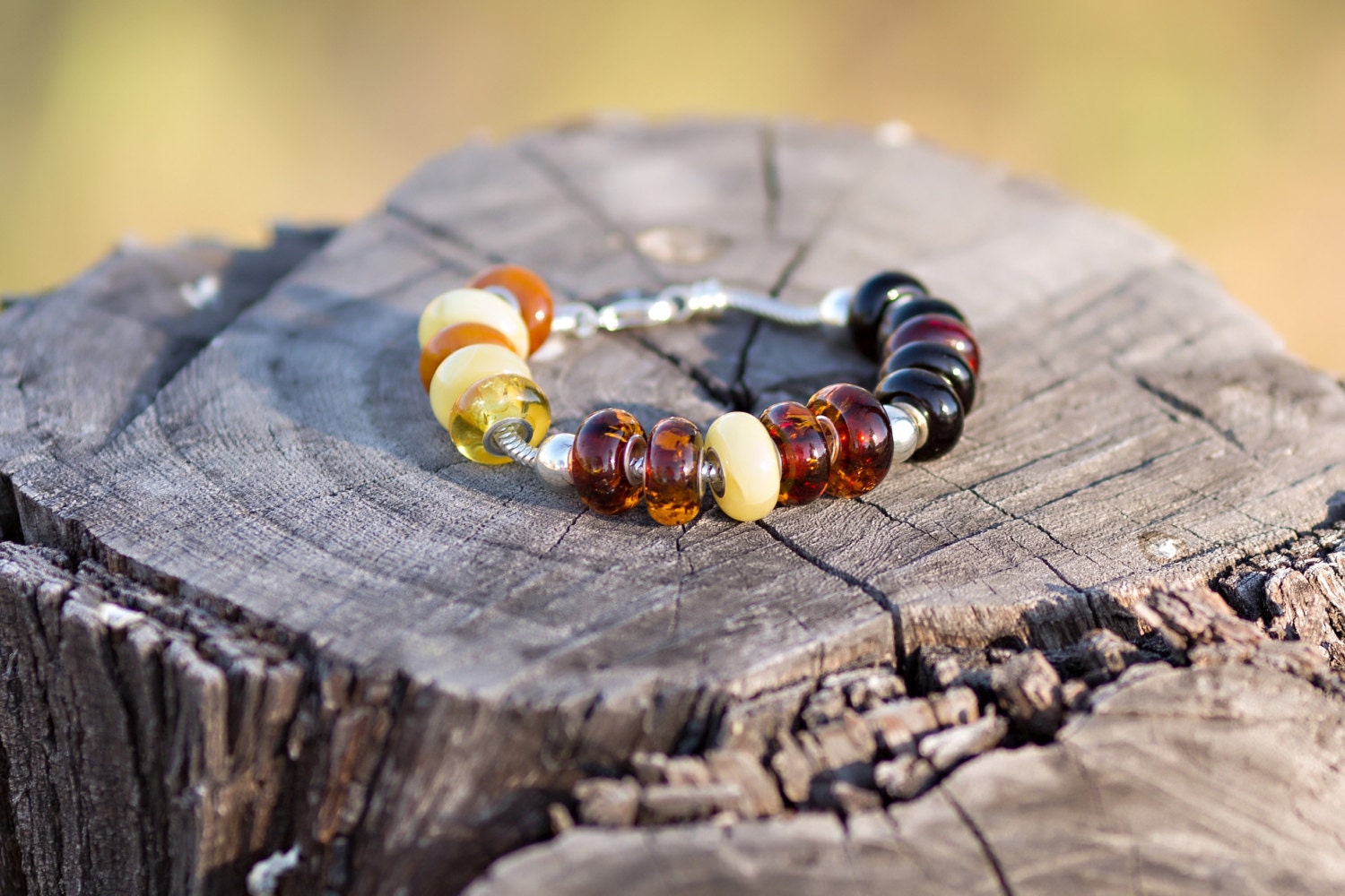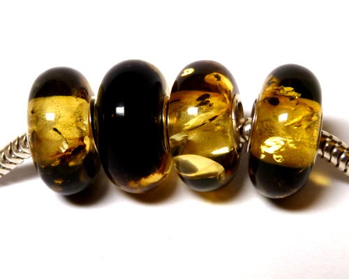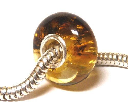 Natural Baltic amber European charm bead with 4 mm 925 sterling silver core.