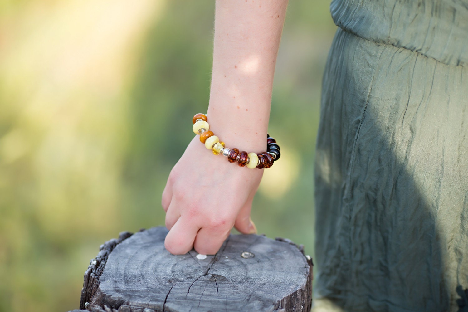 Baltic Amber Charm Bead green with inclusions for charm bracelet