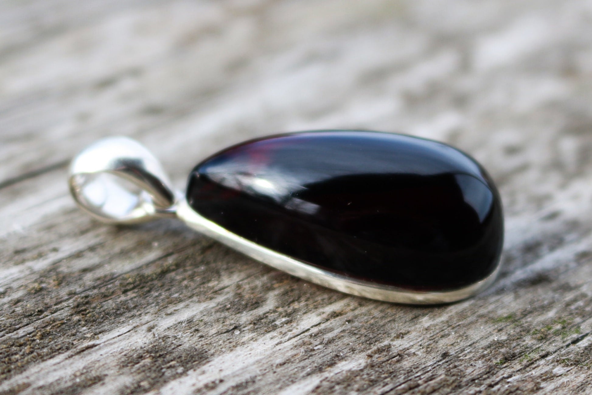 Baltic Amber Cherry Pendant Drop Unisex Jewelry 1.6" 9.6 gram 925 Silver