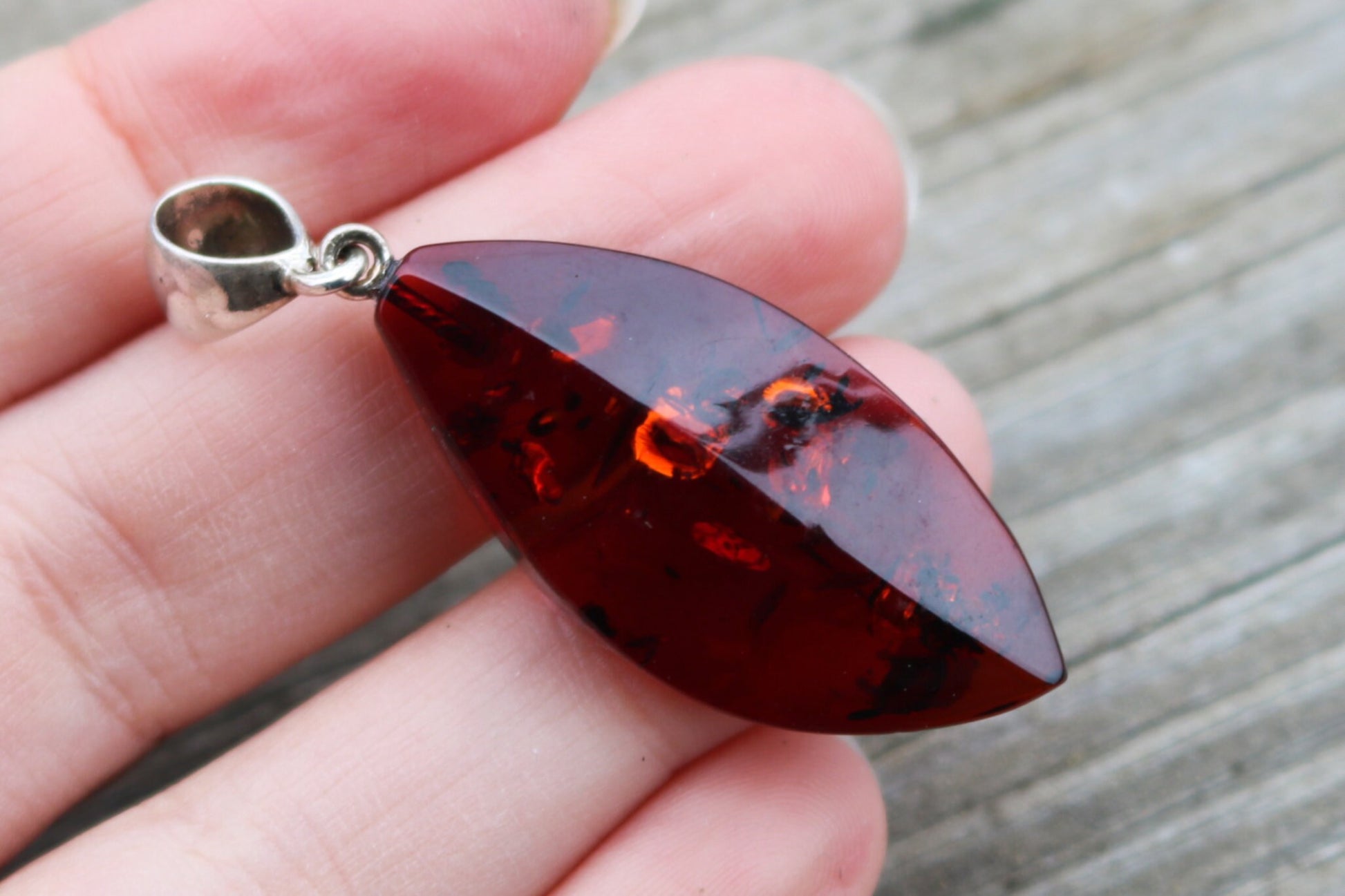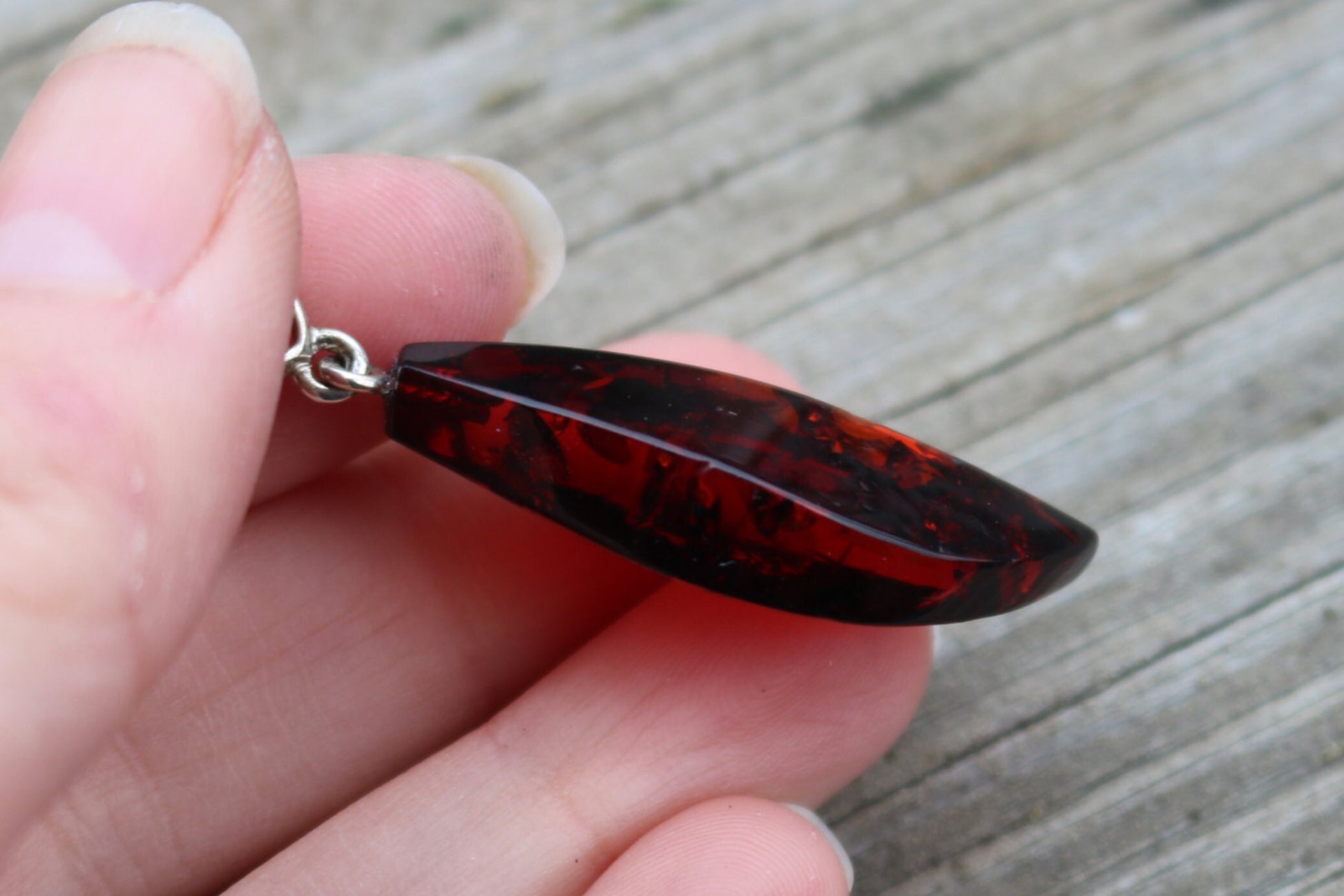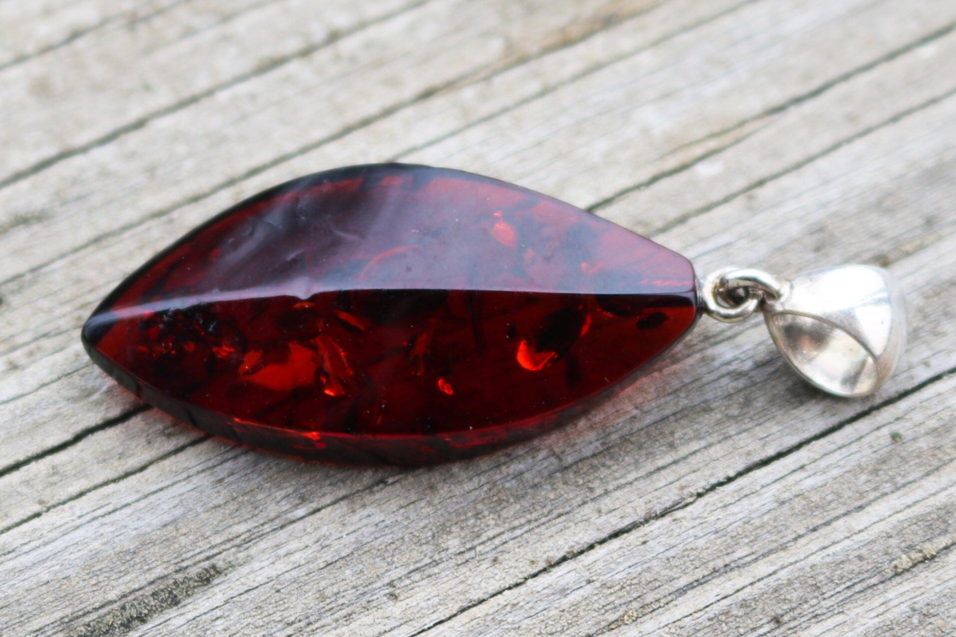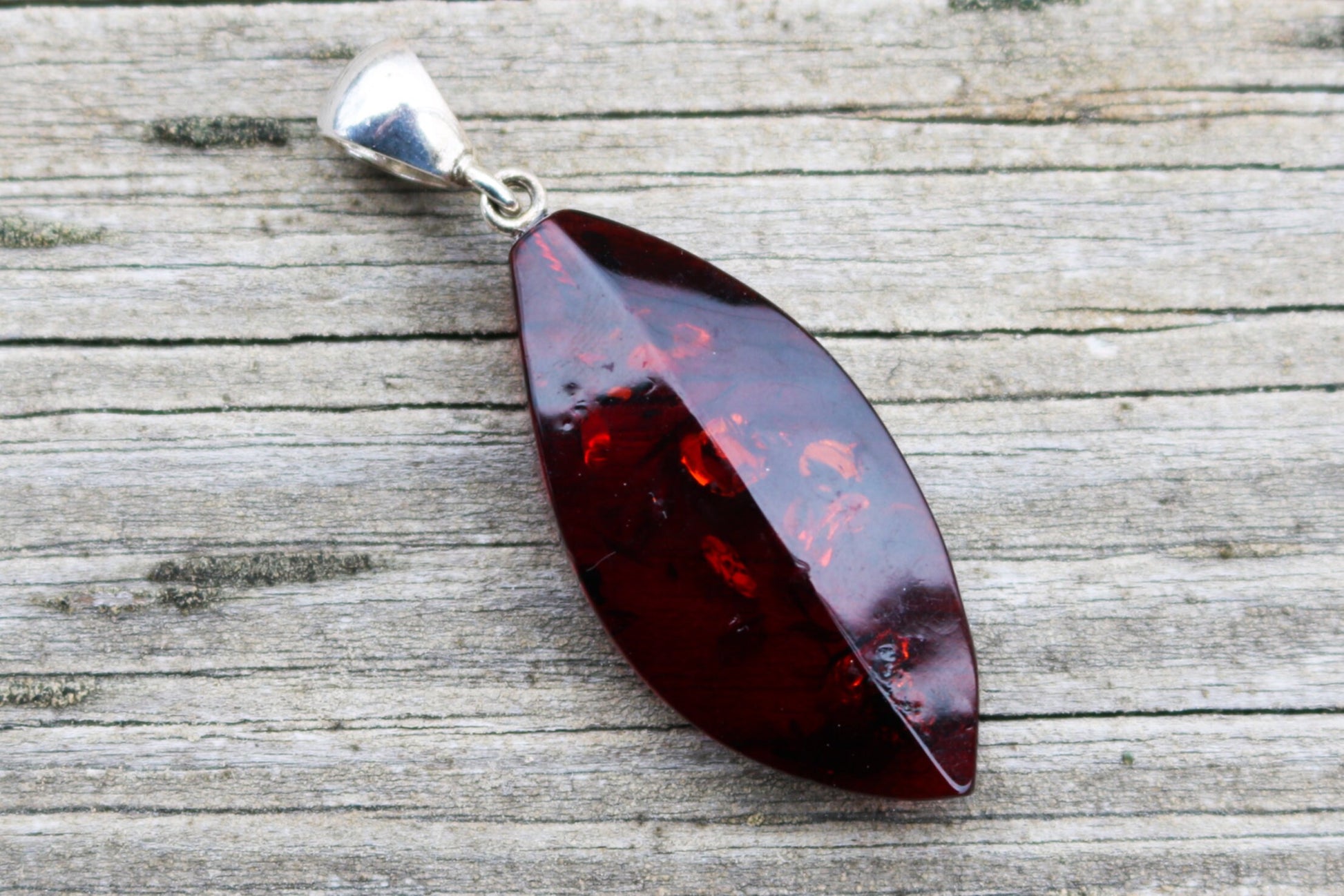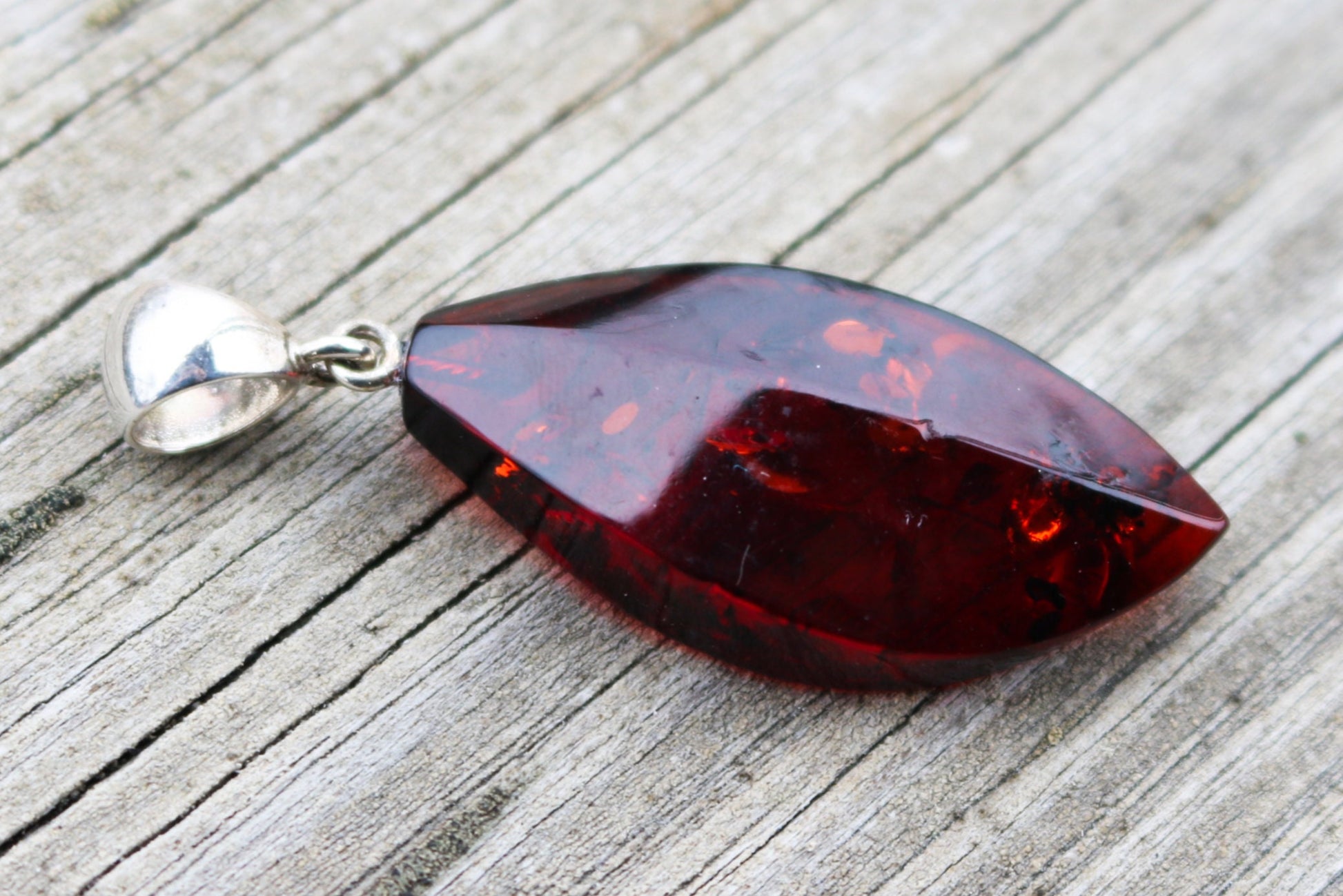 Baltic Amber Cherry Pendant Faceted Jewelry 1.97" 4 gram 925 Silver