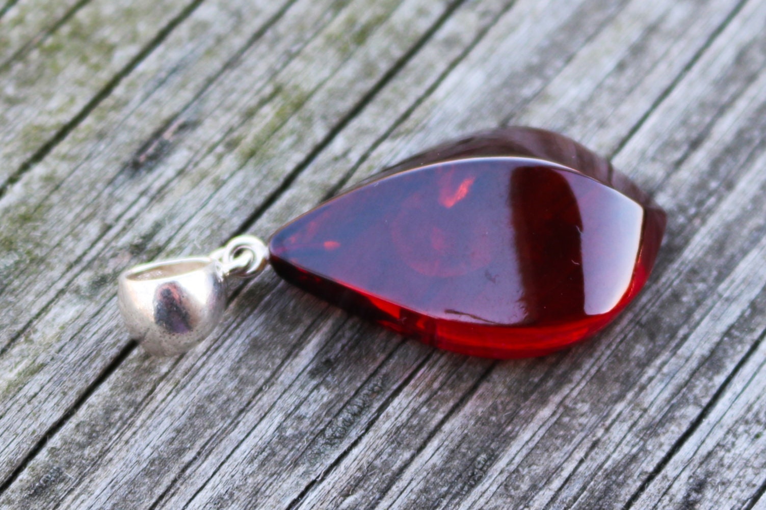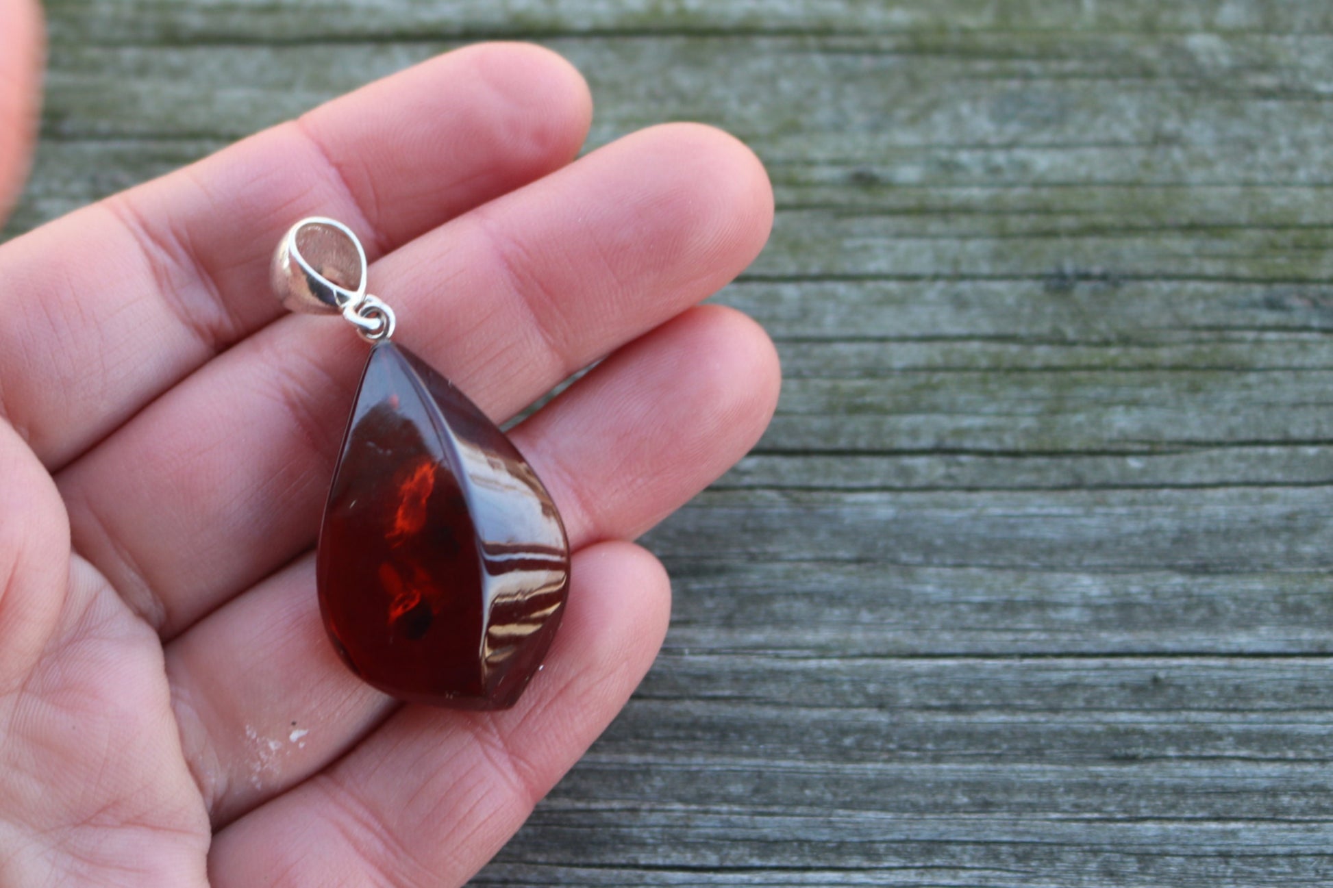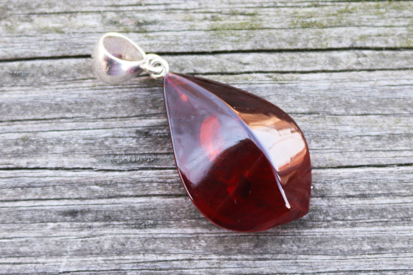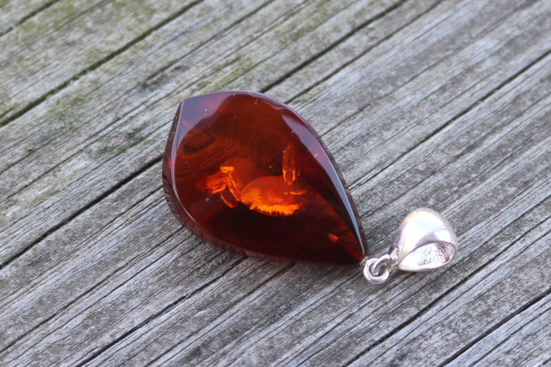 Baltic Amber Cherry Pendant Faceted Natural Unisex 1.9" 5 gram