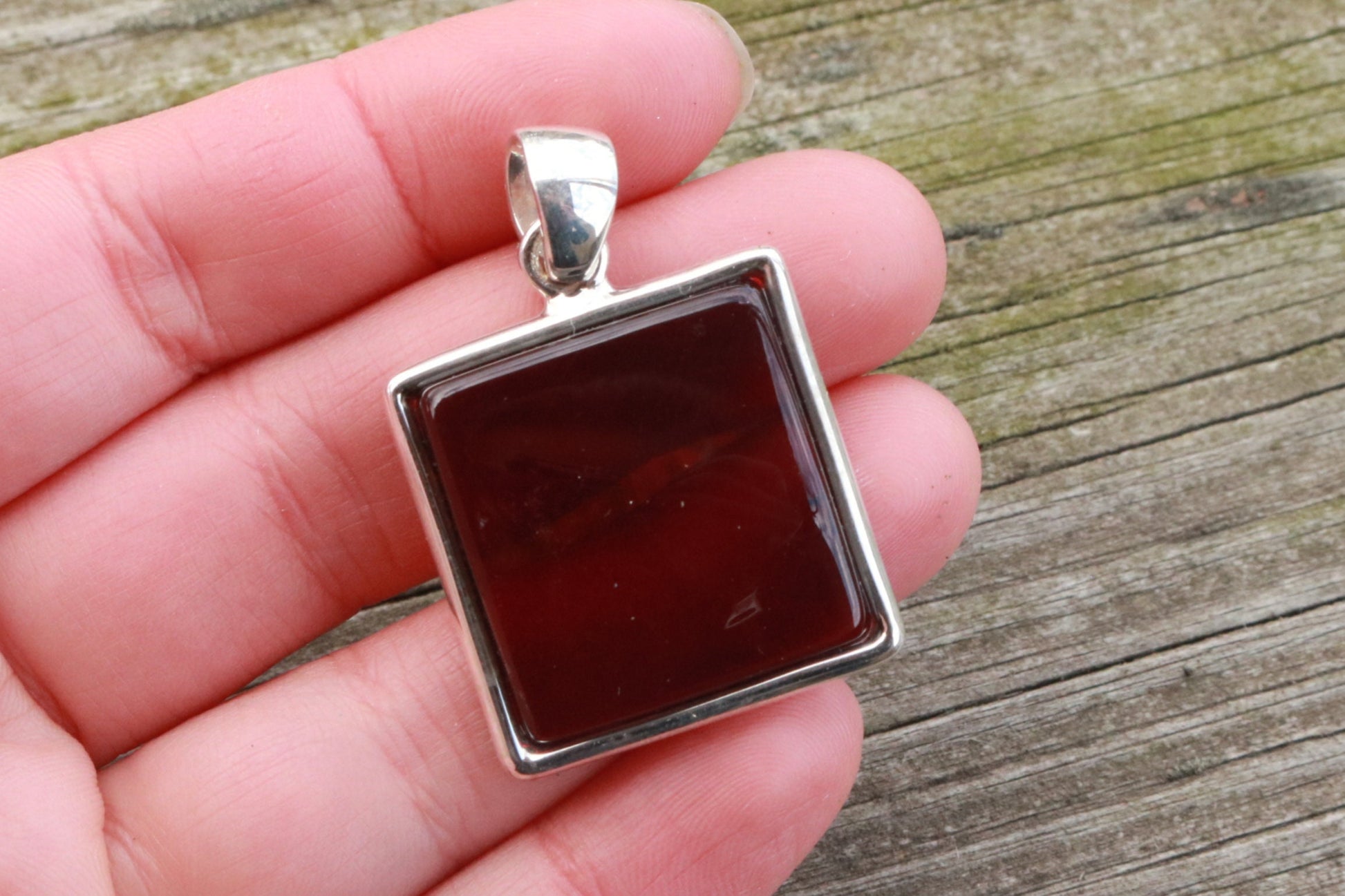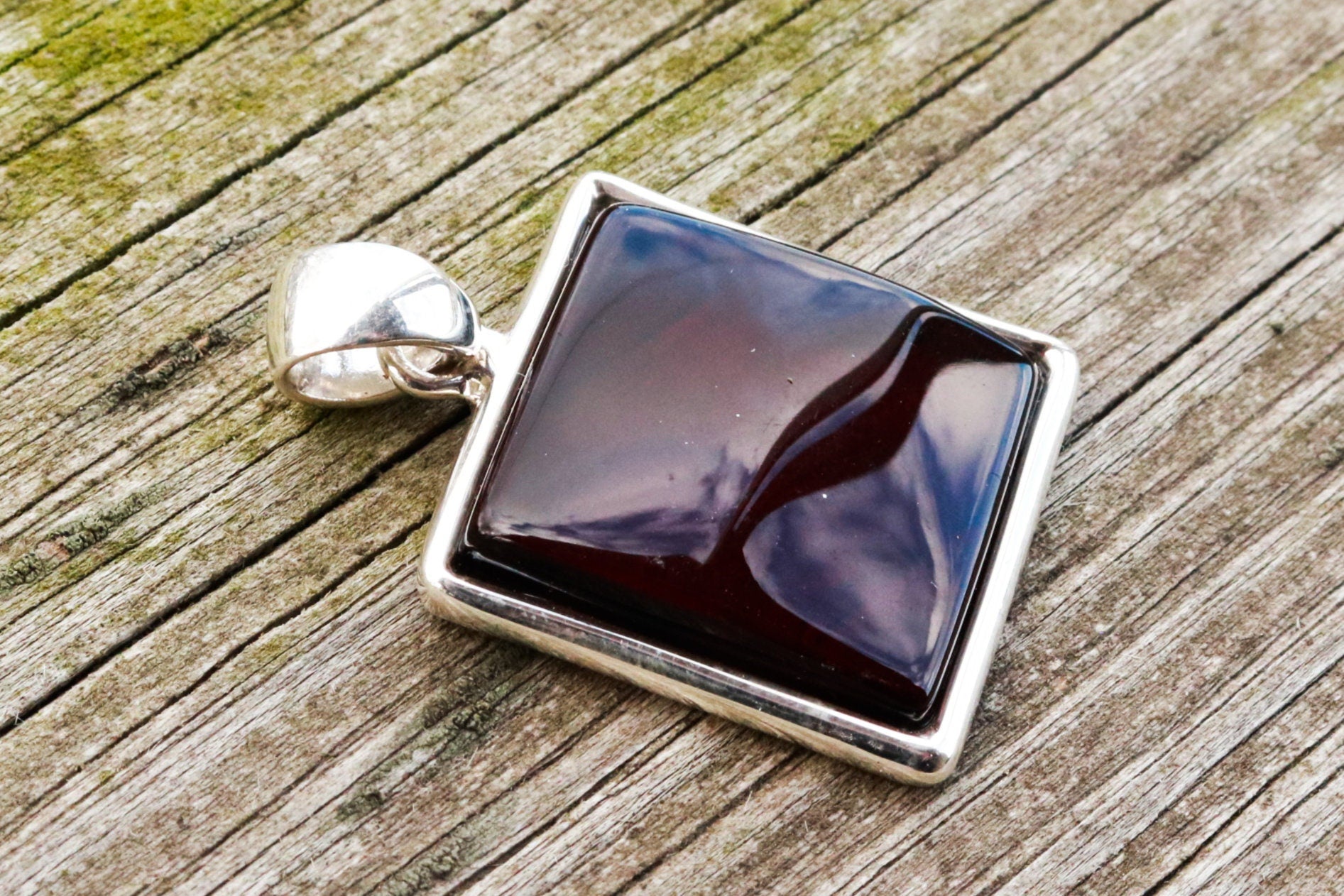 Baltic Amber Cherry Pendant Square Unisex Jewelry 1.63" 10 gram 925 Silver