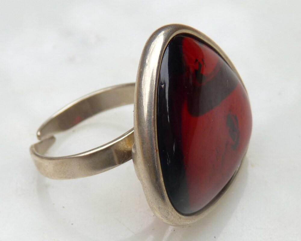 Baltic Amber Cherry Ring Adjustable Natural Jewelry 10.5 gram 925 Silver