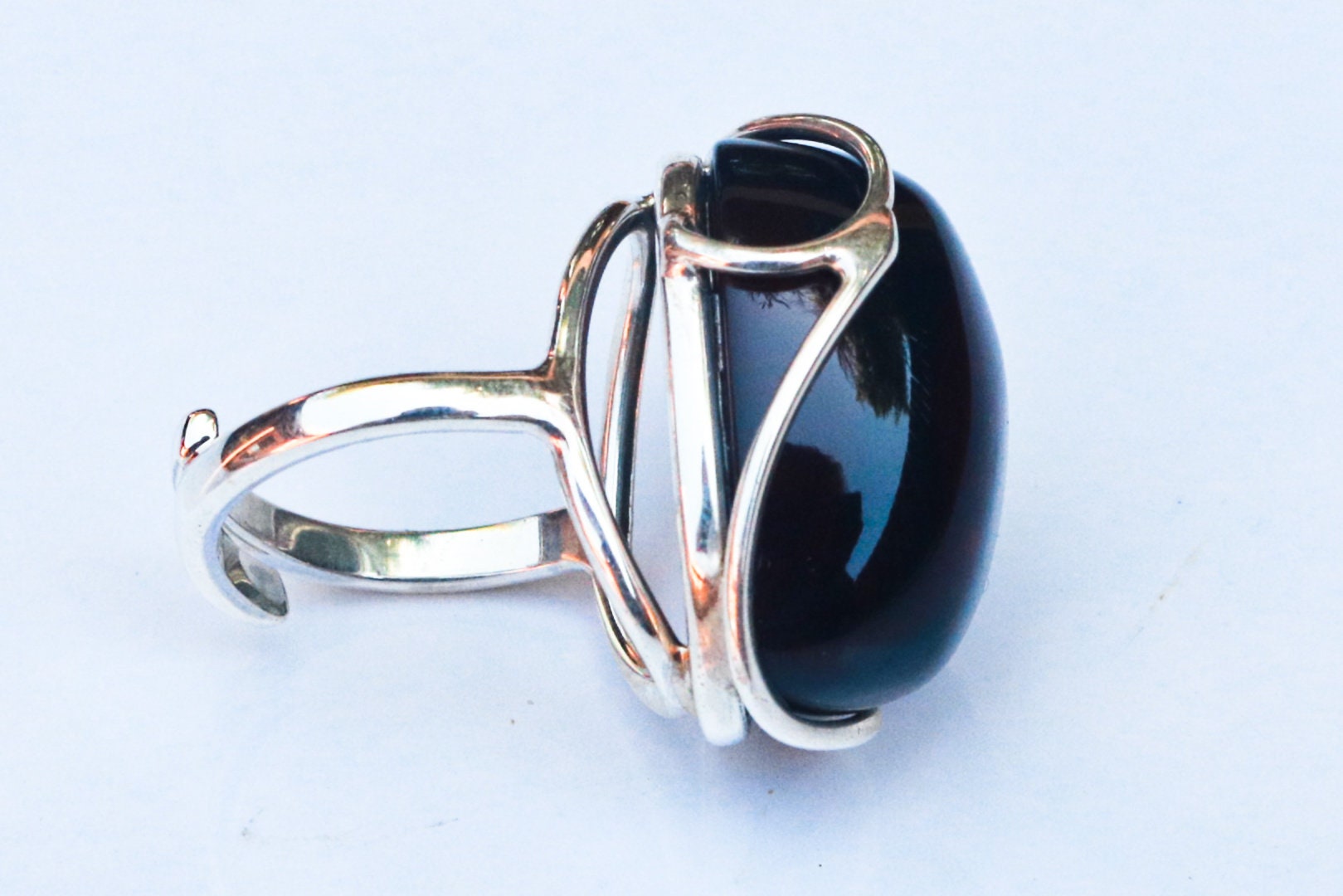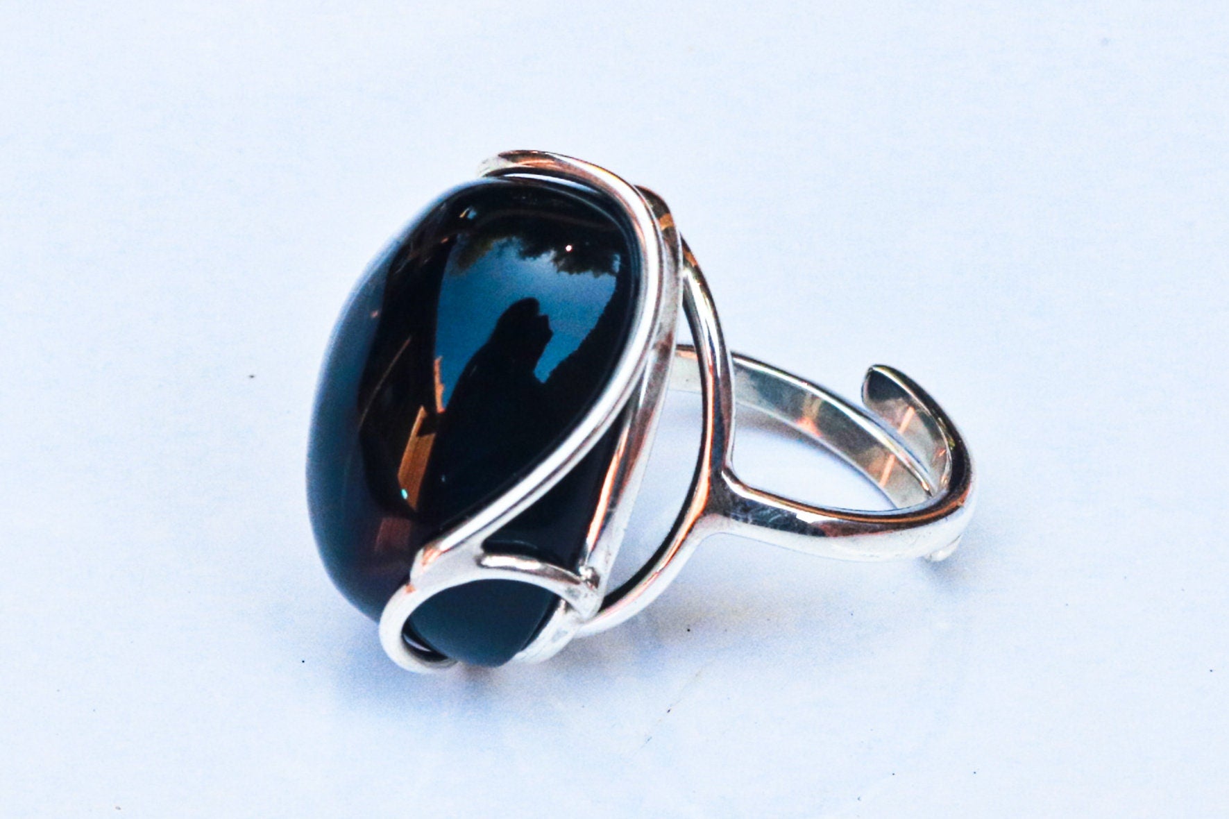 Baltic Amber Cherry Ring Adjustable Natural Jewelry 925 Silver 13 gram