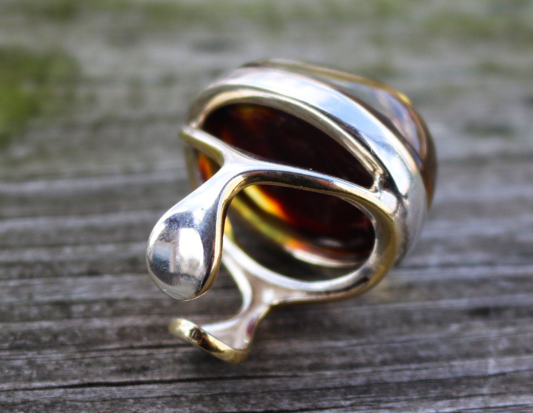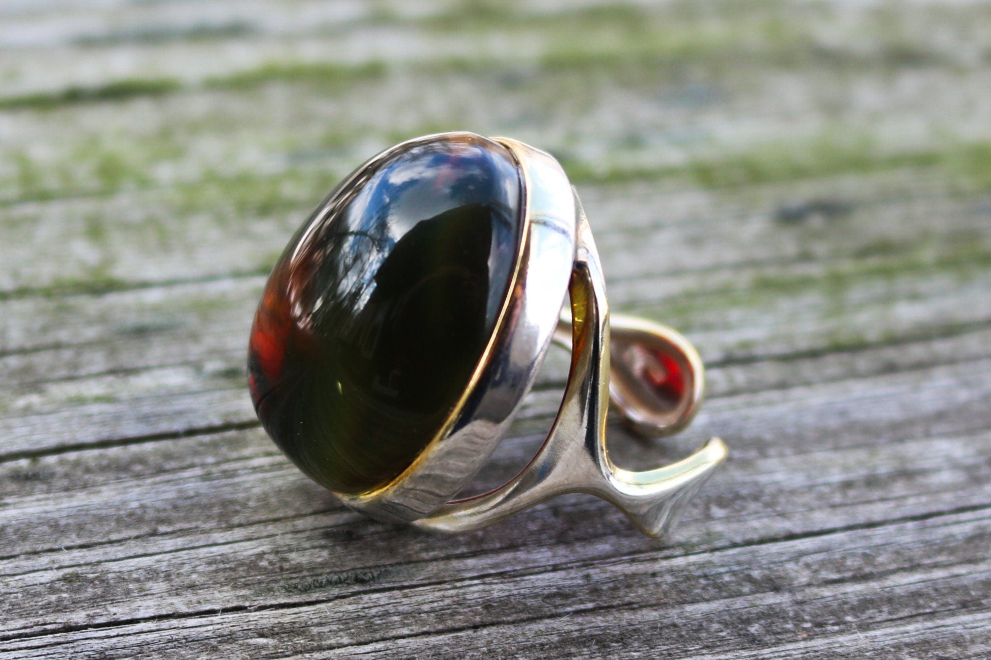 Rare Baltic Amber ring in natural untreated cherry color with some parts of honey color. Set in 925 sterling silver. This ring is adjustable. Will fit any size.