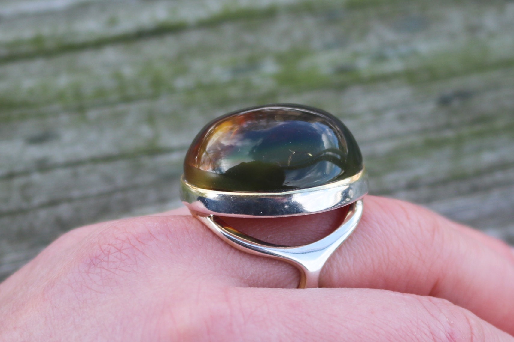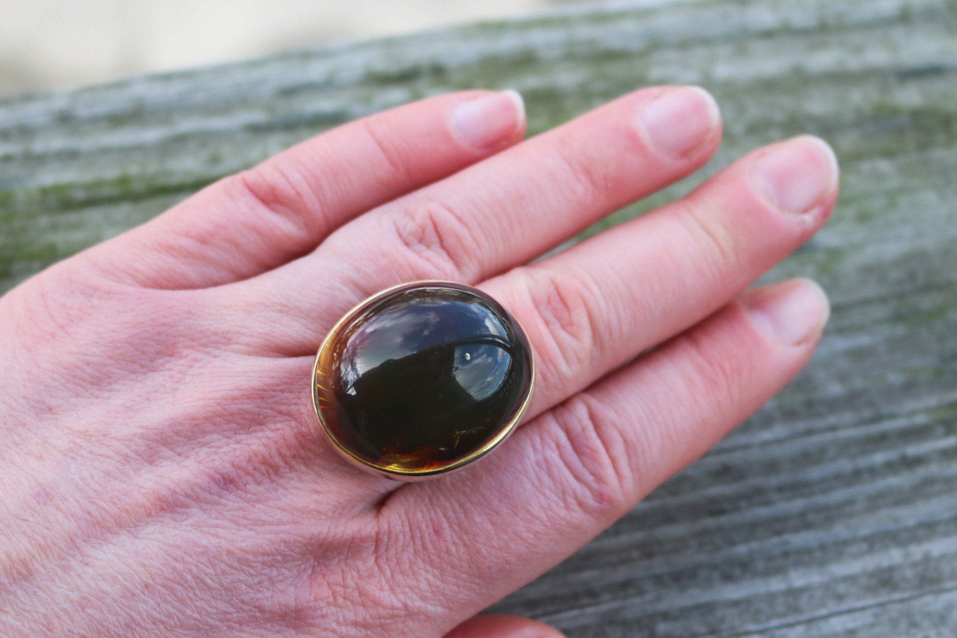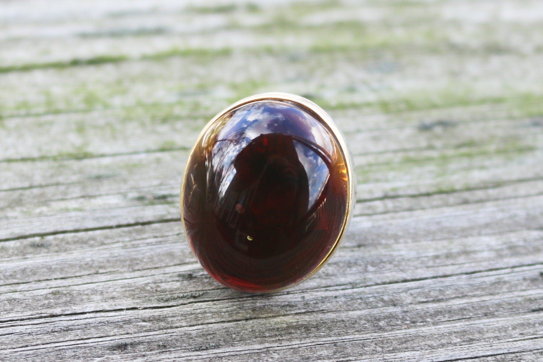 Baltic Amber Cherry Ring Large Adjustable Round Natural Untreated 925 Silver 18.4 gram