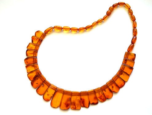 Baltic Amber necklace in translucent cognac/whisky beads of slightly irregular shape in very feminine Cleopatra style