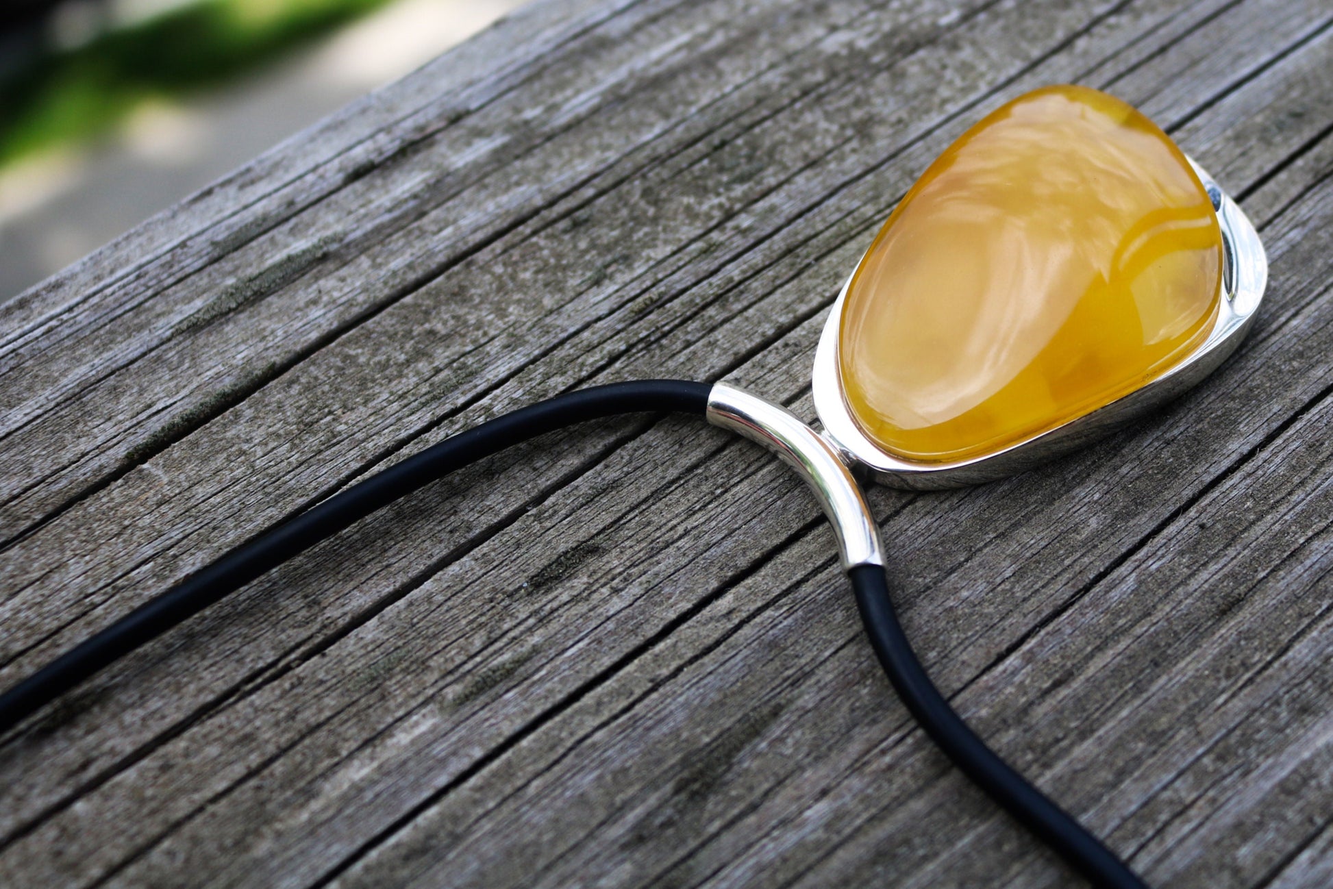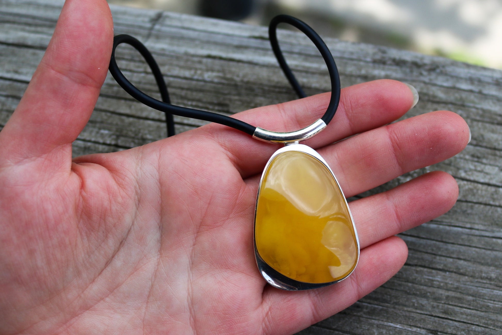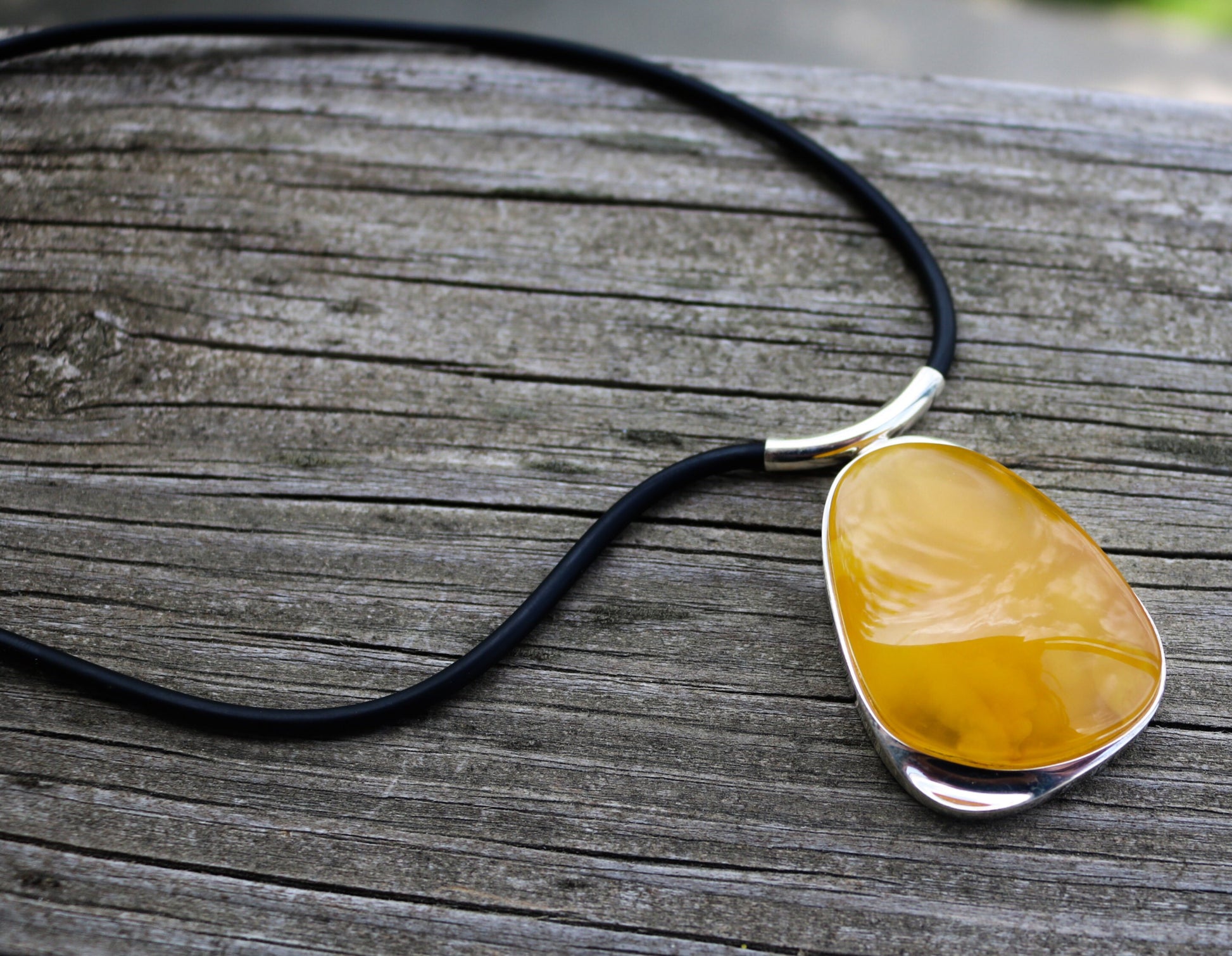 Baltic Amber Choker Pendant Butterscotch Necklace Cord Adjustable Natural Untreated Jewelry 28 gram 925 Silver