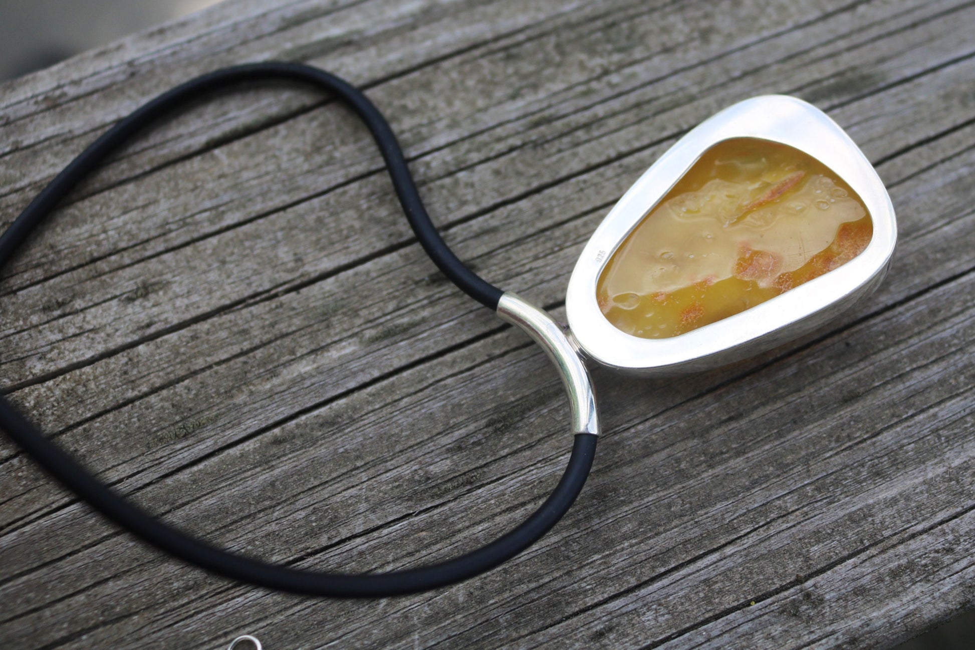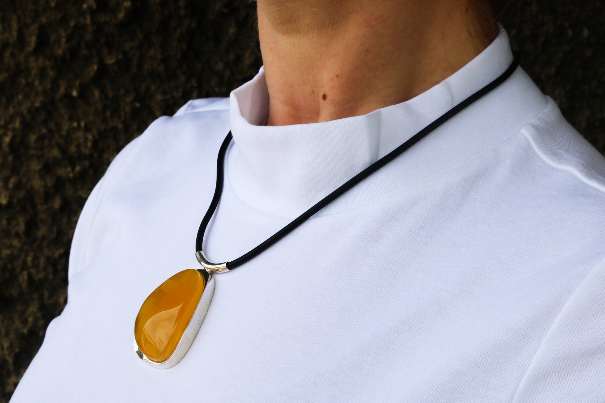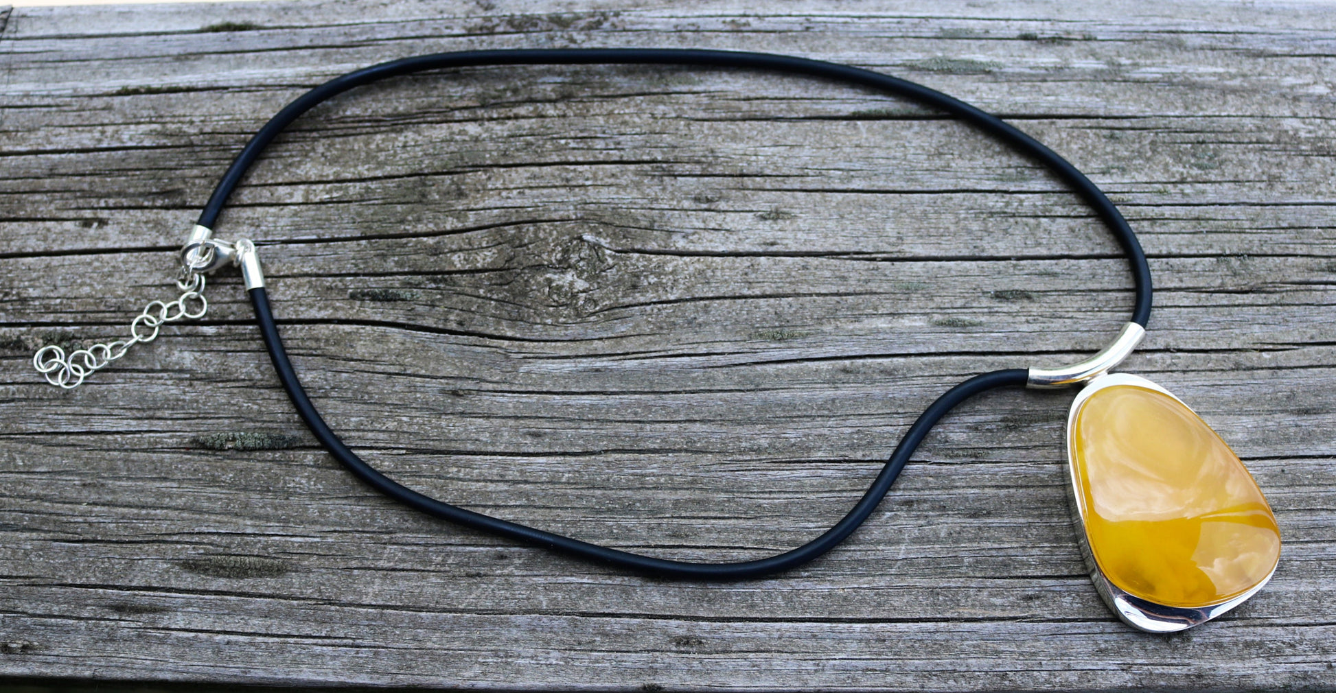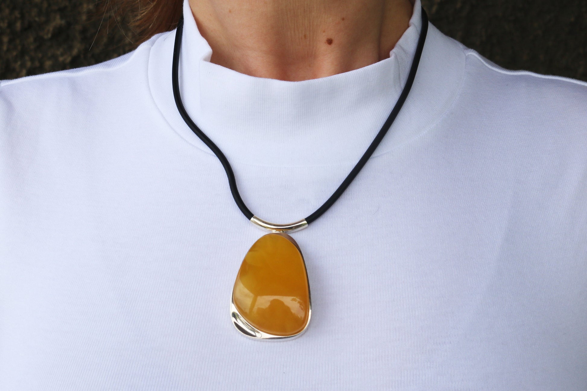 Baltic Amber Choker Pendant Butterscotch Necklace Cord Adjustable Natural Untreated Jewelry 28 gram 925 Silver