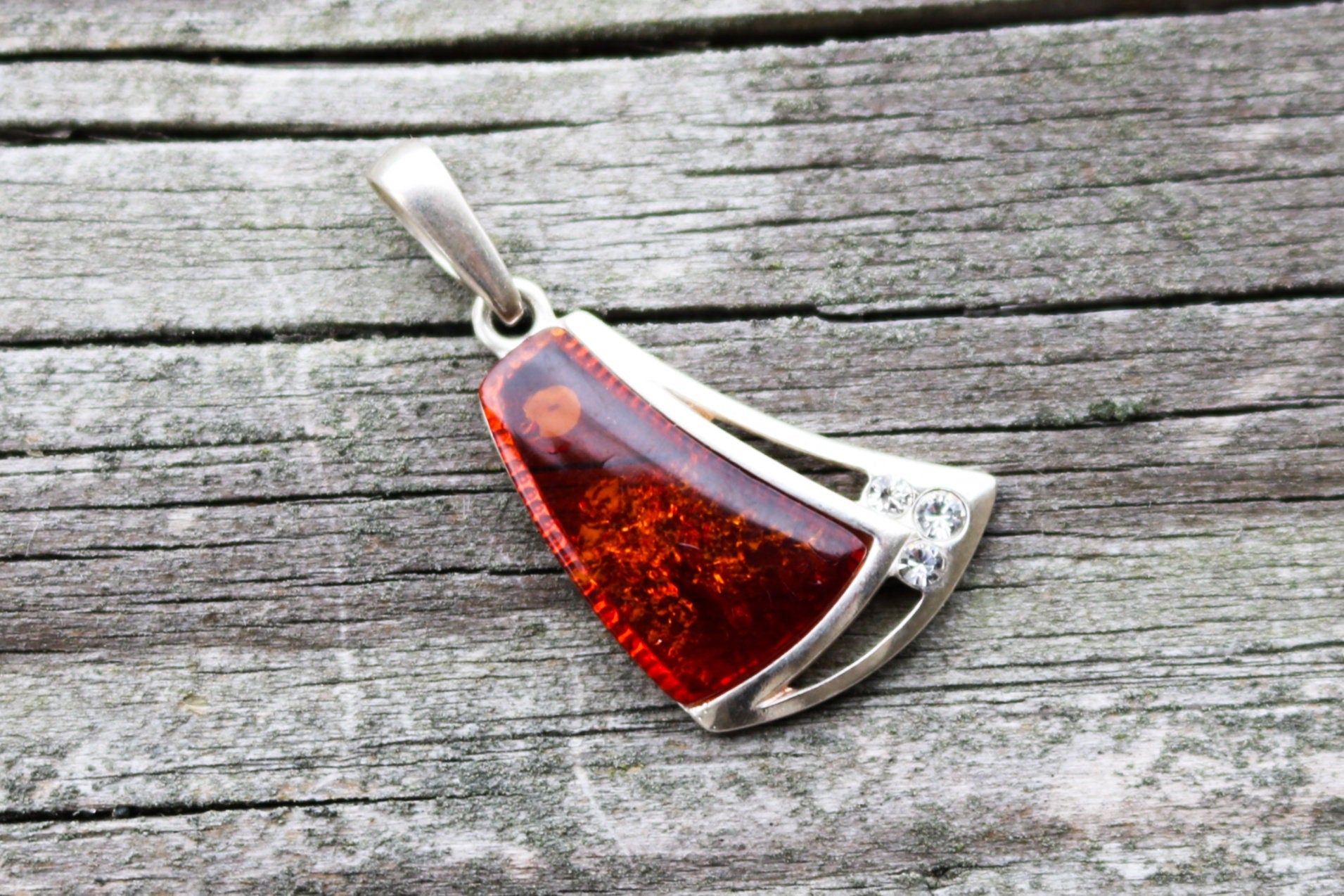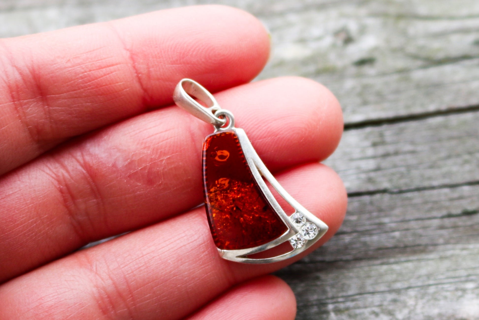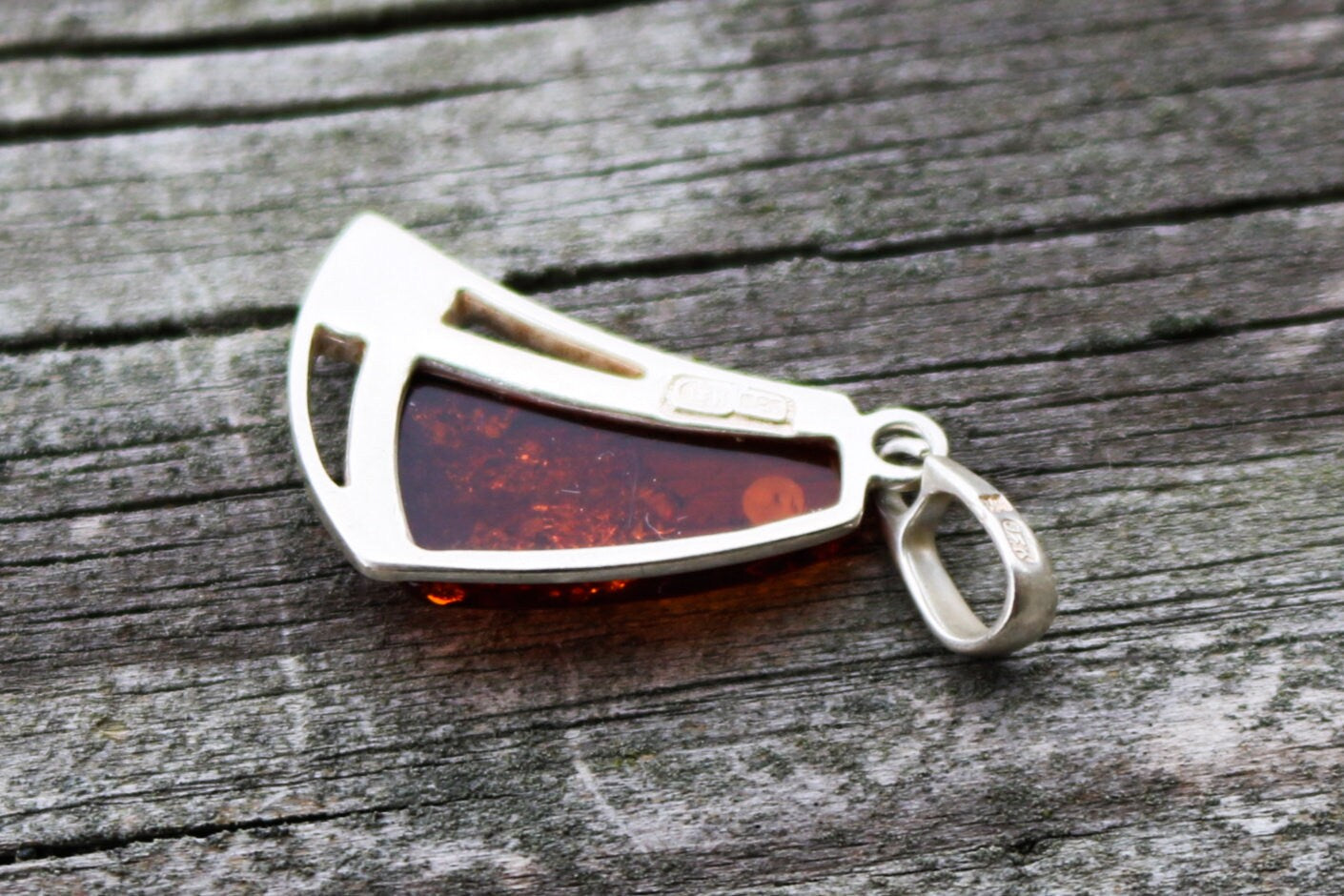Baltic Amber pendant in cognac color with reflexes. Set in 925 sterling silver.