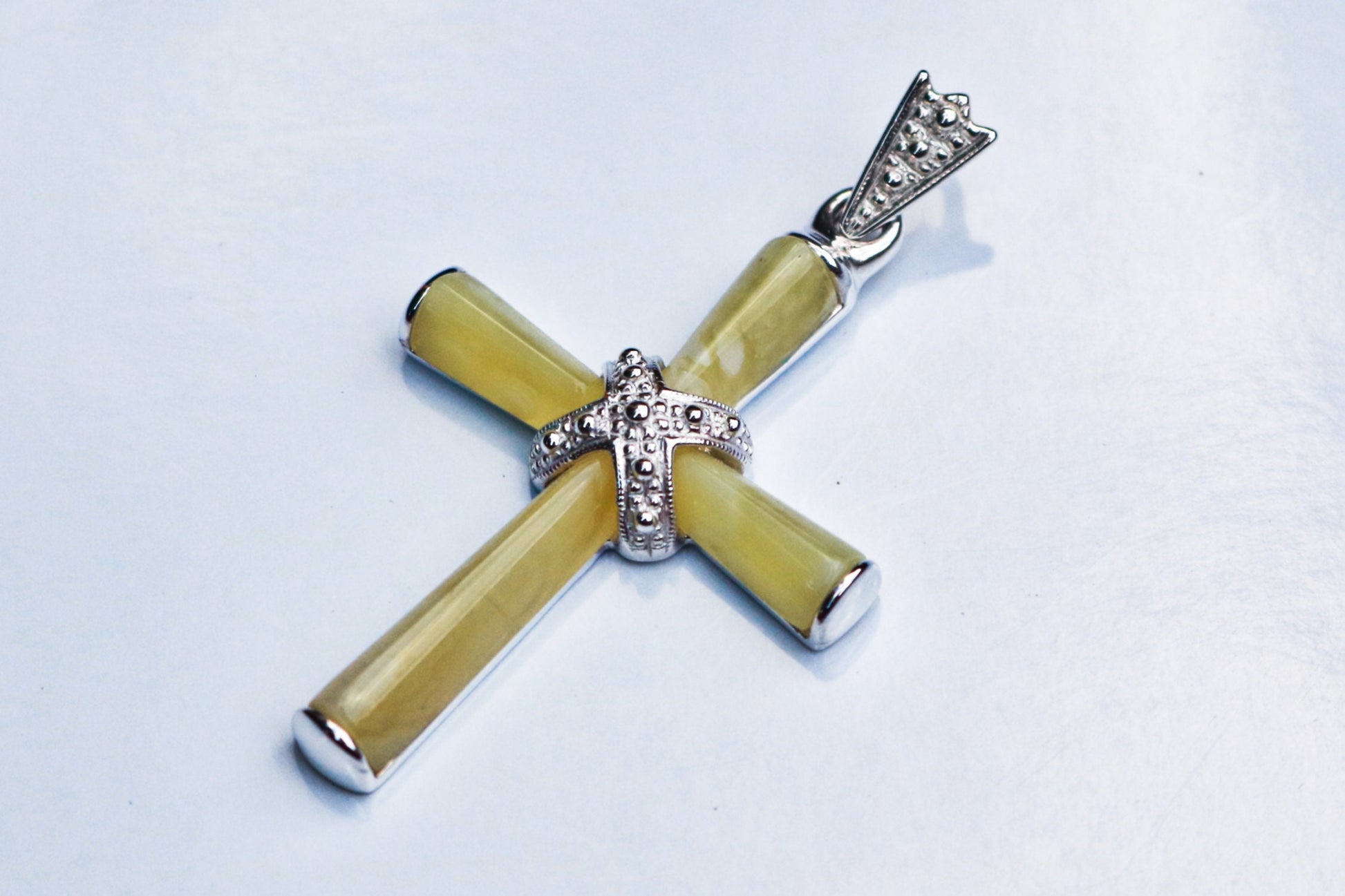 Baltic Amber Cross Pendant Butterscotch Natural Untreated Jewelry 1.9" 925 silver