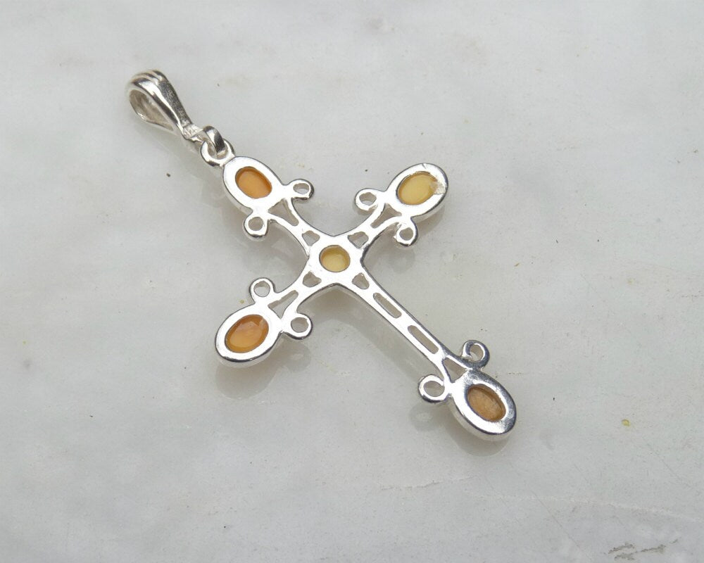 Baltic Amber Cross Pendant Butterscotch Natural Untreated Jewelry 2.1" 925 silver