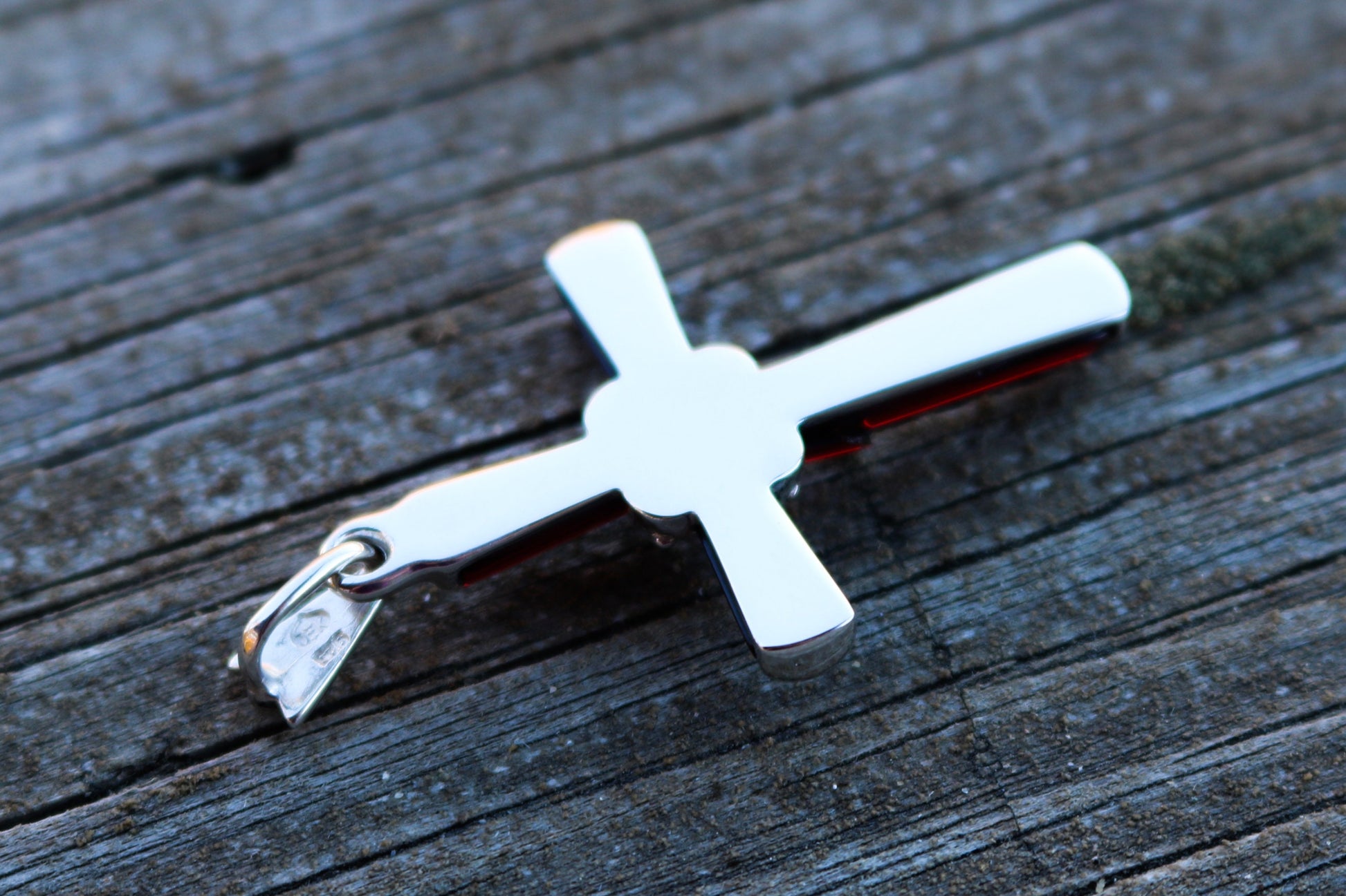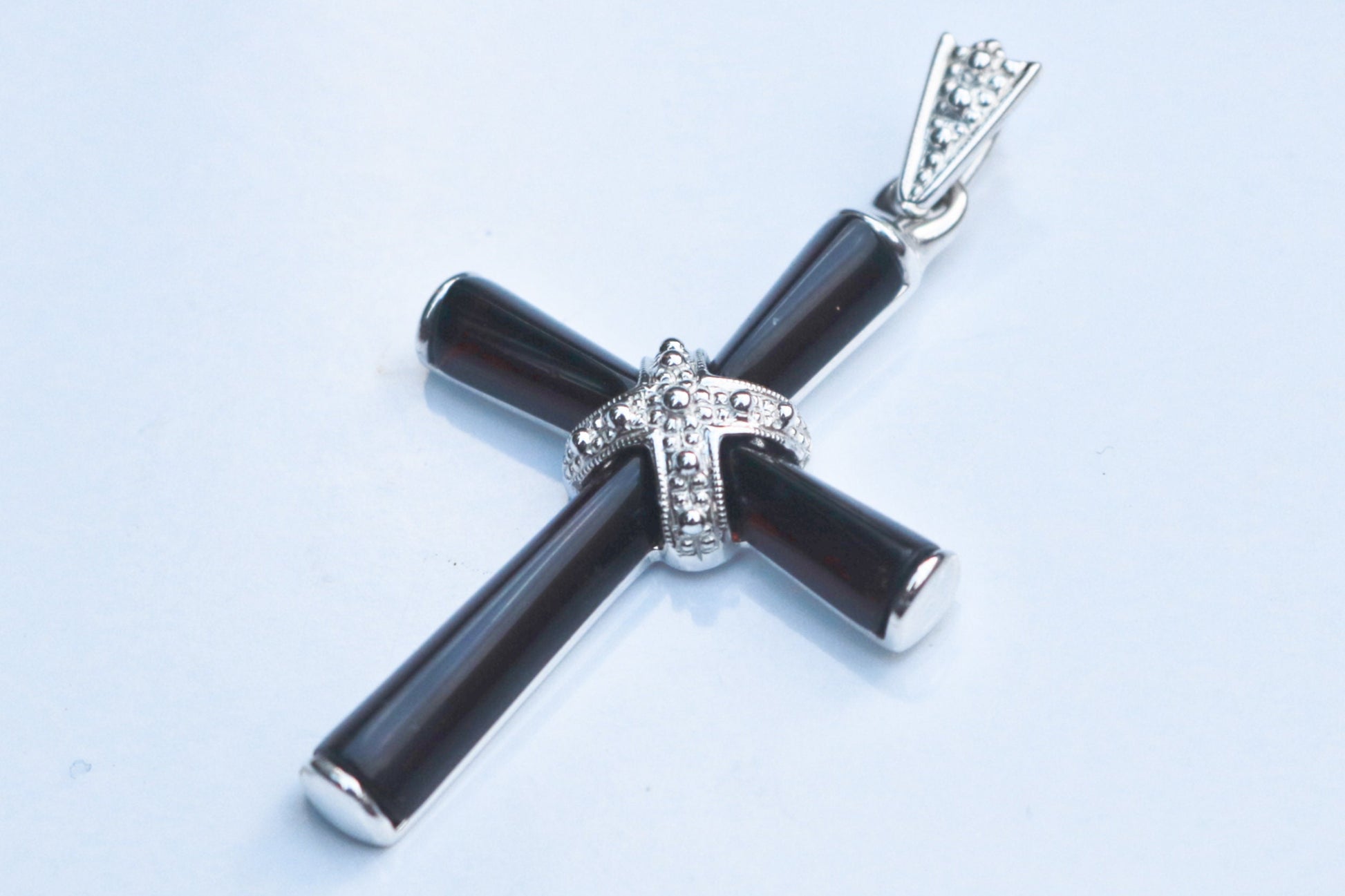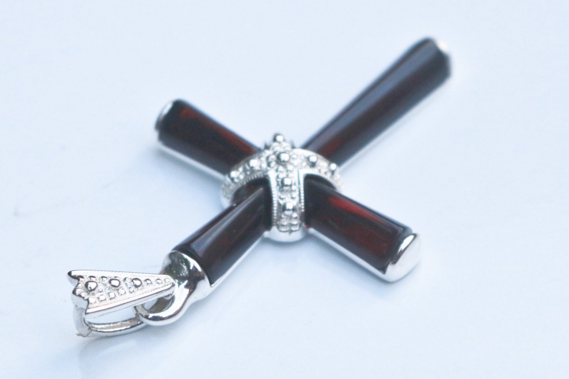 Stunning handcrafted Baltic Amber cross pendant in solid 925 sterling silver