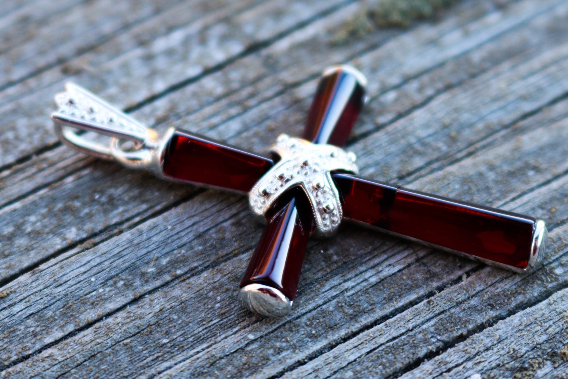 Baltic Amber Cross Pendant Cherry Natural Unisex Jewelry Natural 925 silver