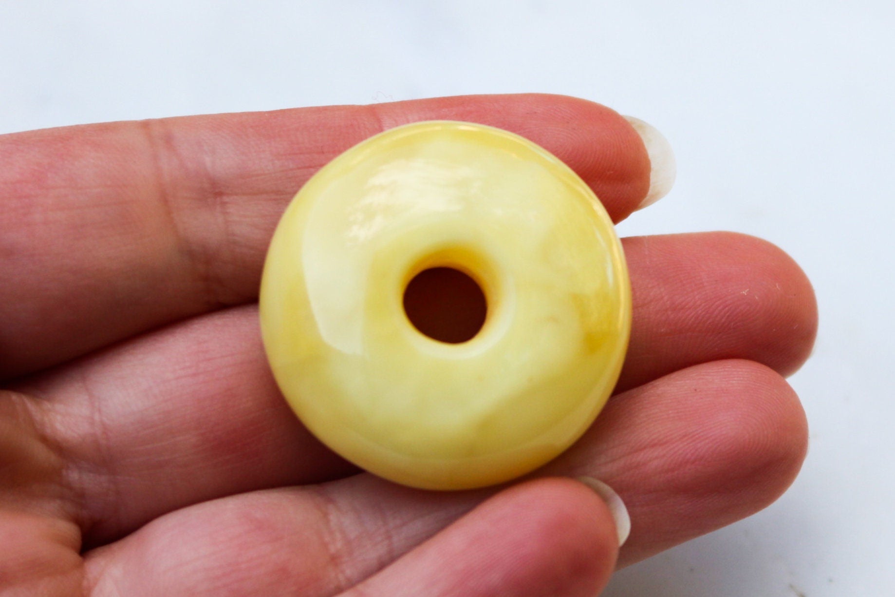 Baltic Amber Donut Butterscotch Pendant Hand Carved Unisex Natural 1.25" 8 gram