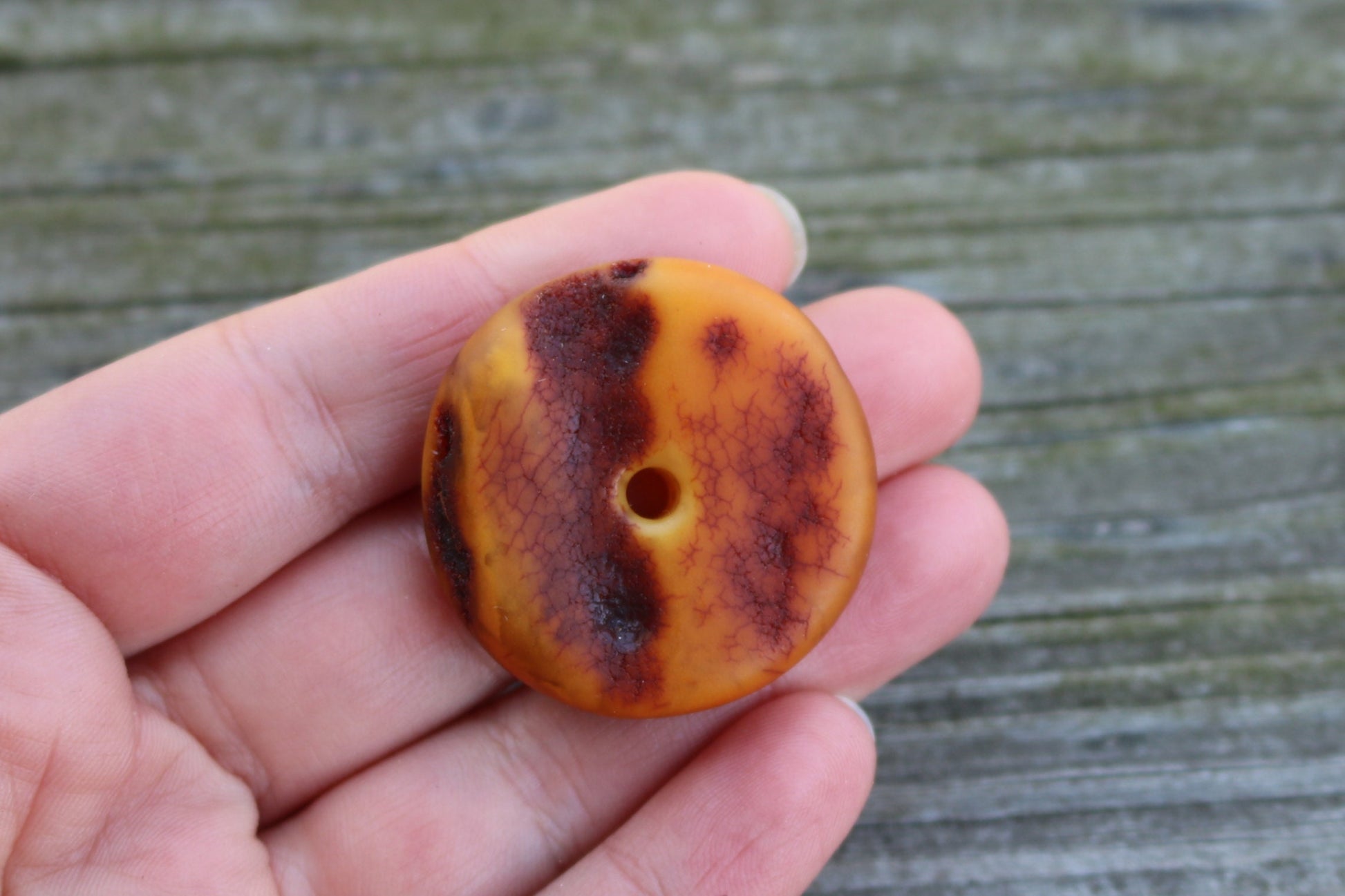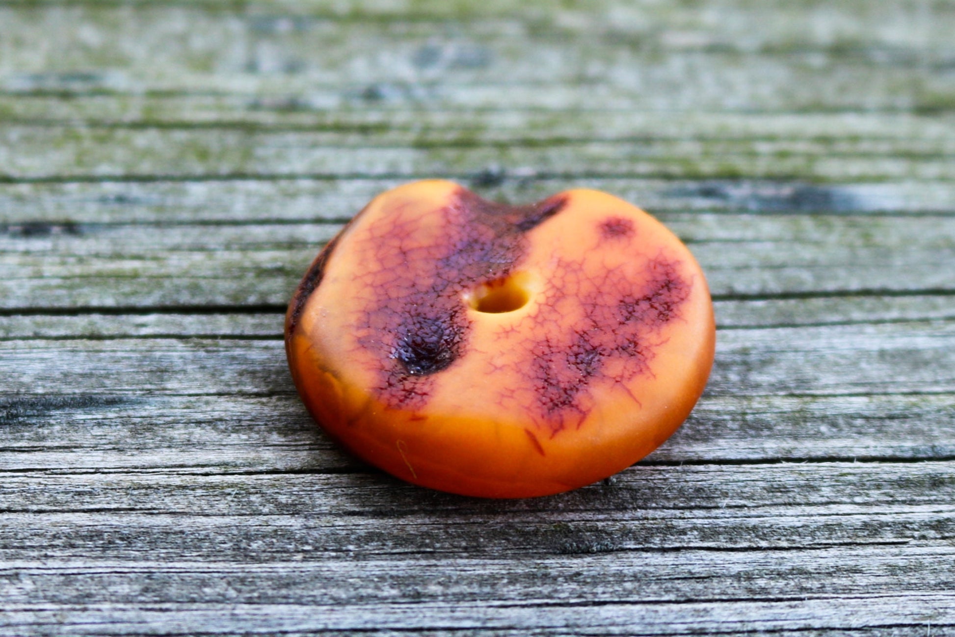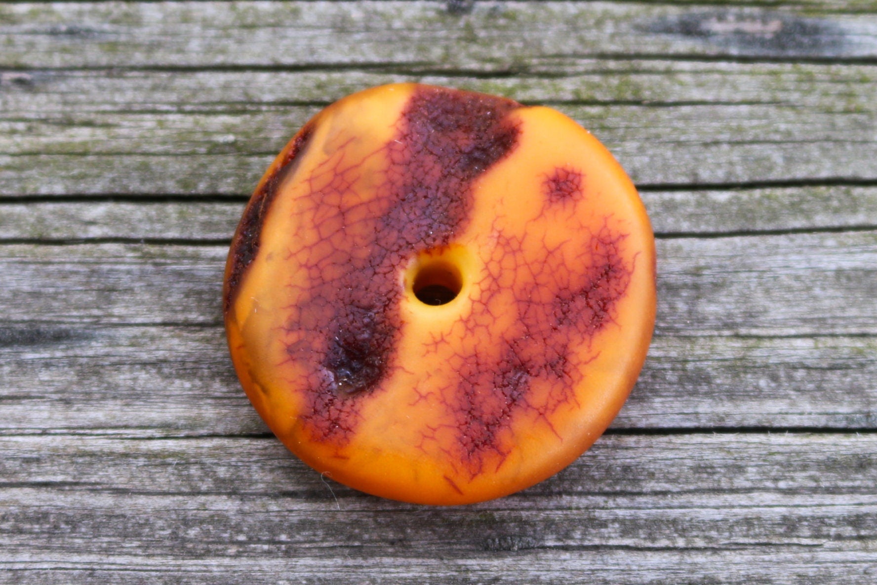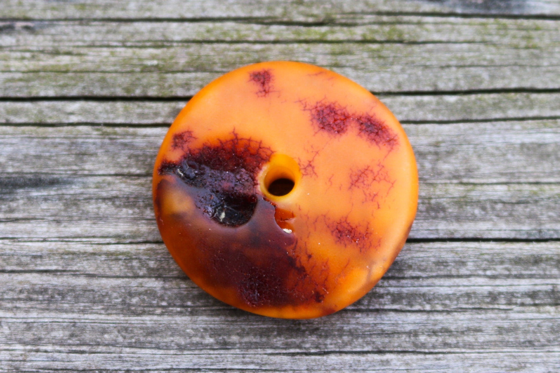 Baltic Amber hand carved donut pendant. Naturally opaque, unpolished, untreated amber with imperfections.