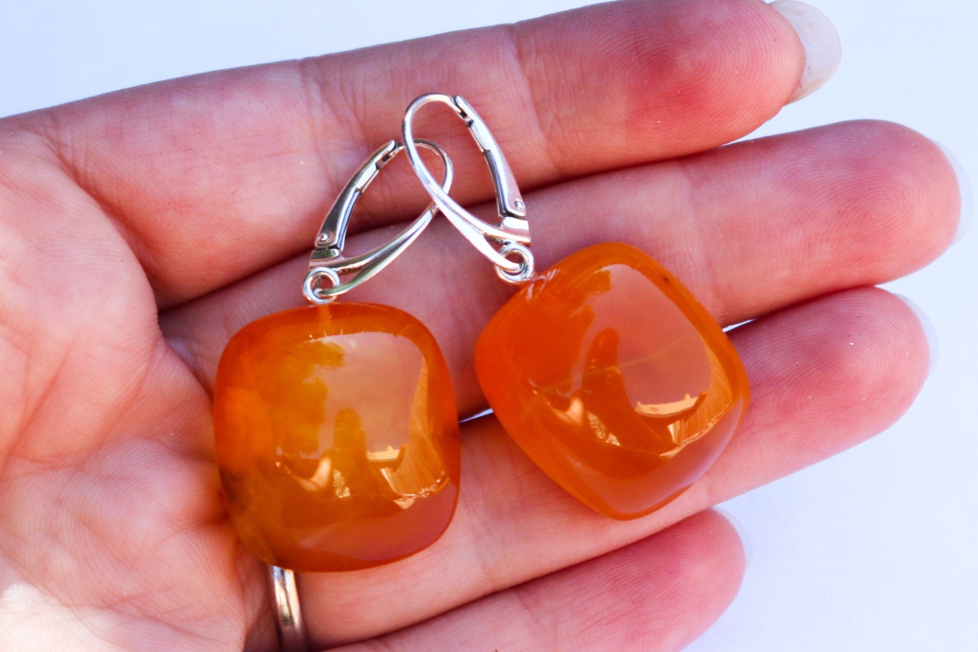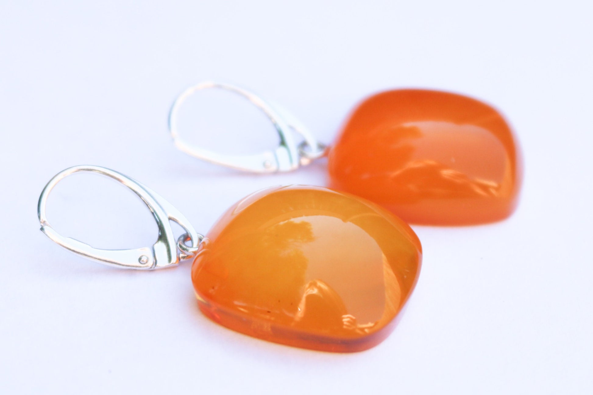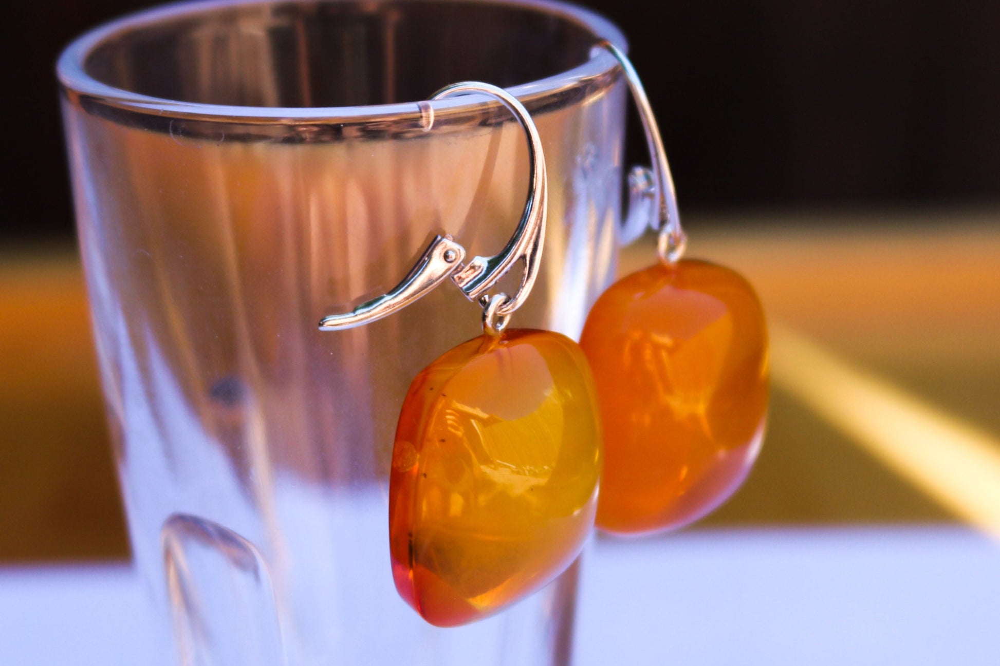Gorgeous Baltic Amber hand carved cushion earrings in cloudy antique color. This is solid untreated amber.