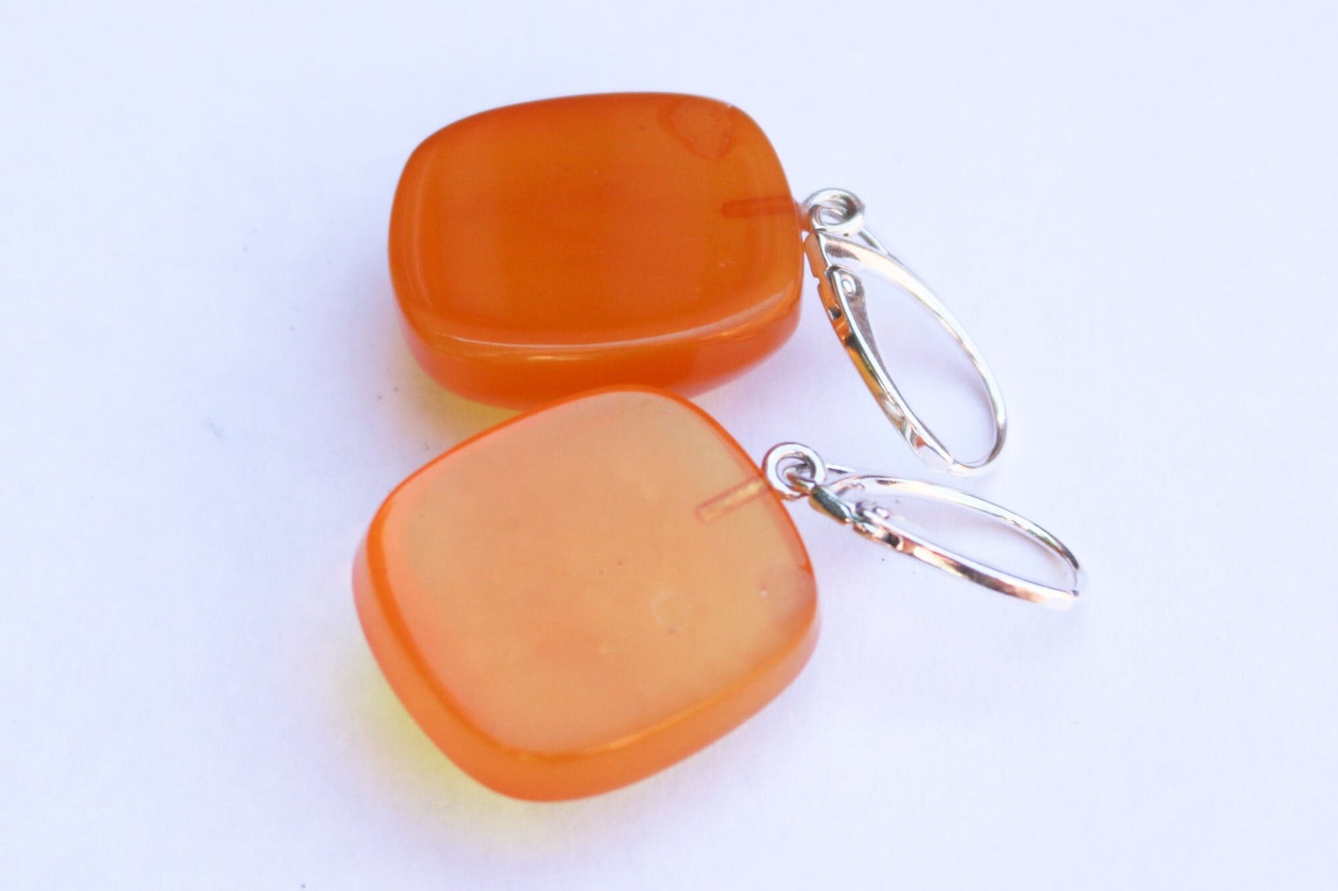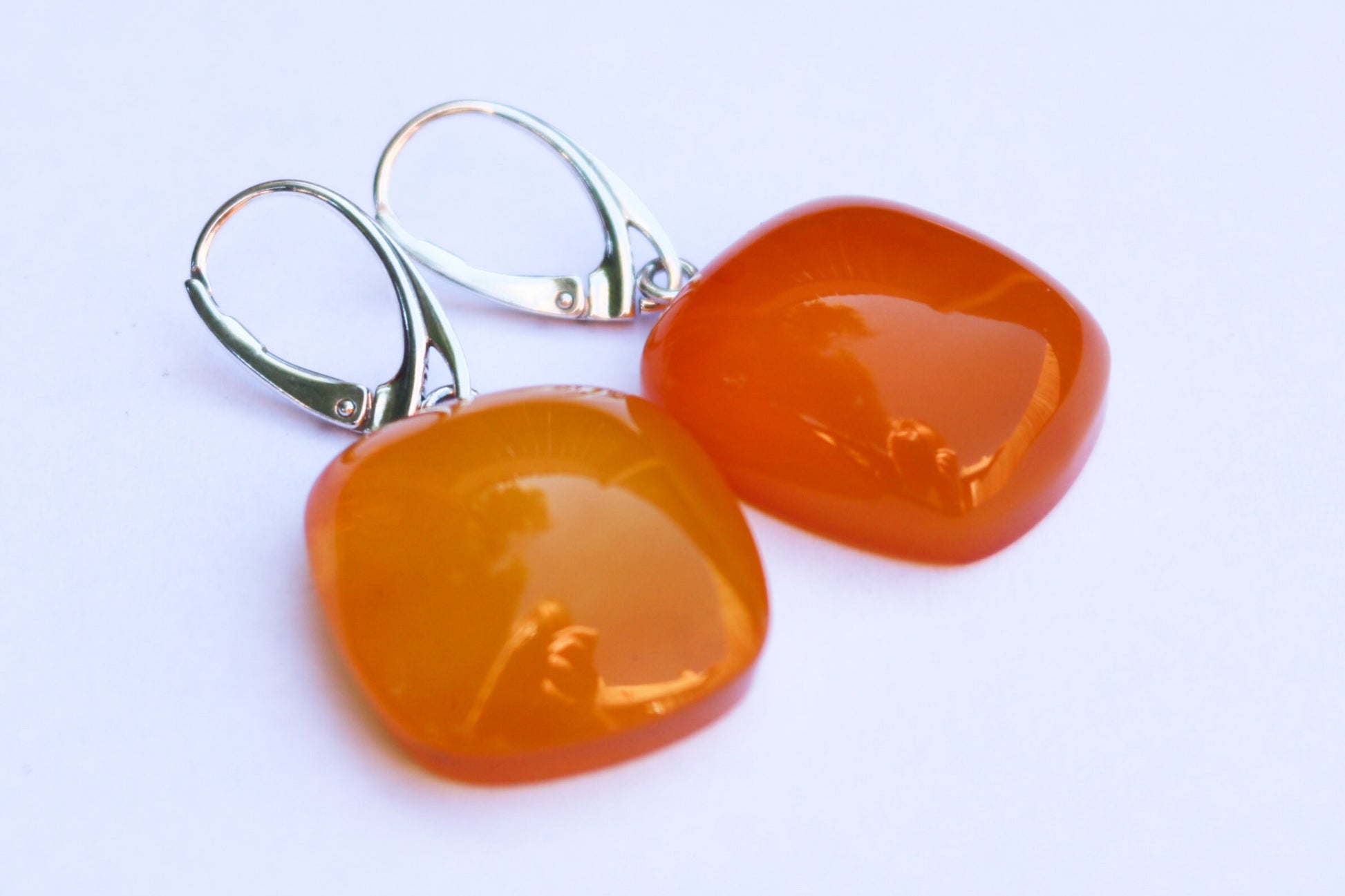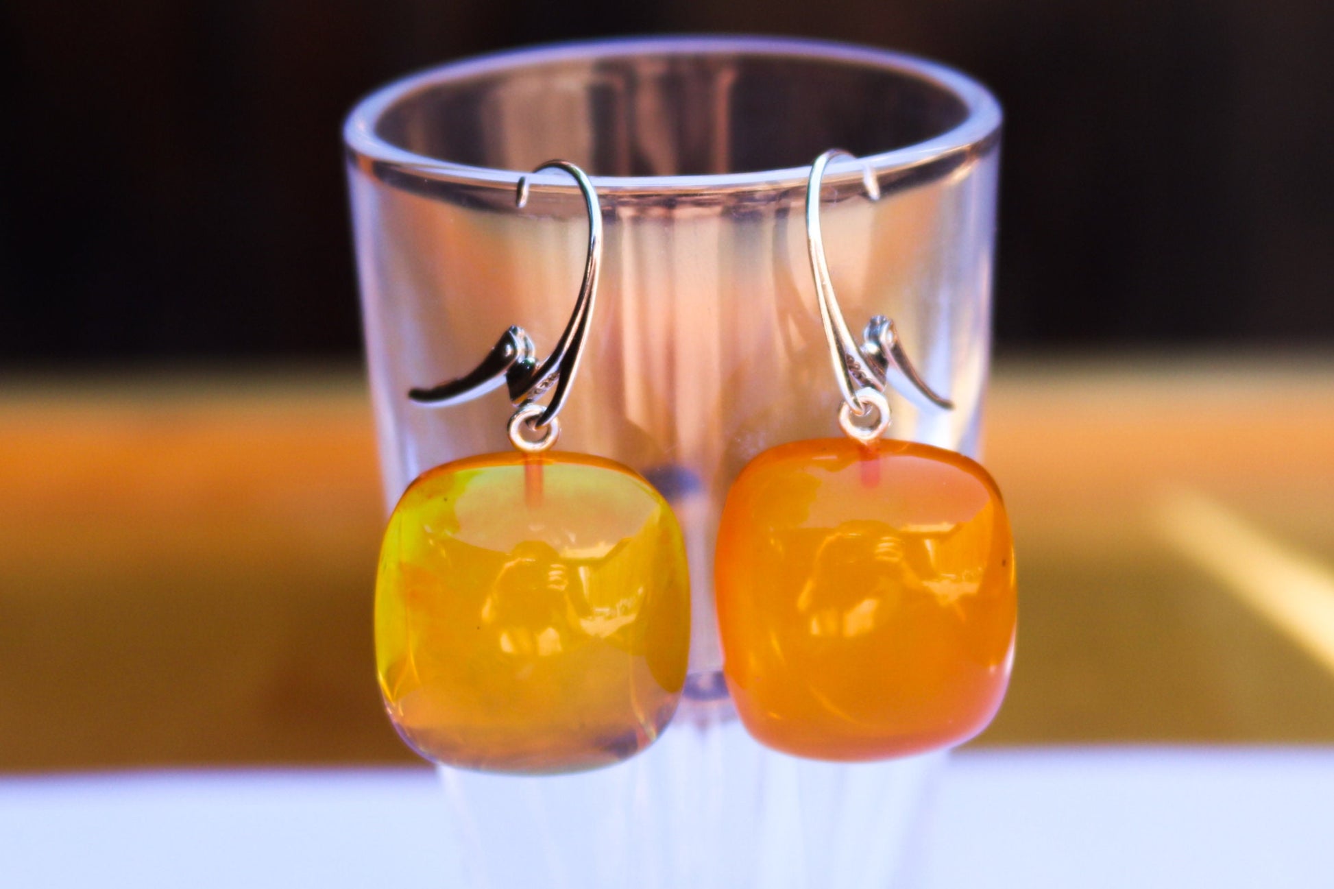 Gorgeous Baltic Amber hand carved cushion earrings in cloudy antique color. This is solid untreated amber.