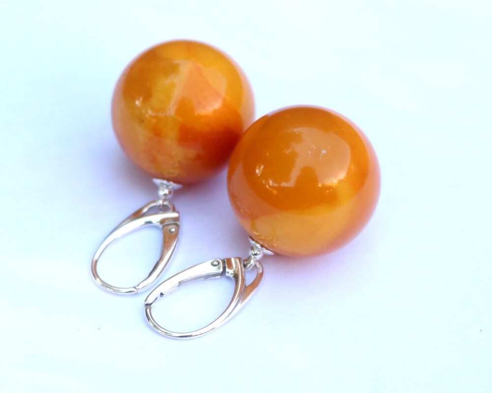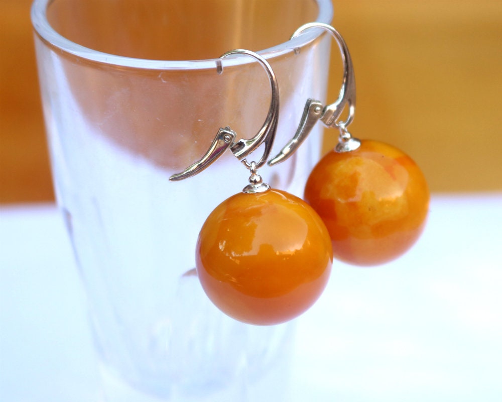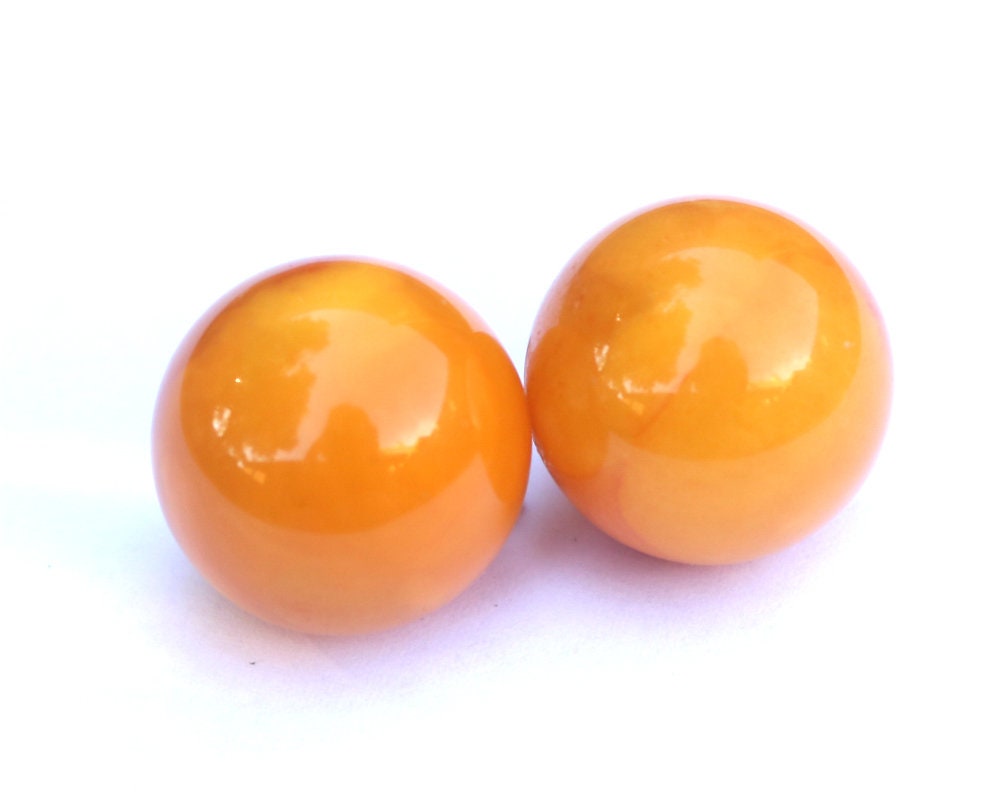 Baltic Amber Earrings Ball Round Antique Butterscotch Reconstructed Jewelry Yolk 1.6" 20 mm