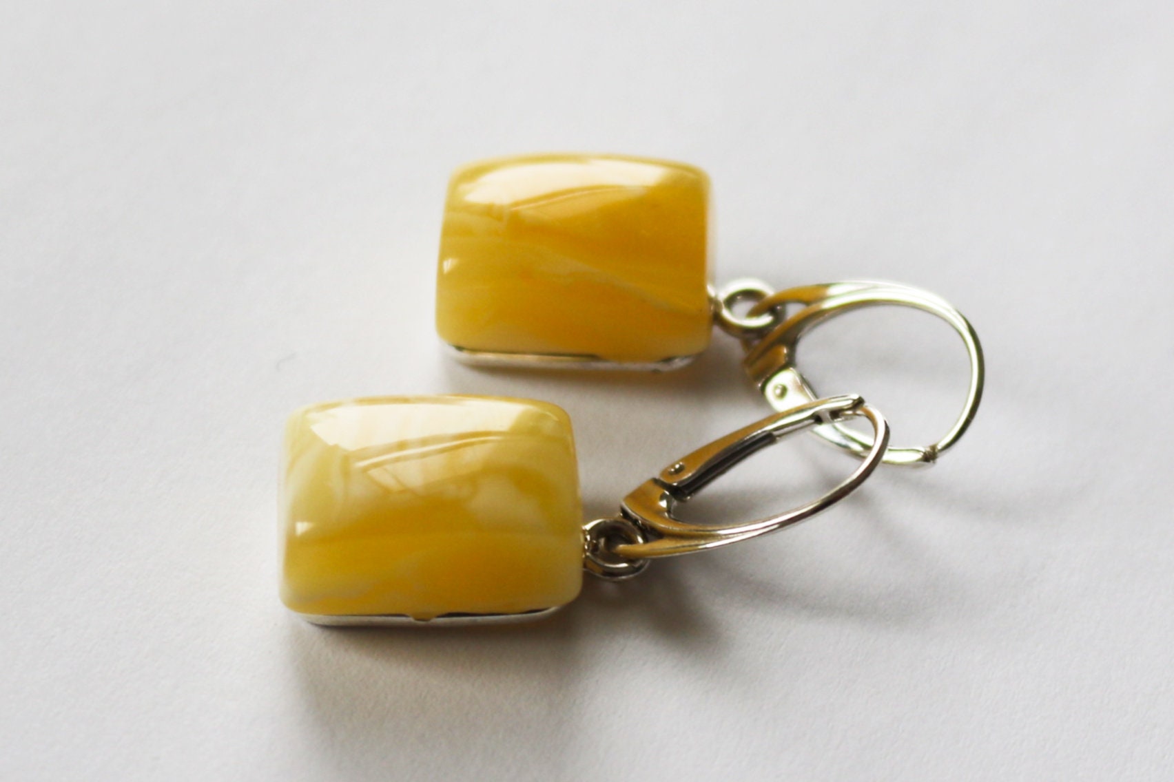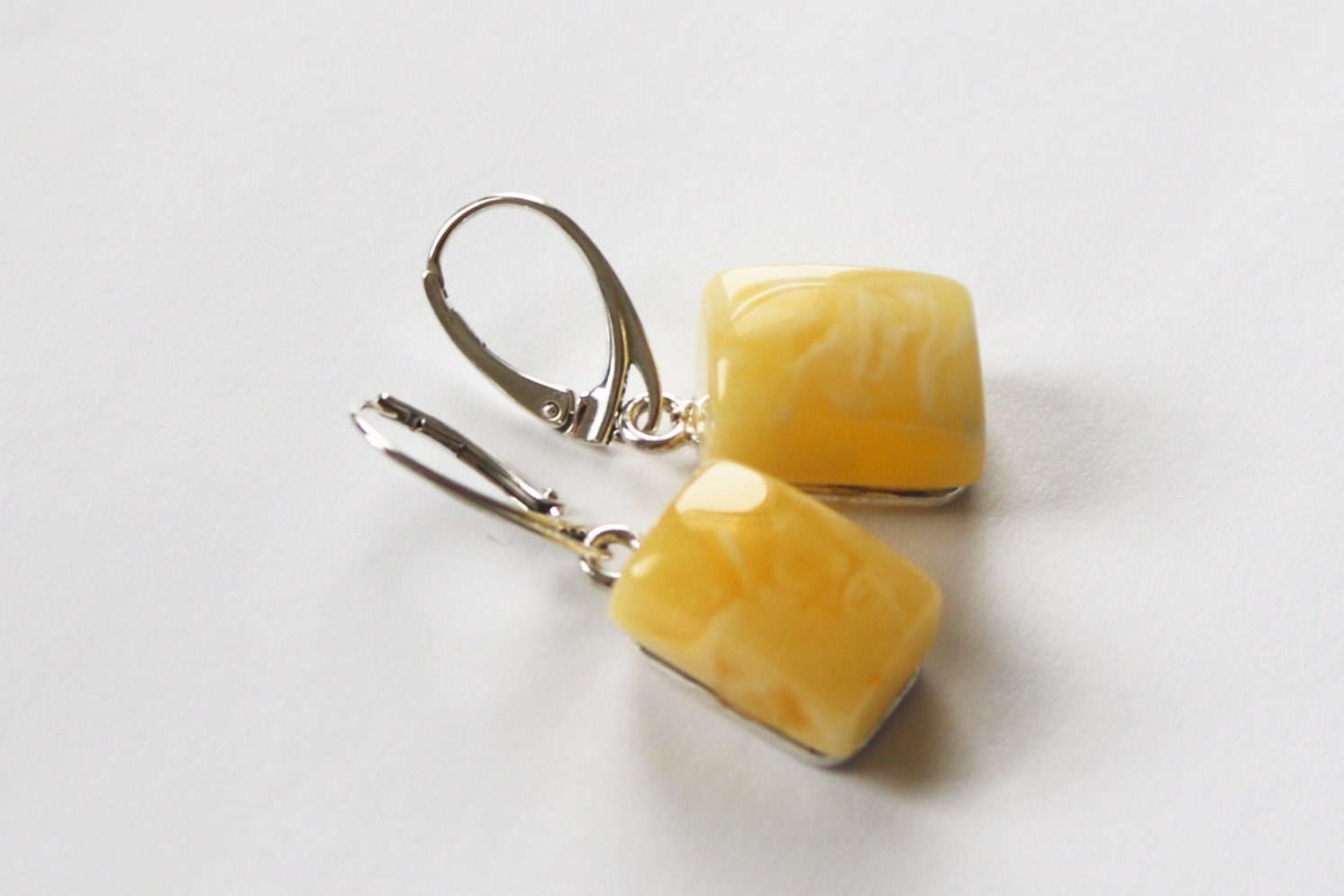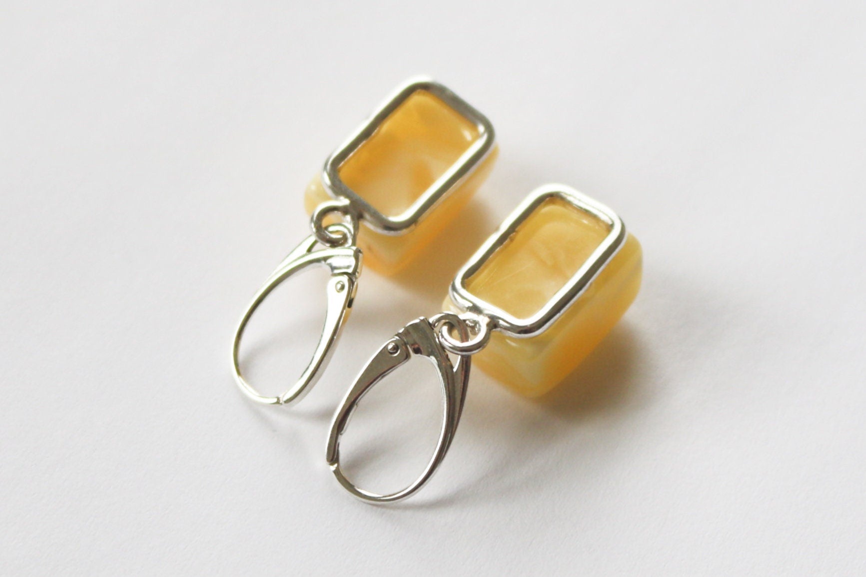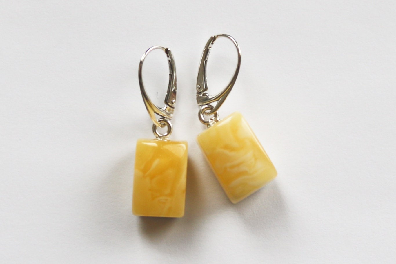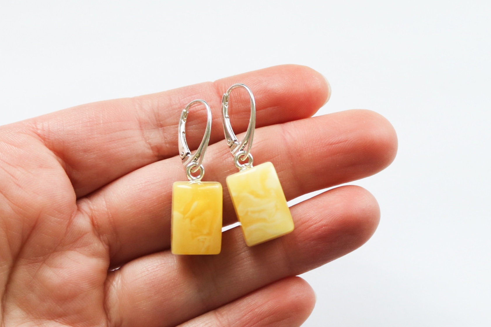 Baltic Amber Earrings Butterscotch Milky Rectangle Jewelry 1.41" 6.3 gram 925 Silver