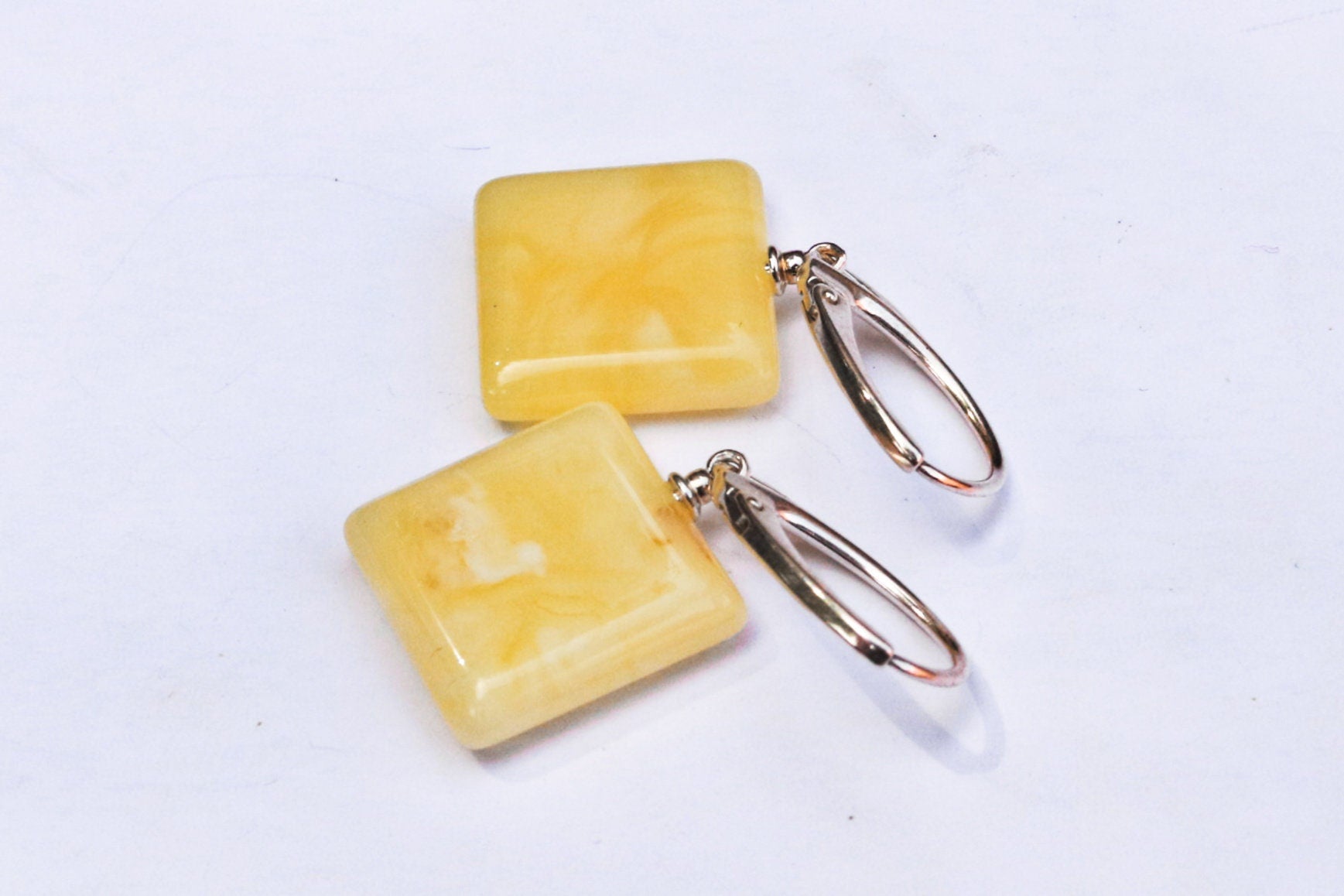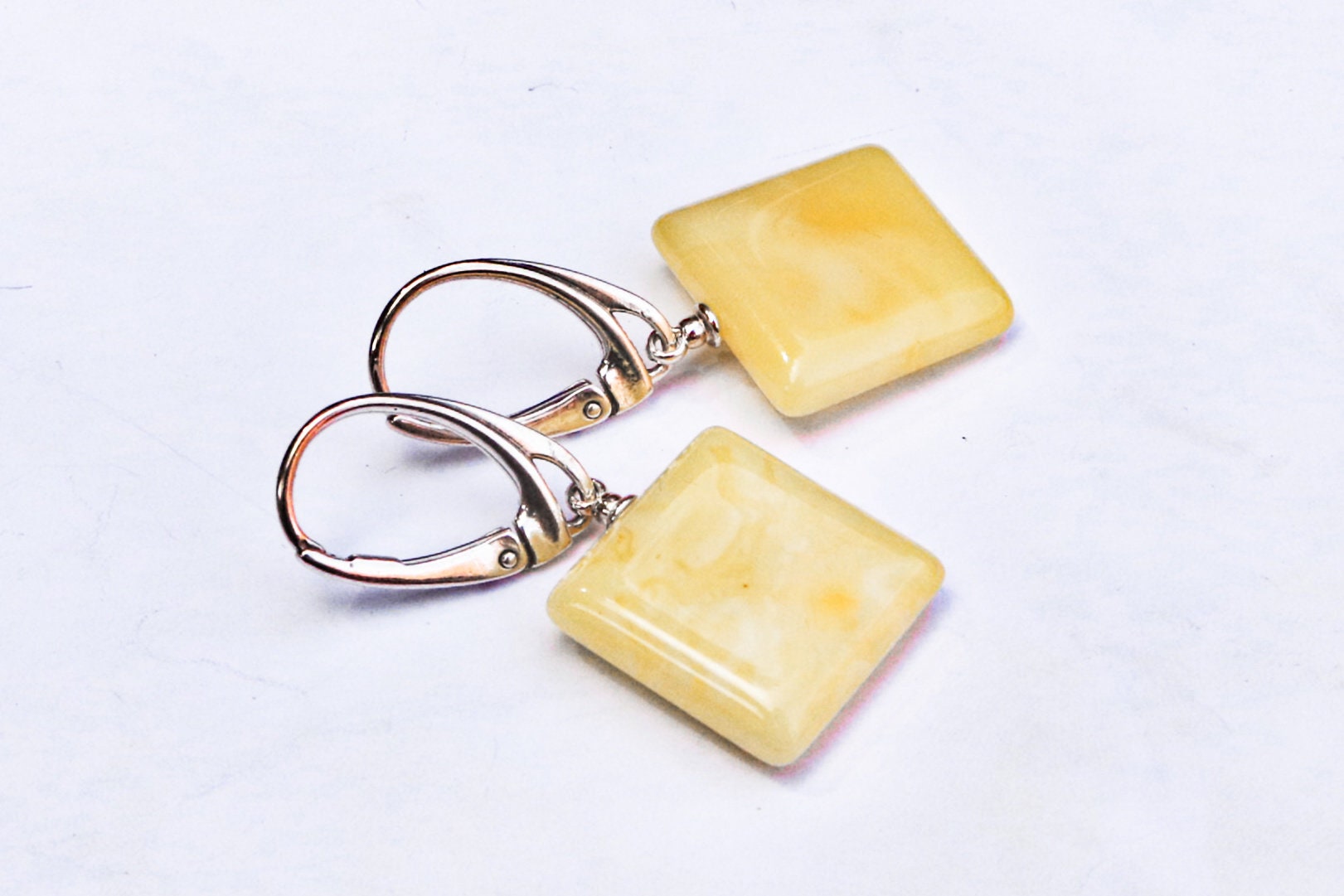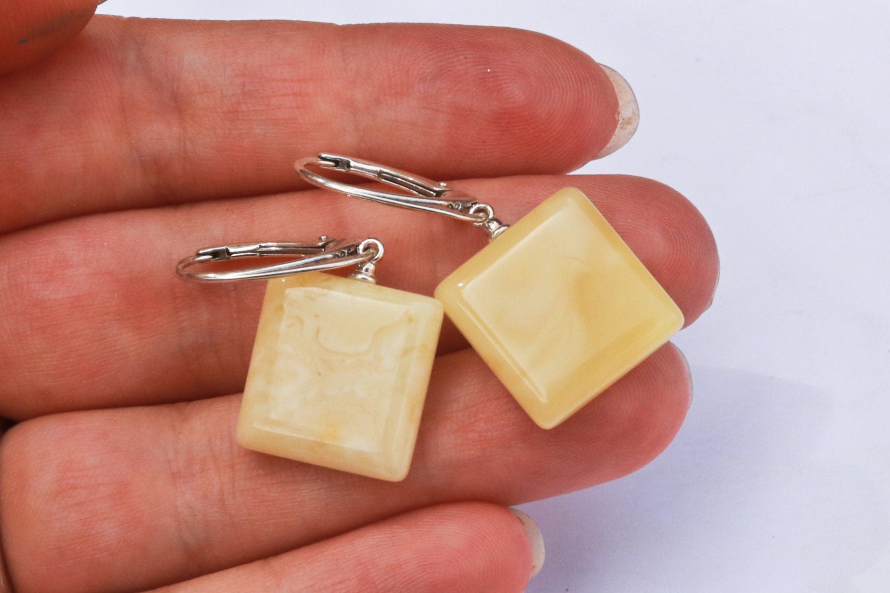 Baltic Amber Earrings Butterscotch Natural Dangling Square Jewelry 1.36" 3.3 gram 925 Silver