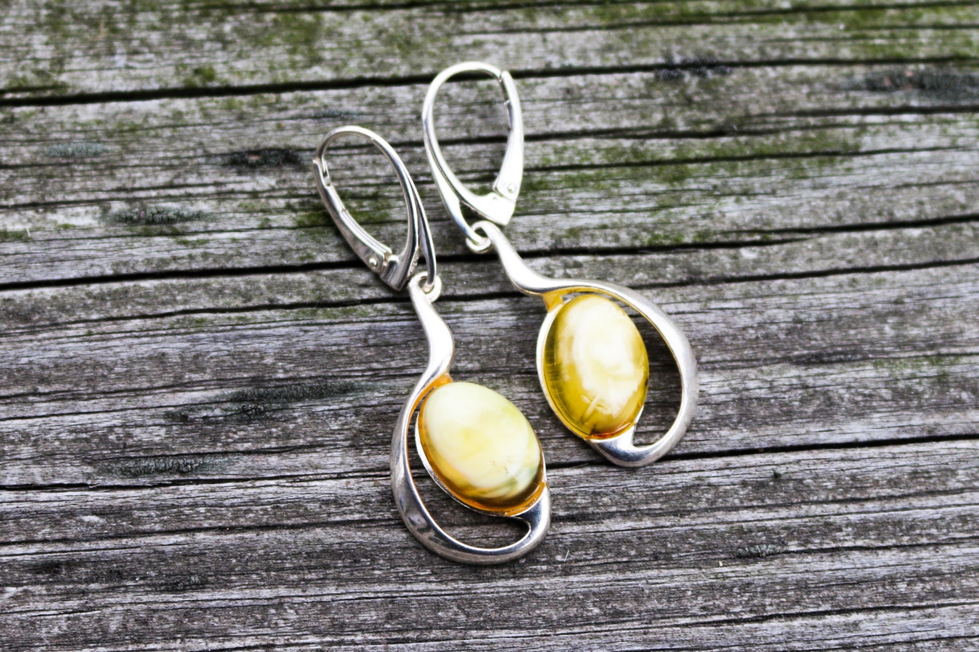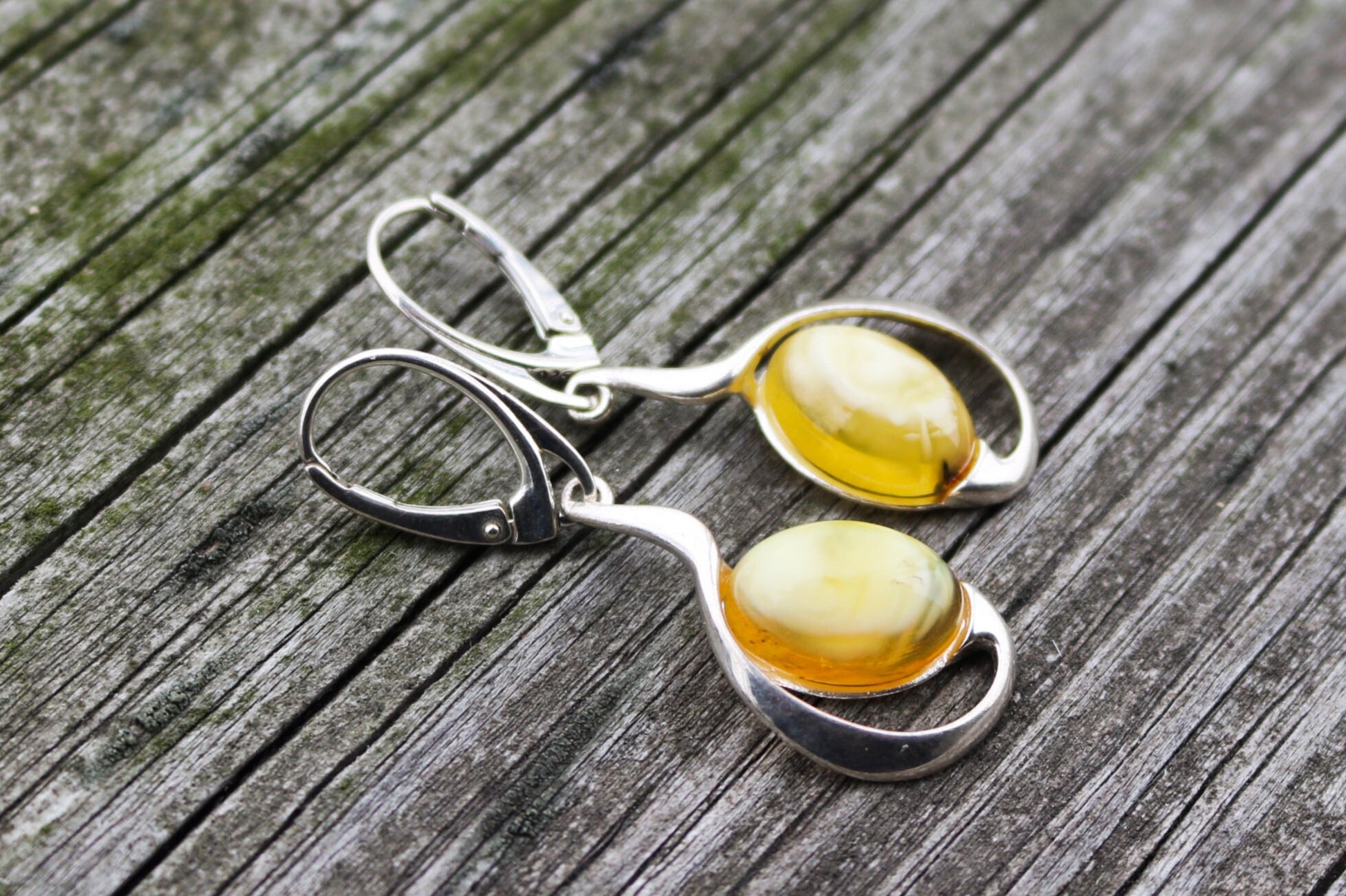 Baltic Amber earrings in natural untreated butterscotch color. Set in 925 sterling silver.