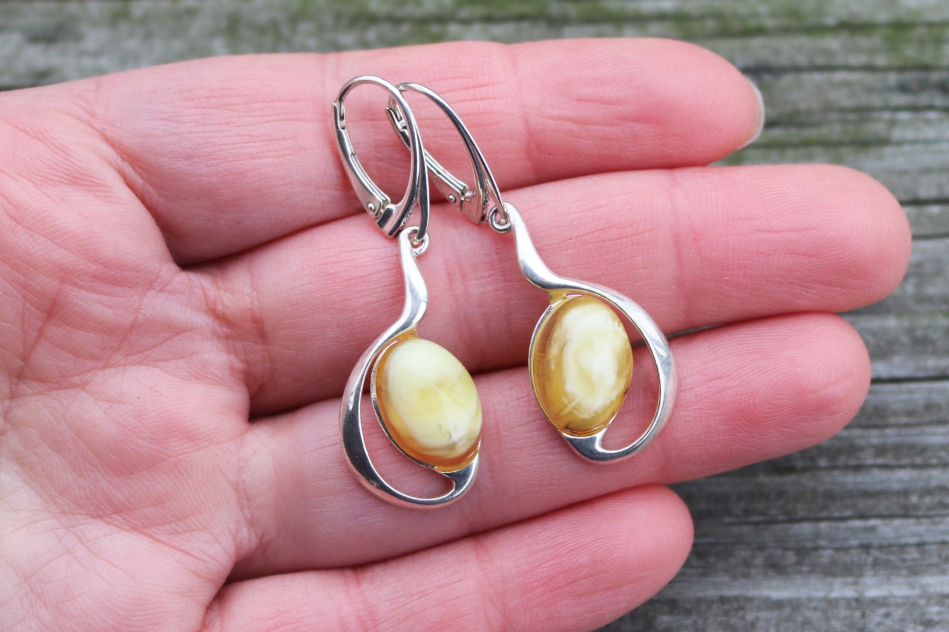 Baltic Amber Earrings Butterscotch Natural Jewelry 1.74" 5 gram 925 Silver