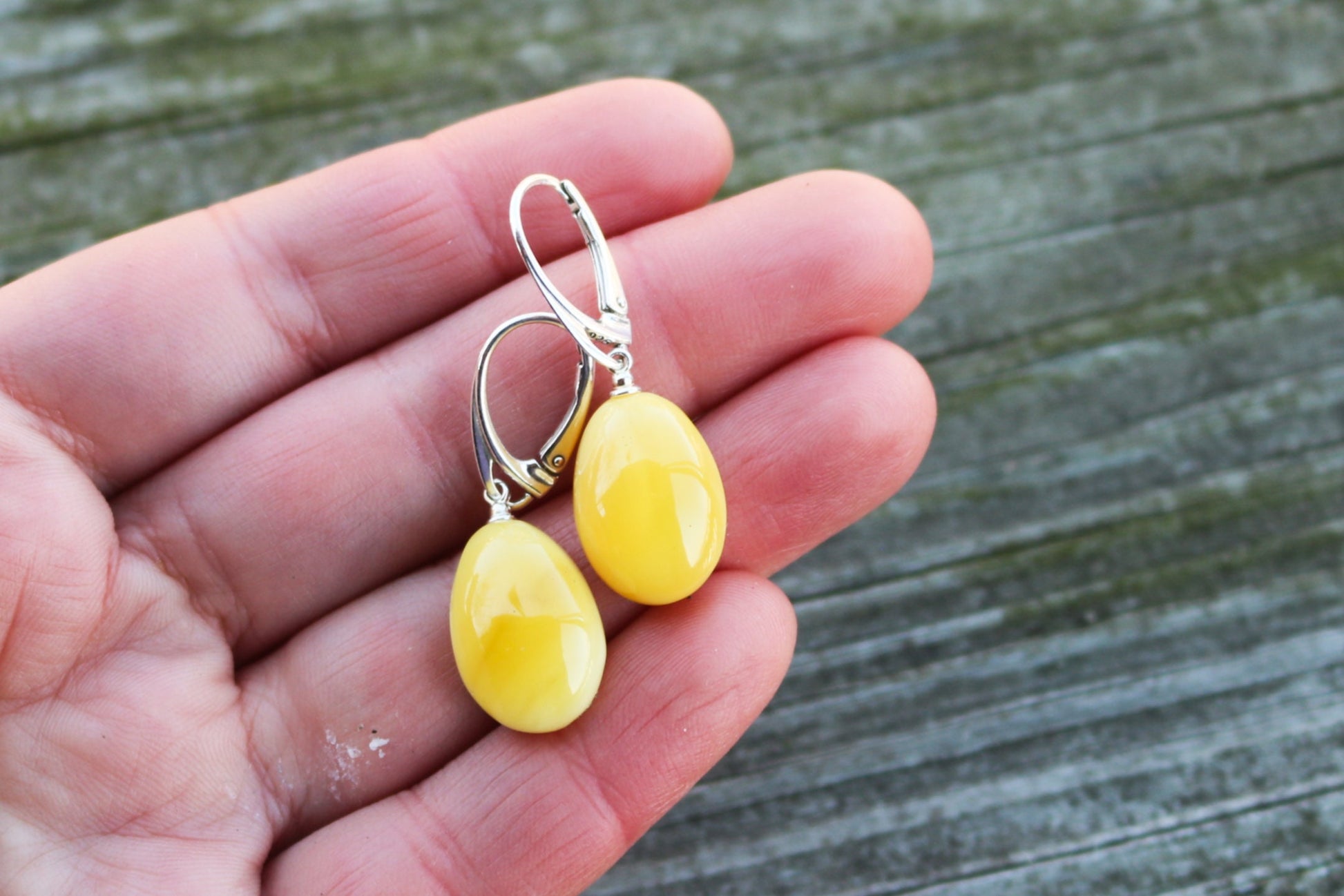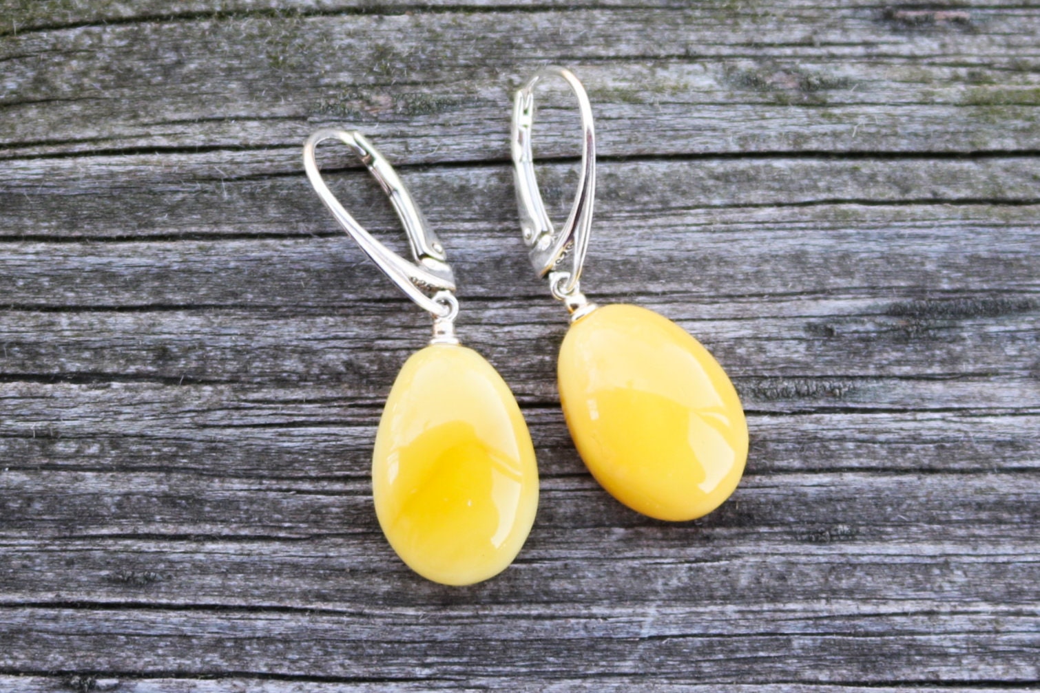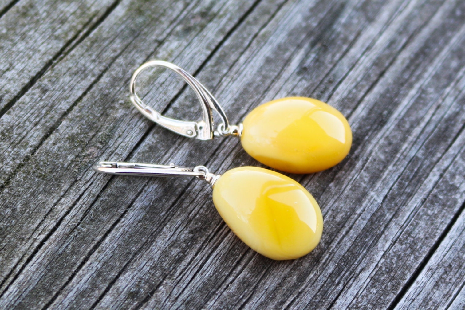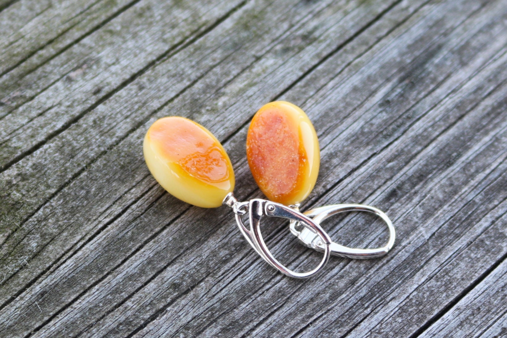 Baltic Amber drop earrings in butterscotch color with natural crust on the back. Natural raw untreated stone, polished. Set in 925 sterling silver.