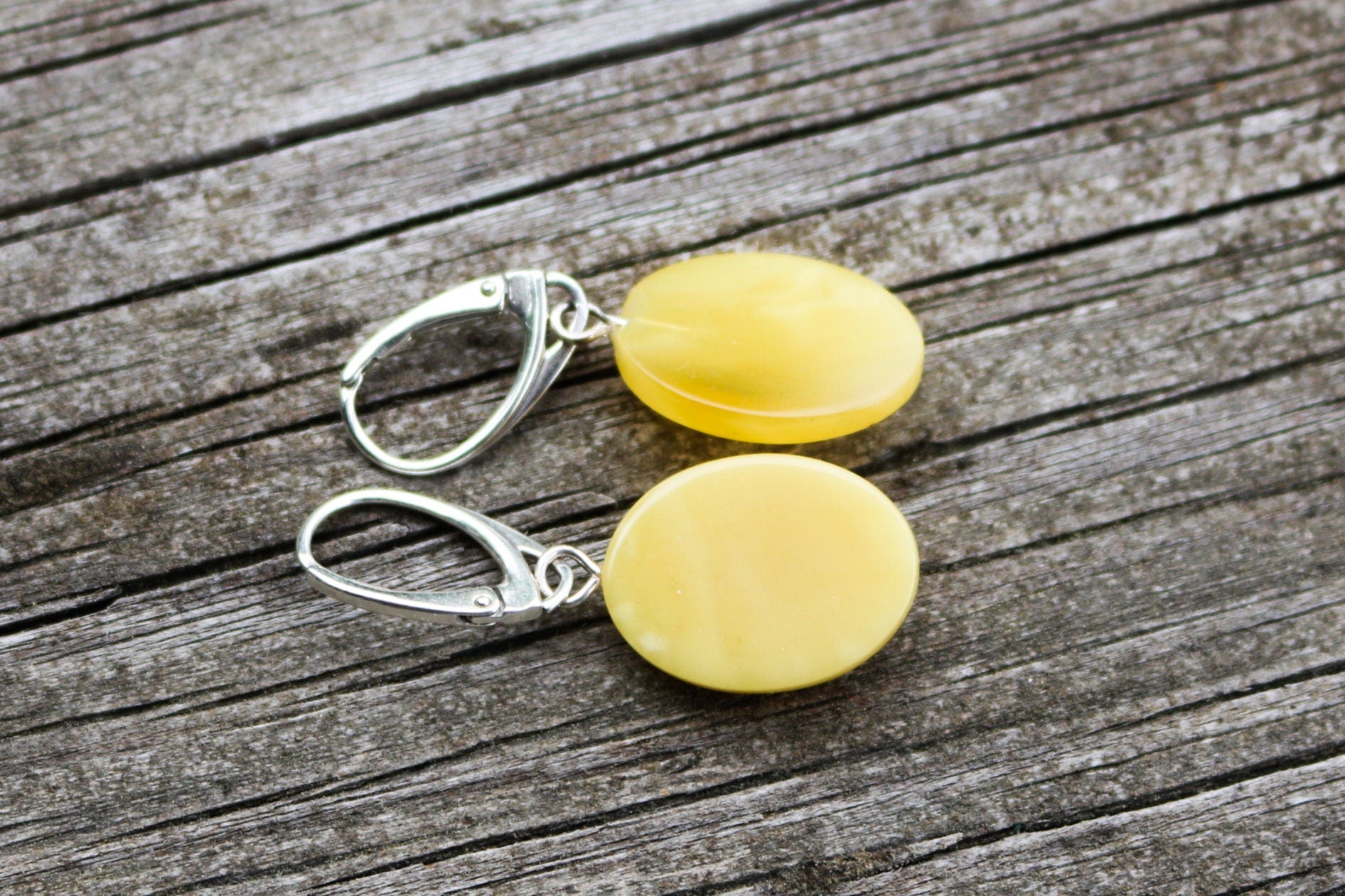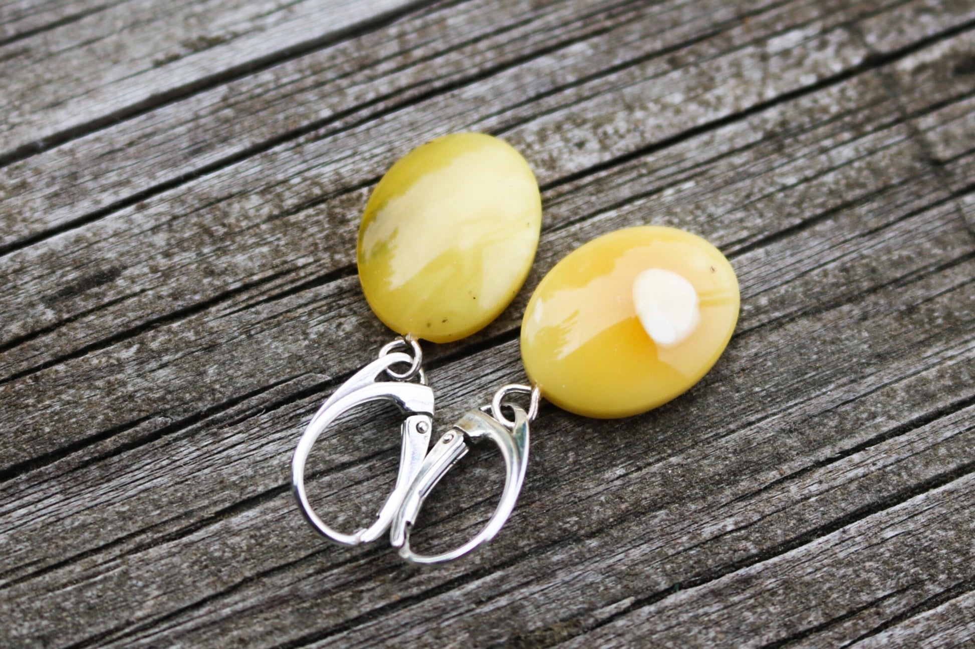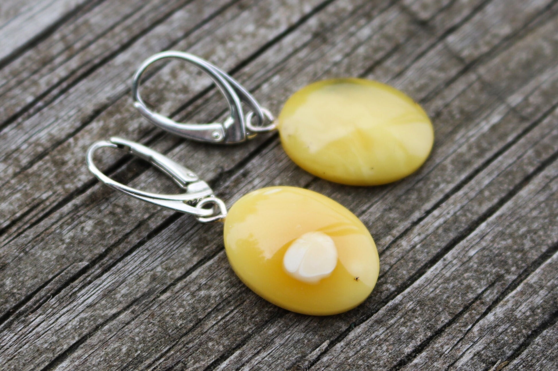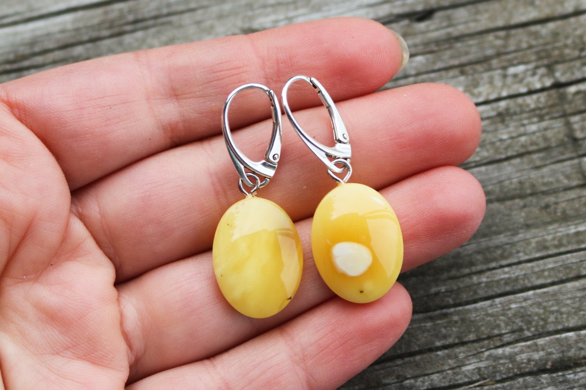 Baltic Amber earrings in natural untreated butterscotch color with milky inclusions. Set in 925 sterling silver.