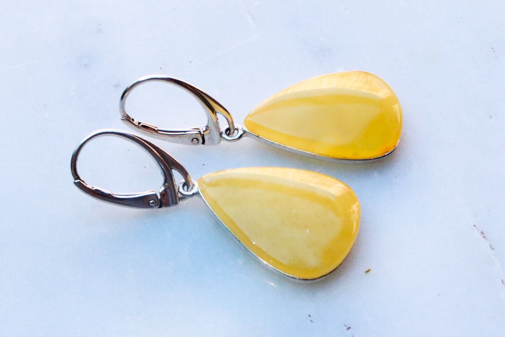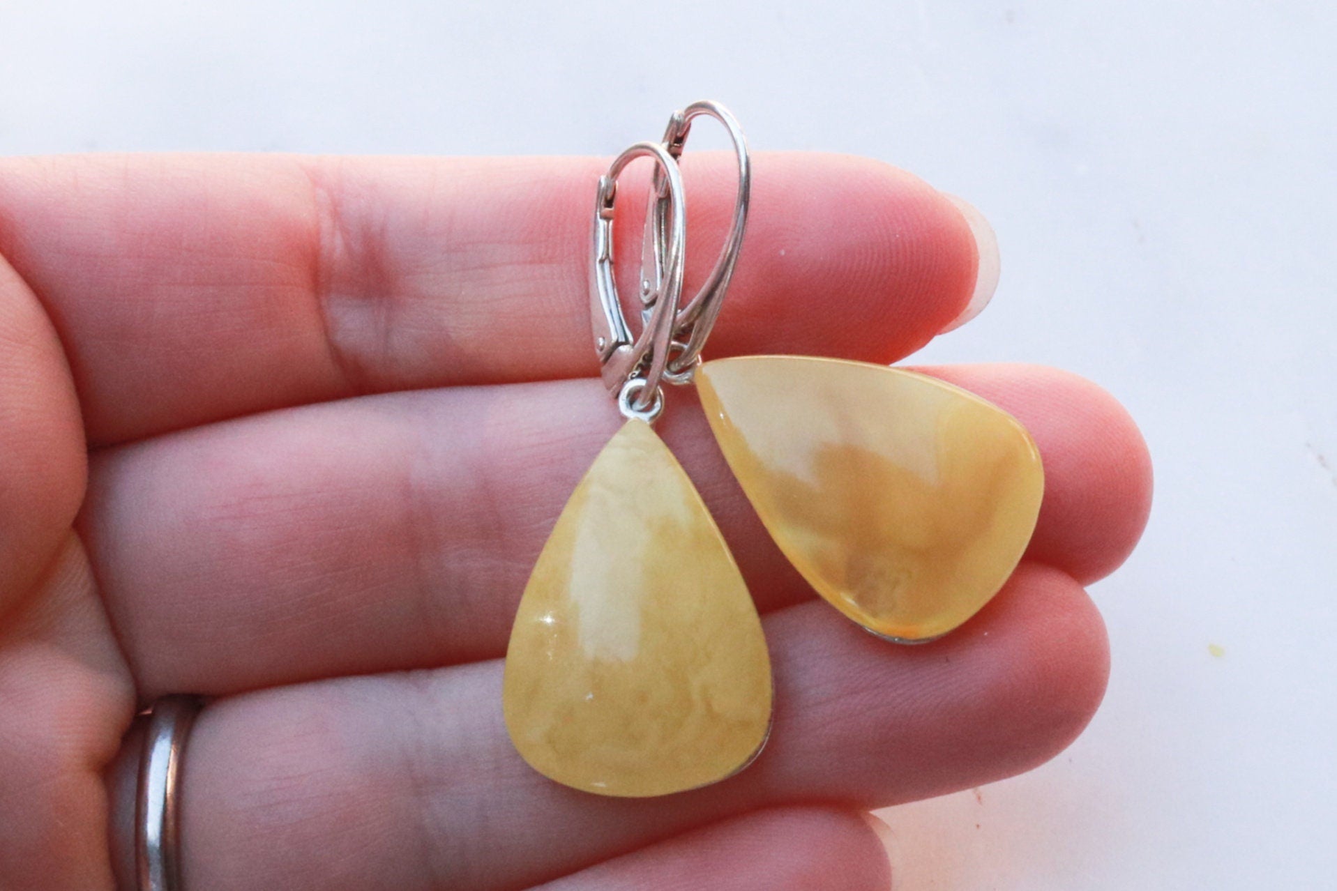 Beautiful Baltic Amber earrings in natural untreated butterscotch color.