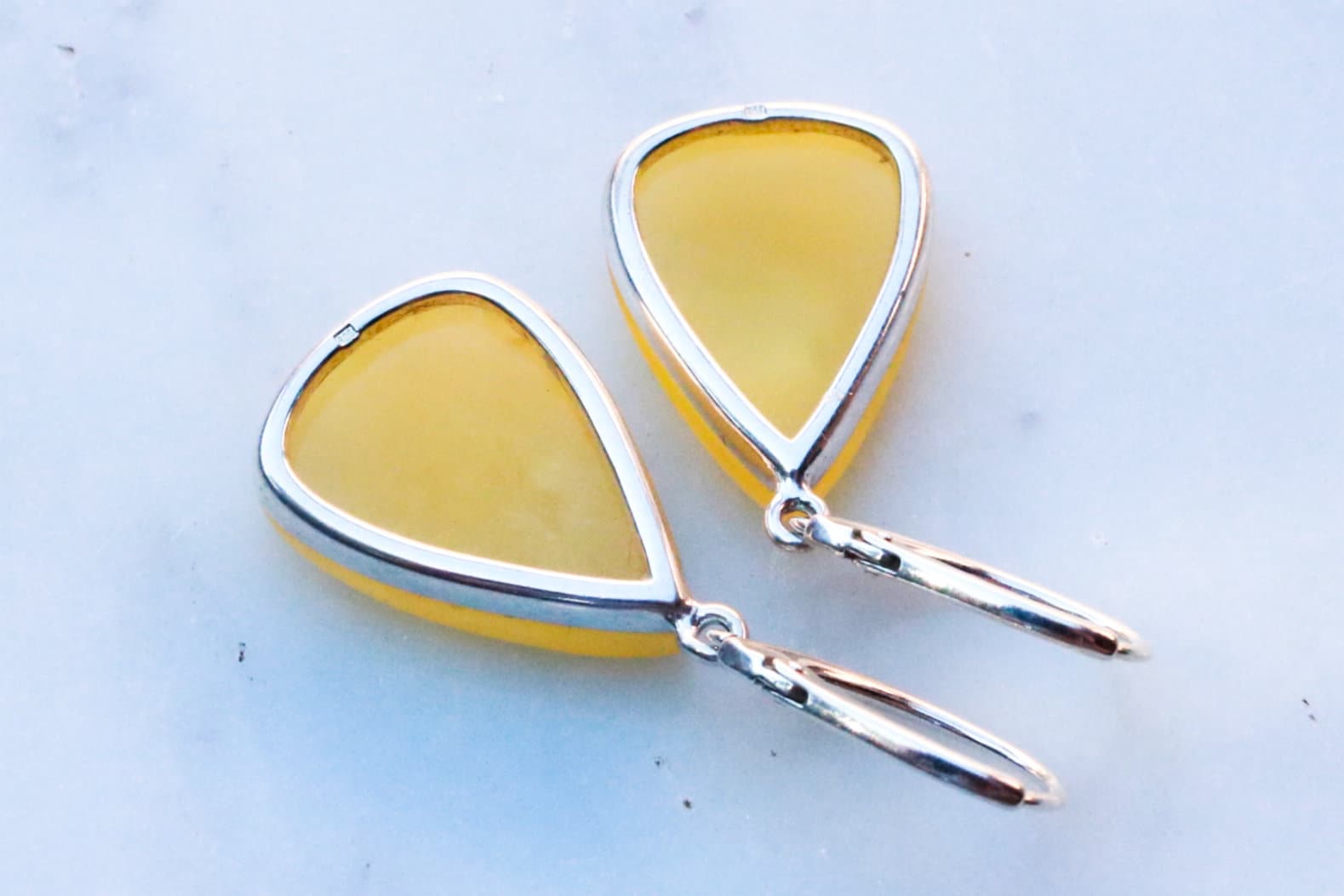 Baltic Amber Earrings Butterscotch Triangle Yellow Natural Jewelry 1.66" 6.3 gram 925 Silver