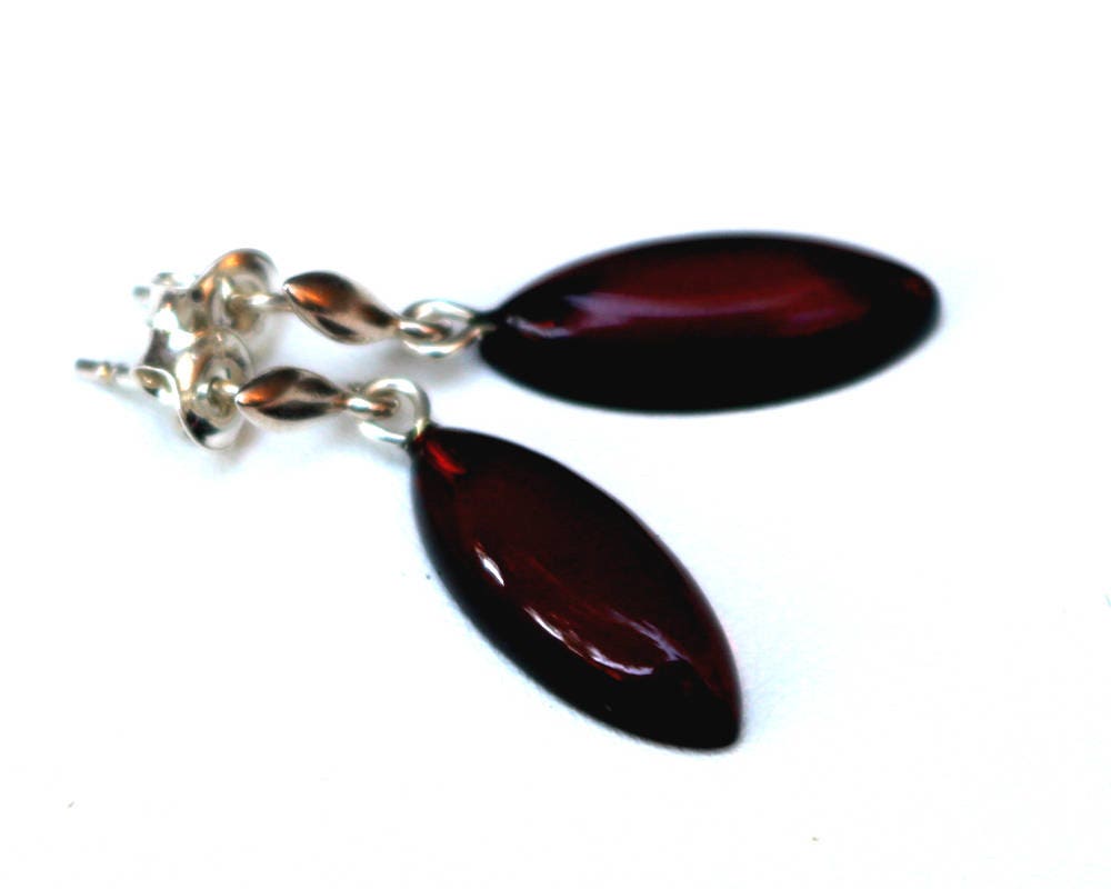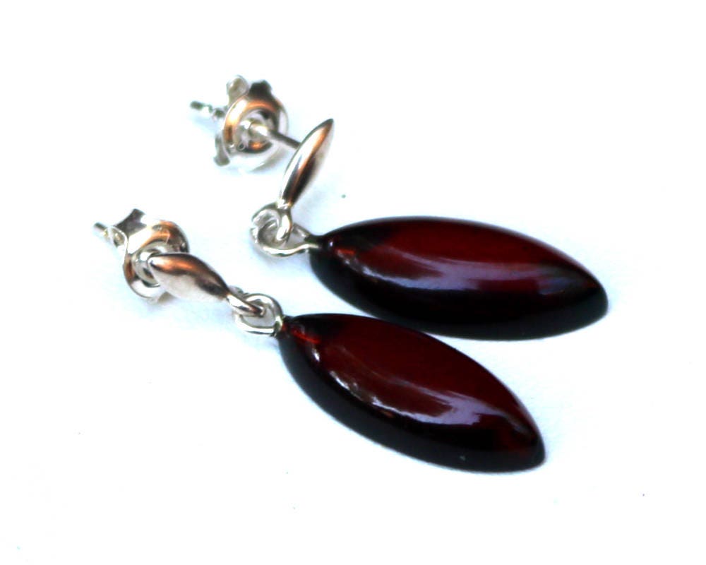 Baltic Amber Earrings Cherry Jewelry Dangling Natural 925 silver