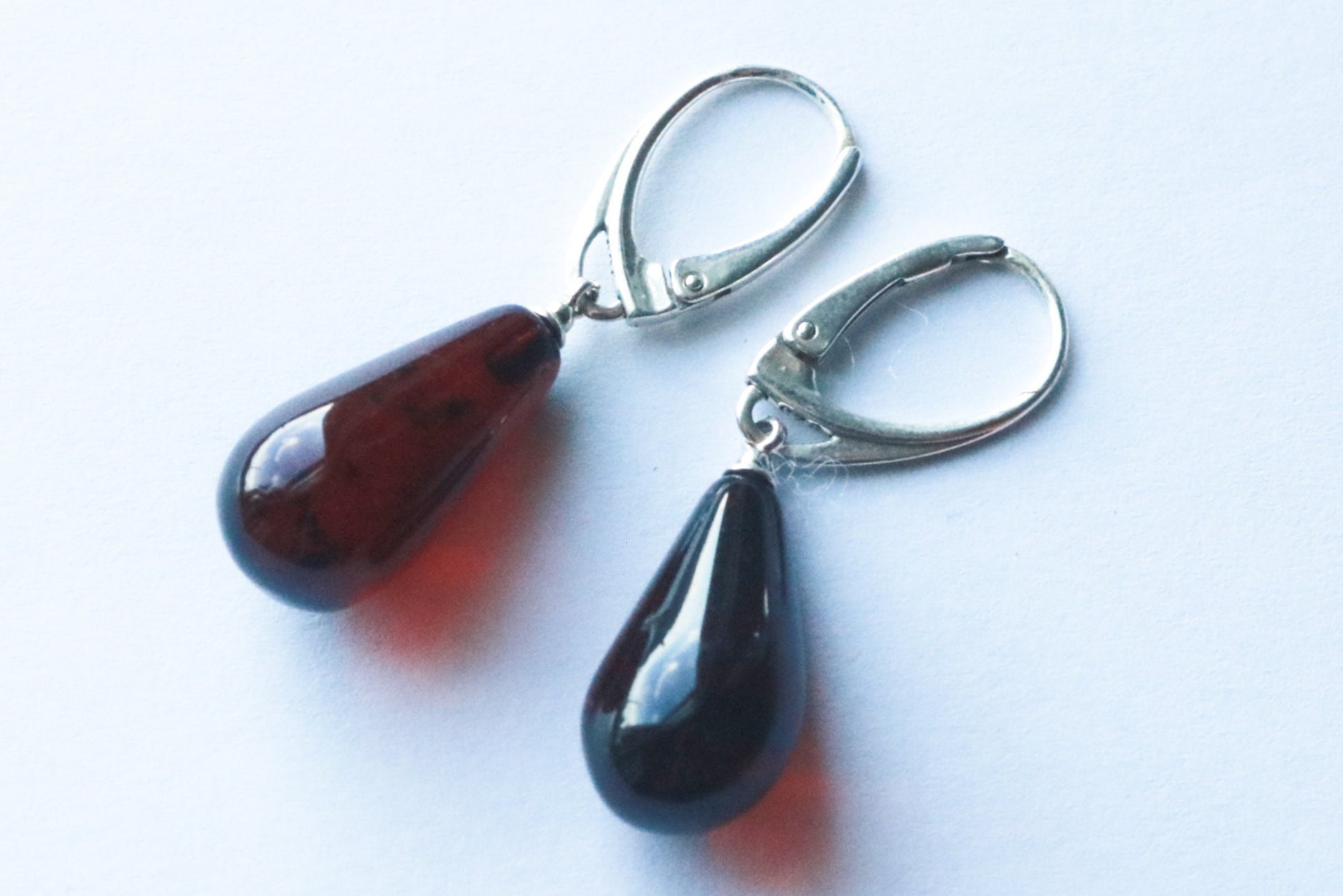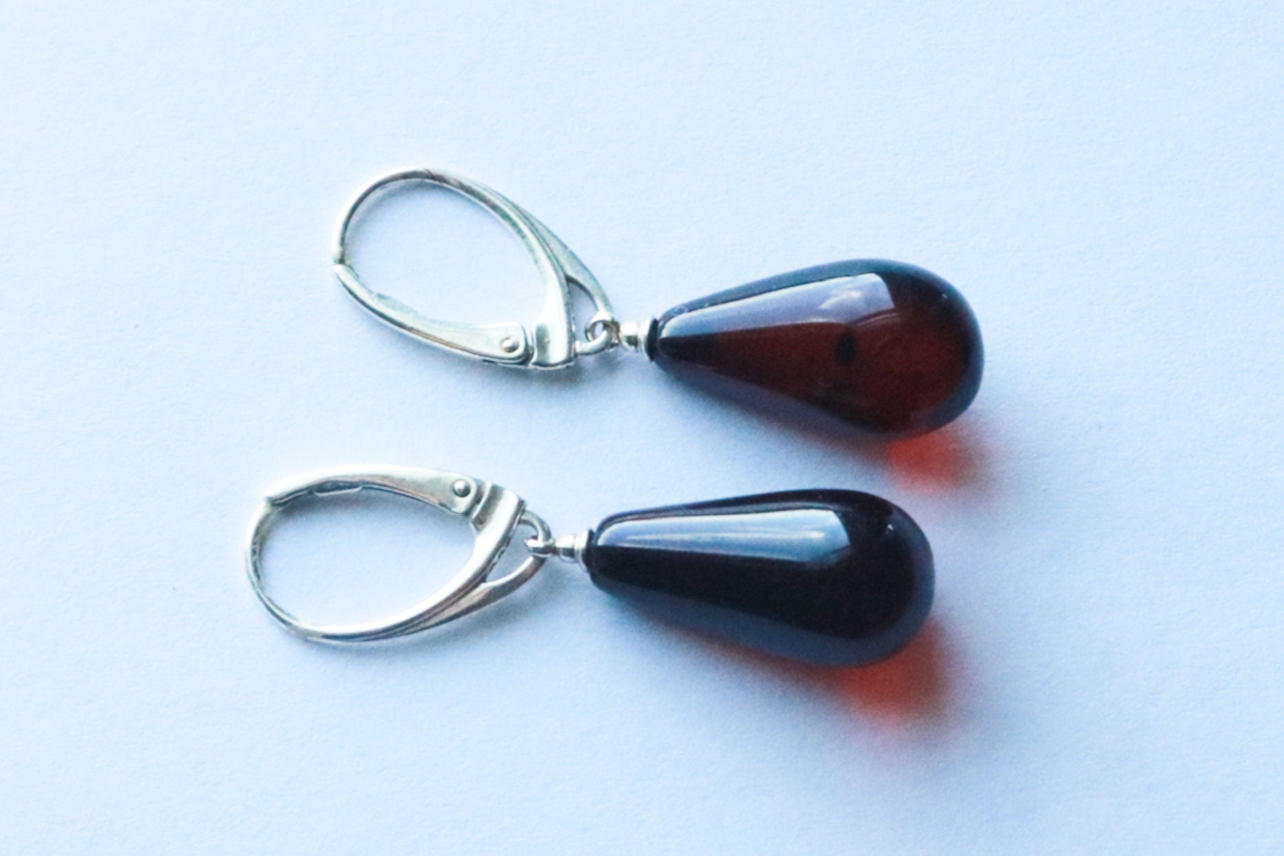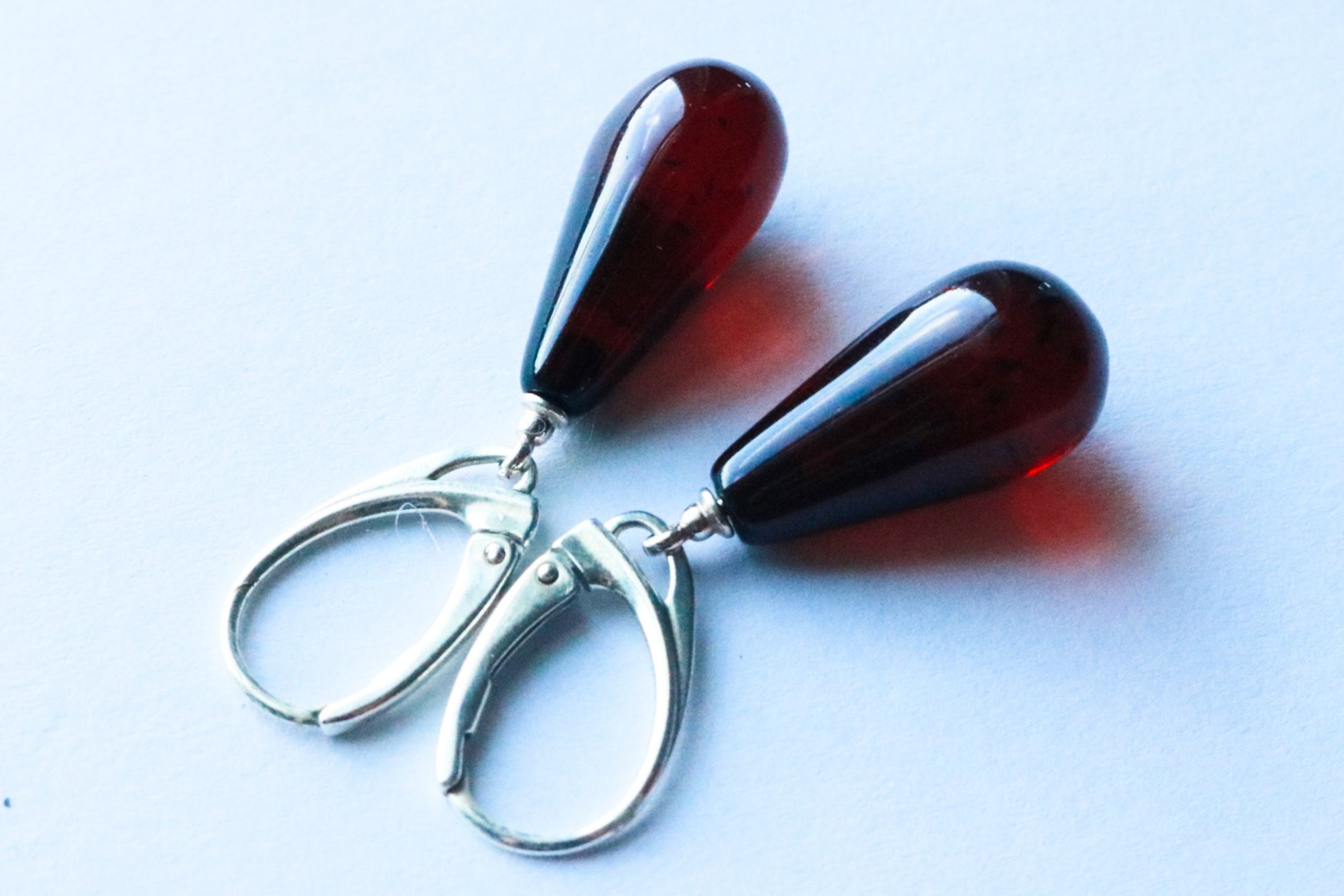 Baltic Amber earrings in natural untreated cherry color.