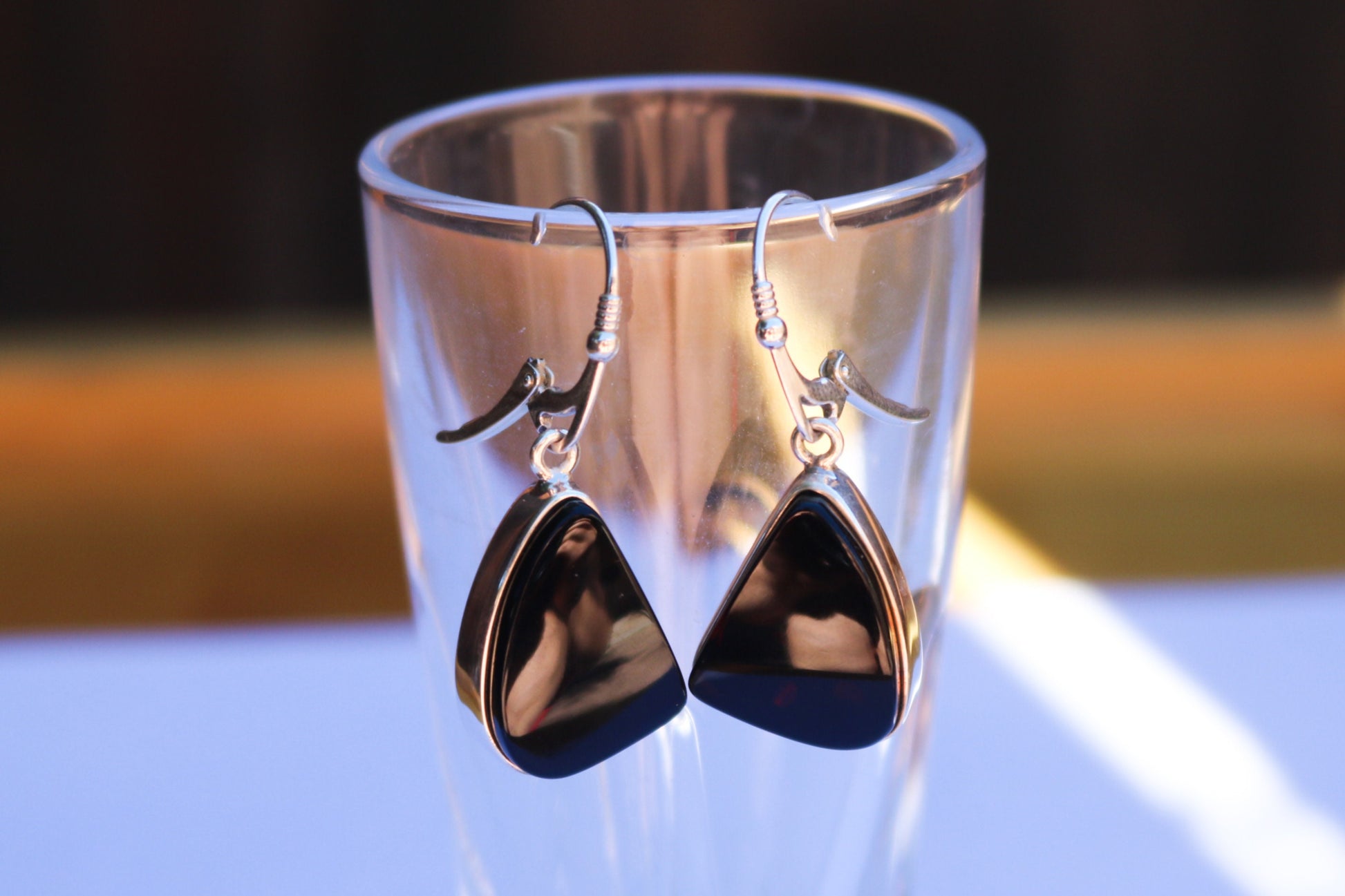 Gorgeous Baltic Amber earrings in natural untreated dark cherry color. Raw unpolished back side.