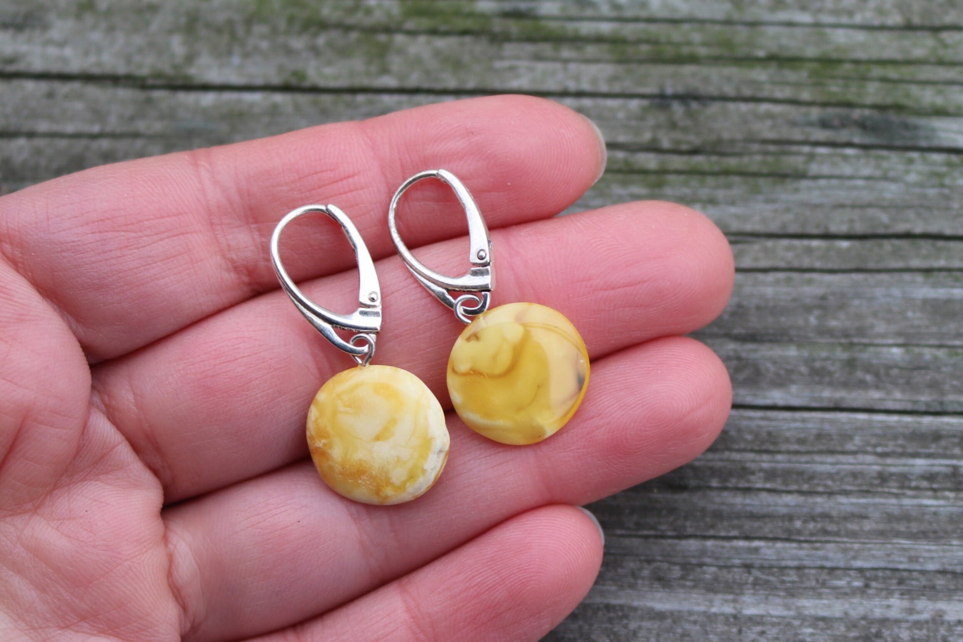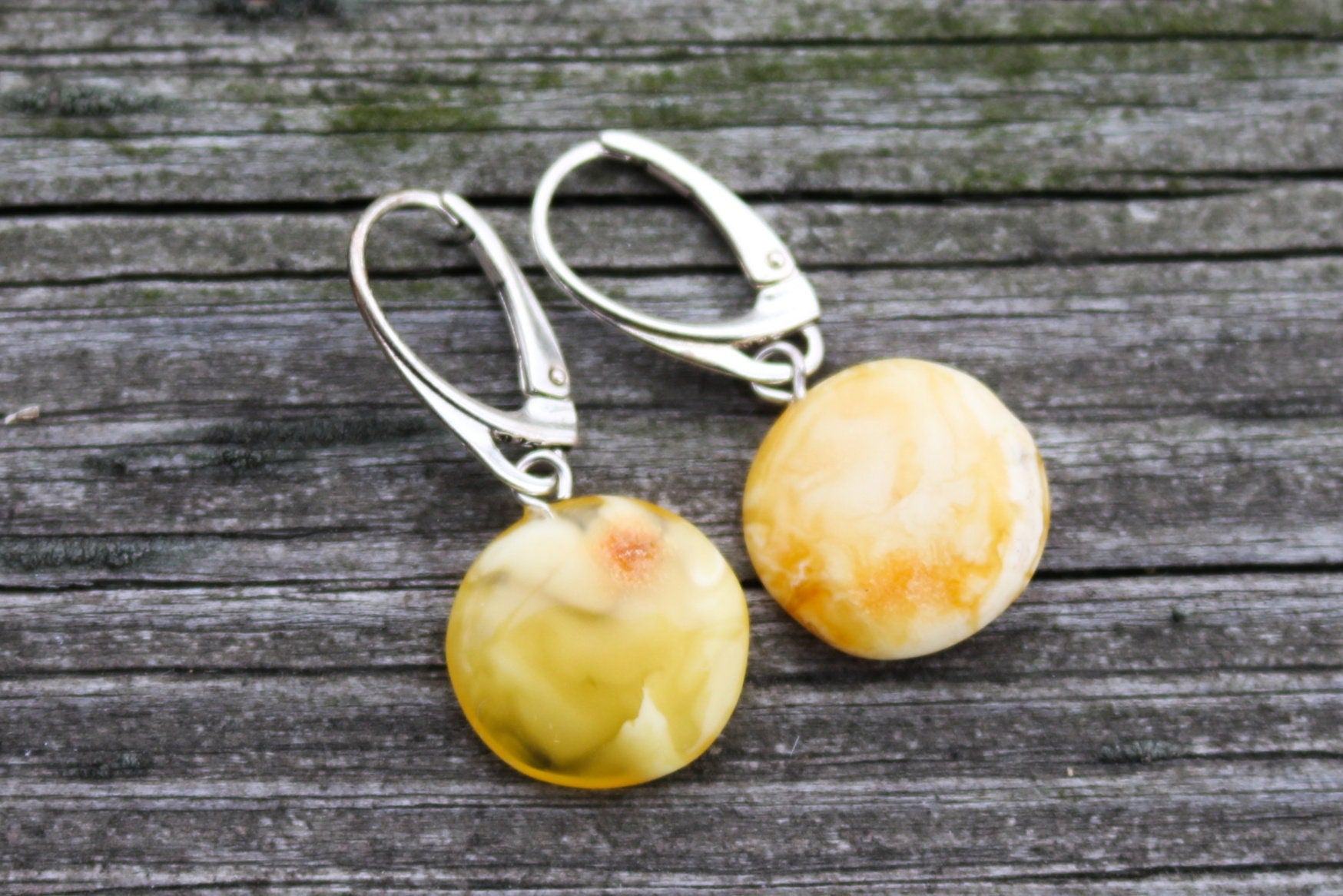 Baltic Amber Earrings Disc Butterscotch Yolk Natural Jewelry 1.15" 2.4 gram 925 Silver
