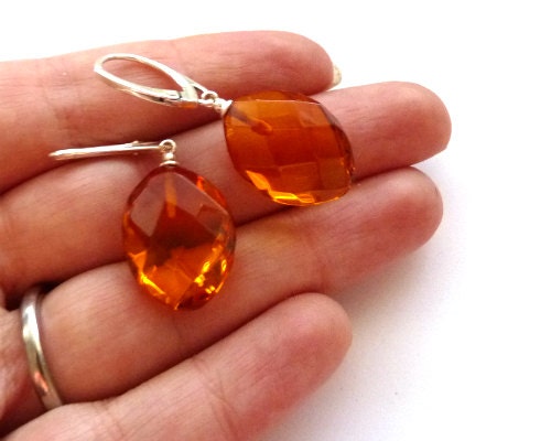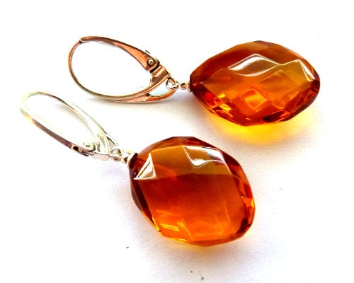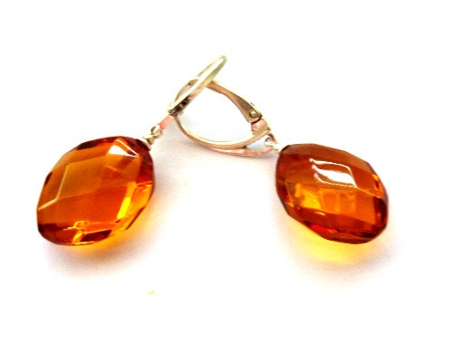 Baltic Amber Earrings Faceted Honey Natural Jewelry 1.57" 4.1 gram 925 Silver