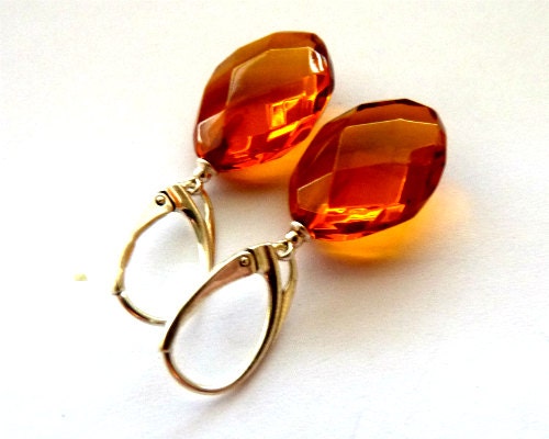 Baltic Amber dangling earrings hand carved and faceted in shiny honey color.