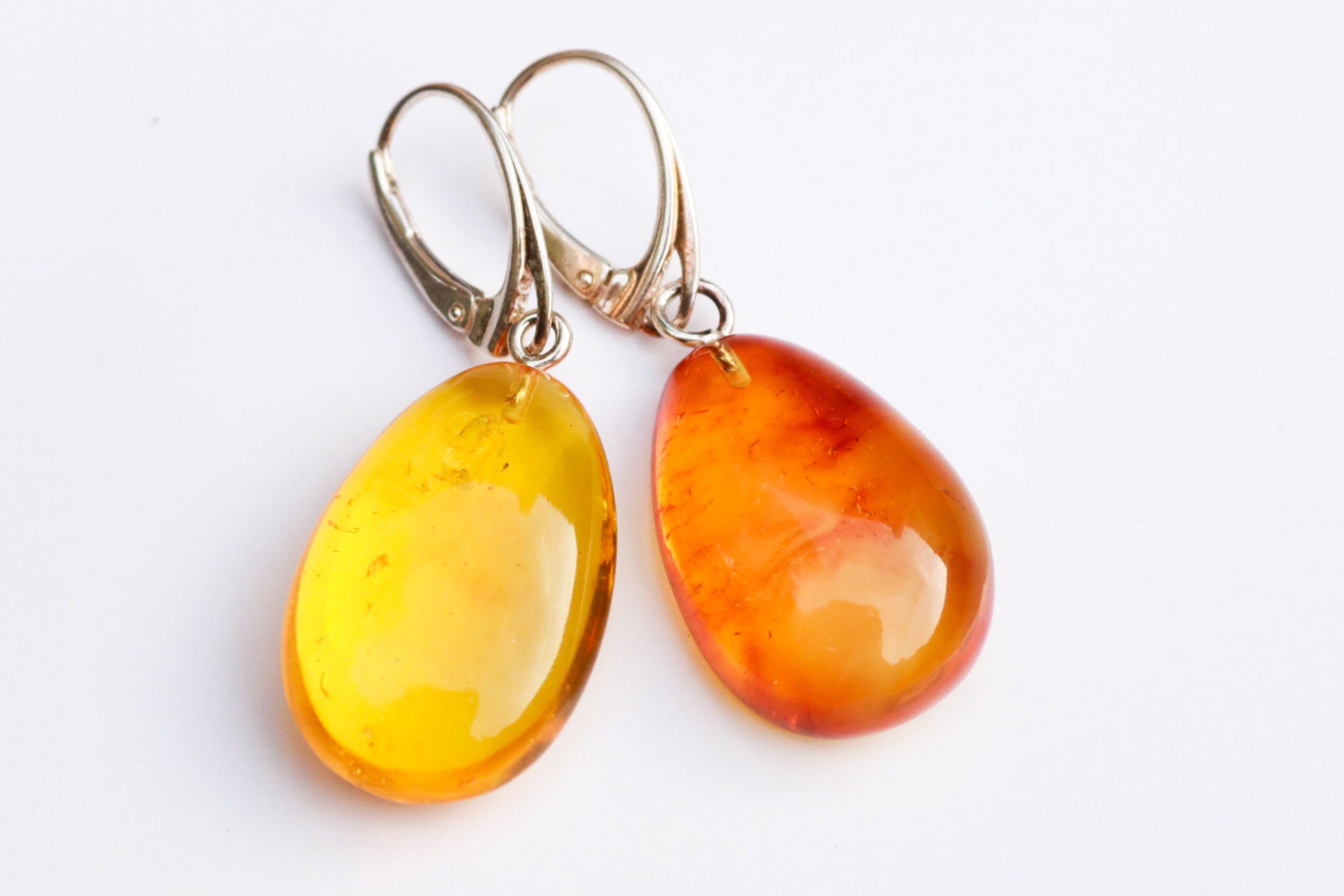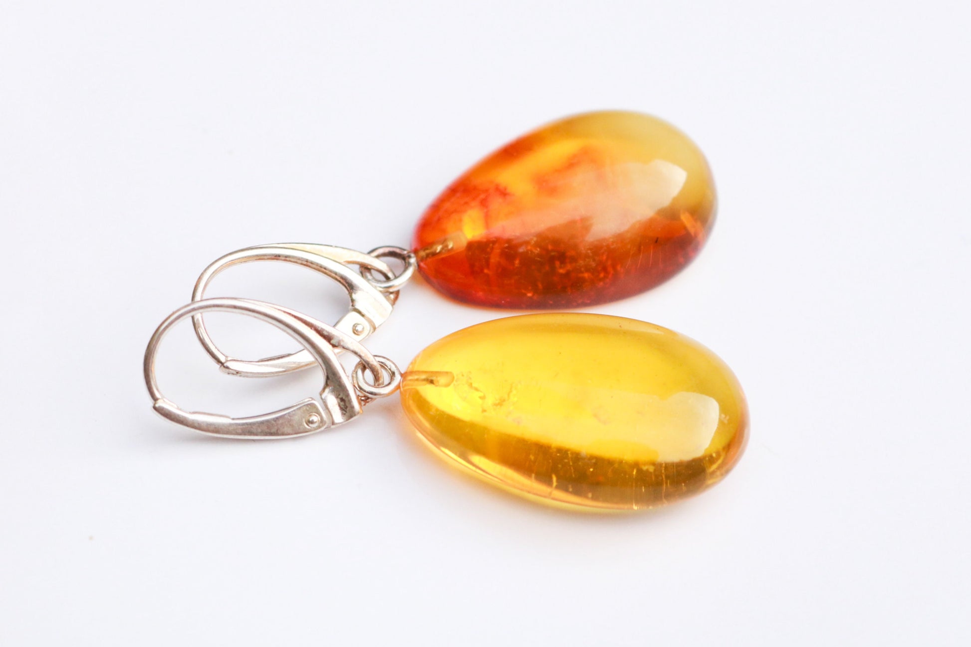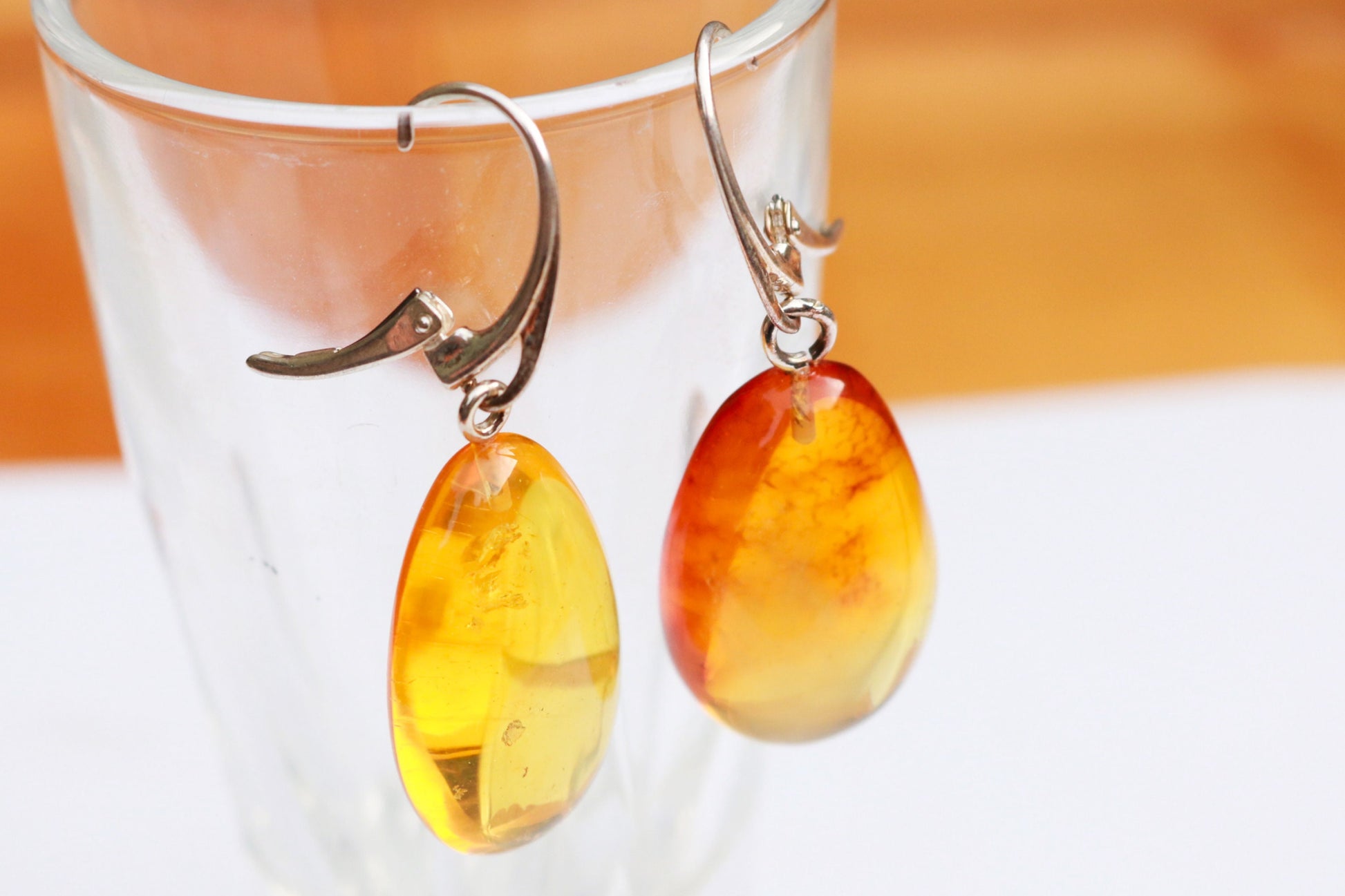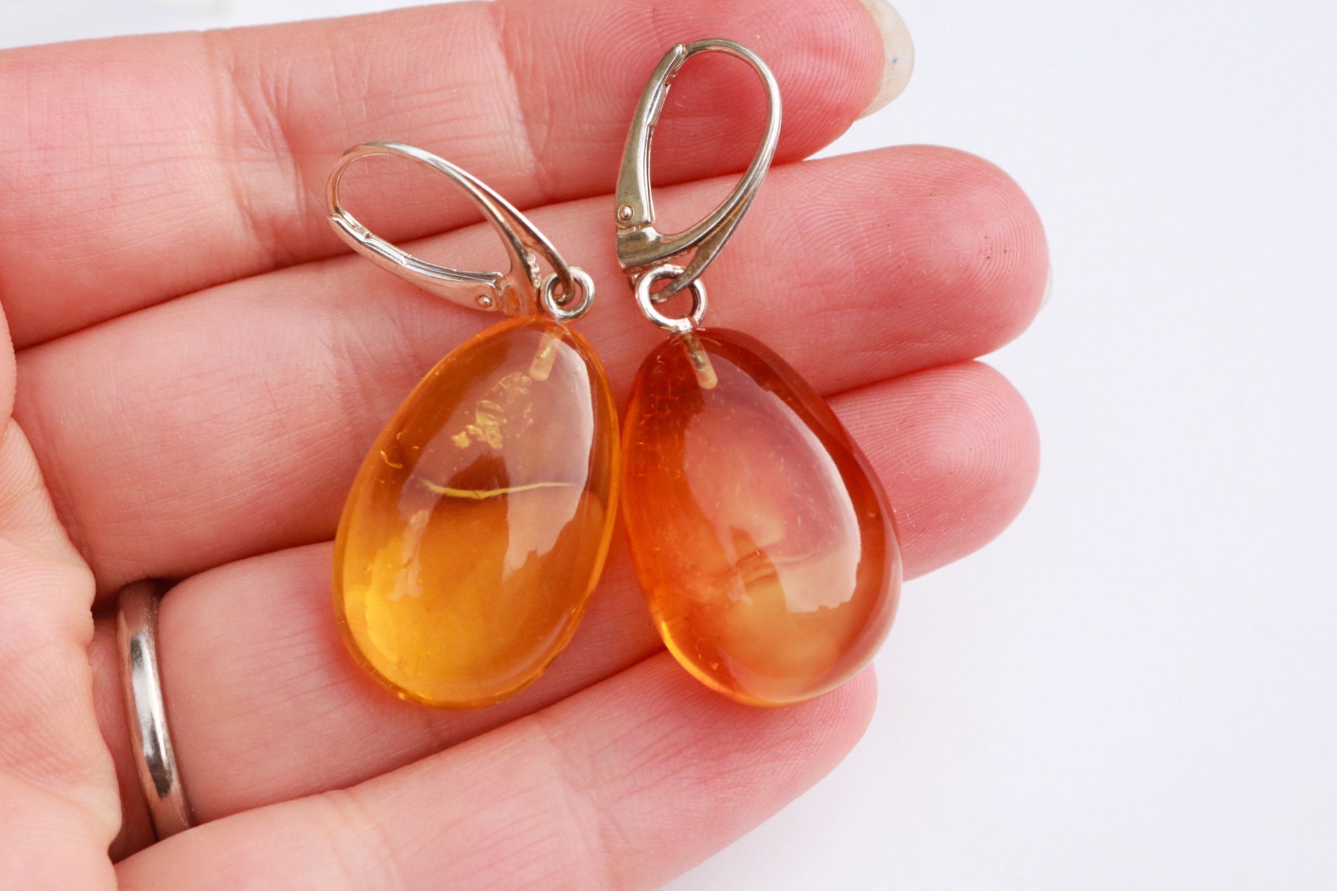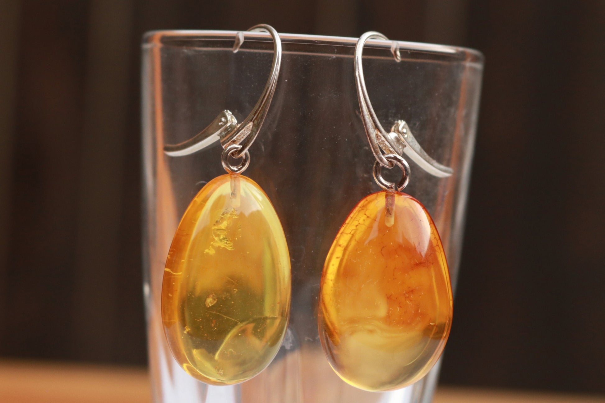 Baltic Amber Earrings Honey Drop Natural Sparkling Natural 1.78" 6 gram 925 Silver