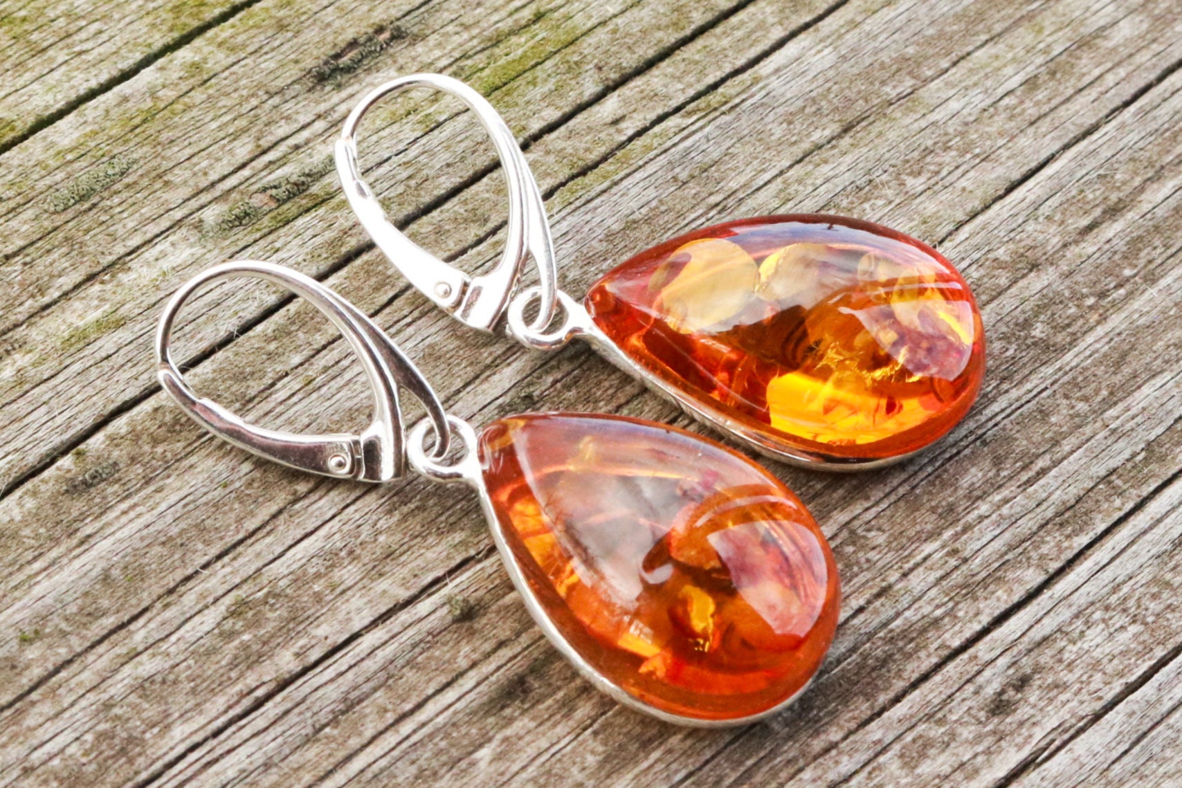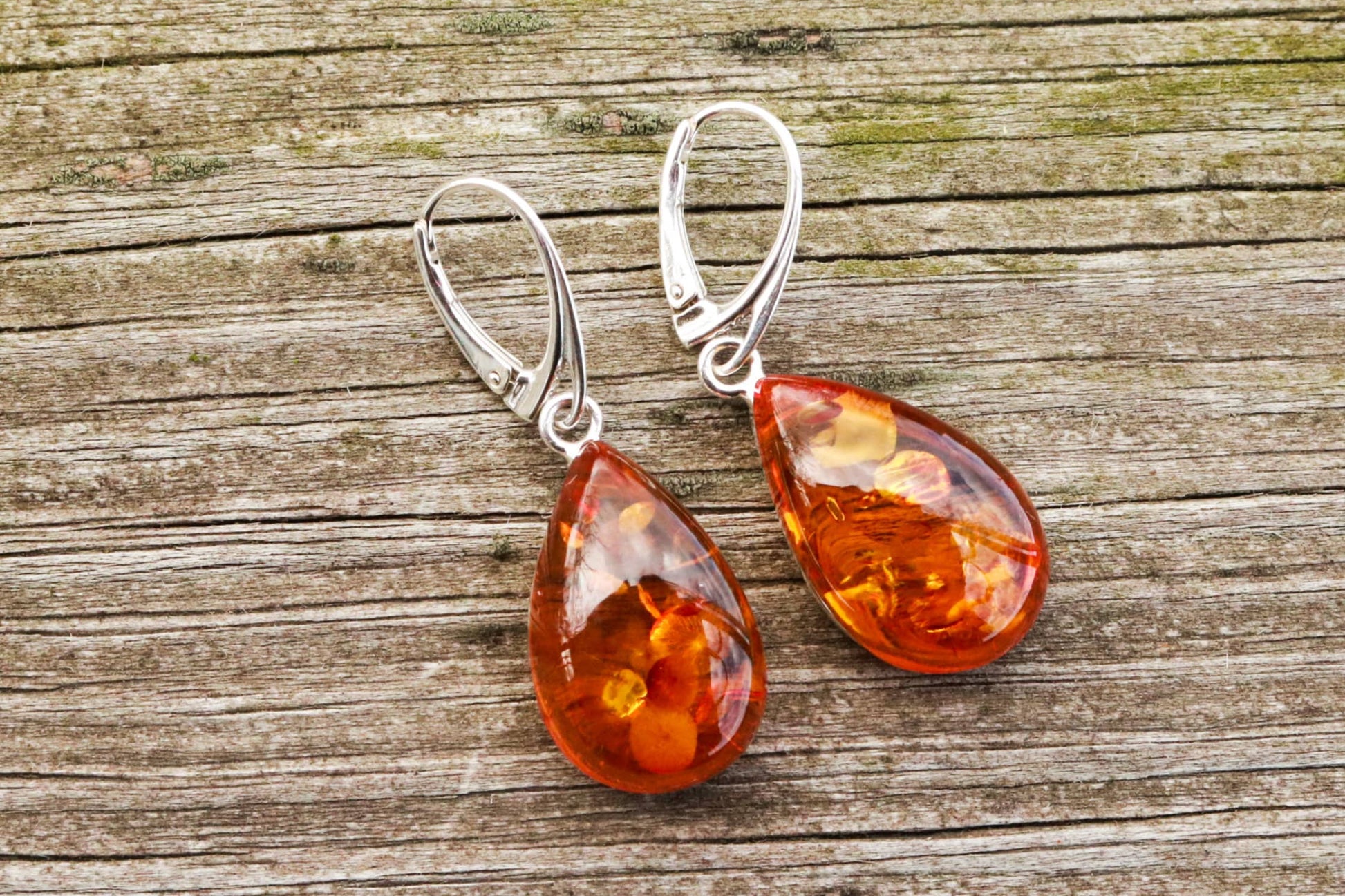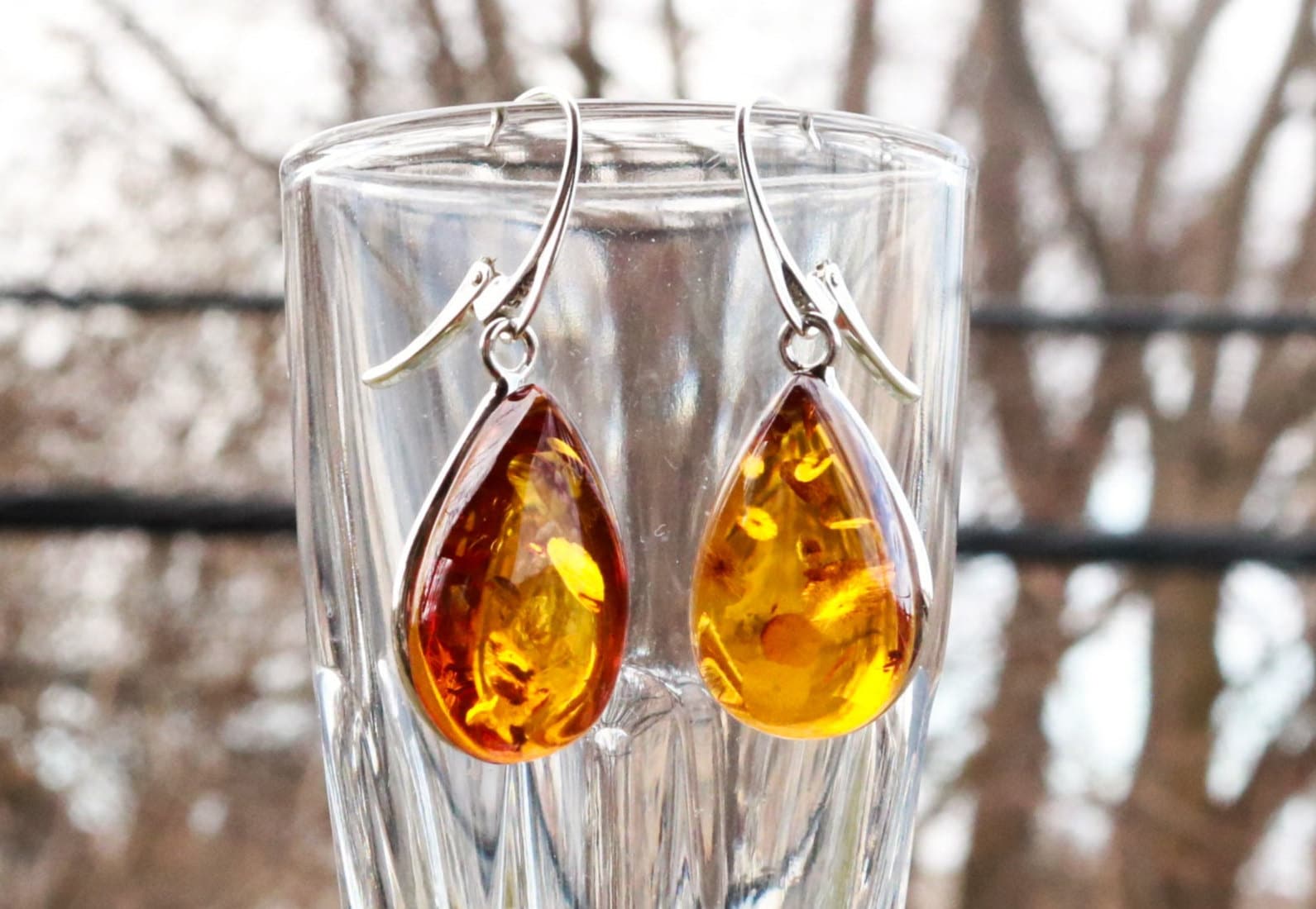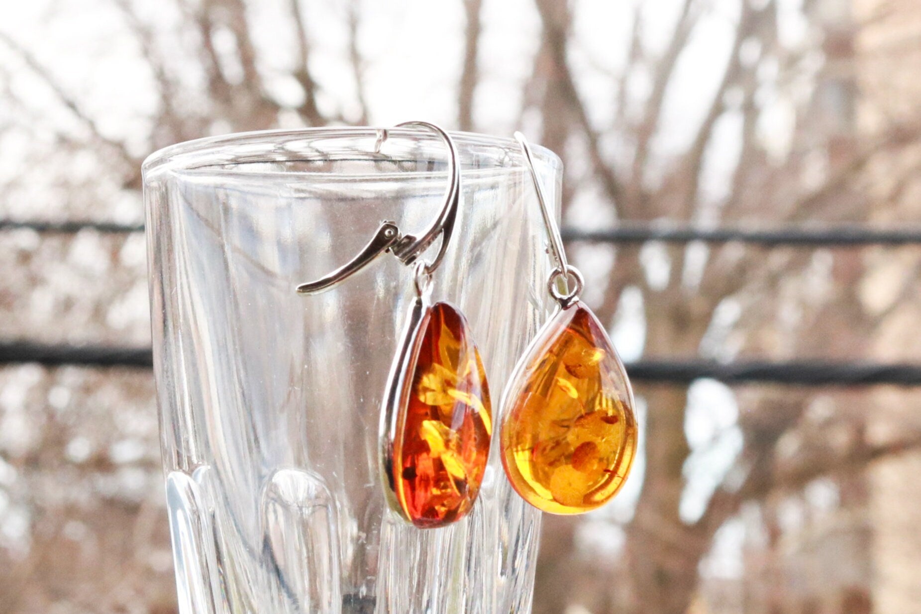 Baltic Amber Earrings Honey Drops Natural Dangling Jewelry 1.72" 7.1 gram 925 Silver