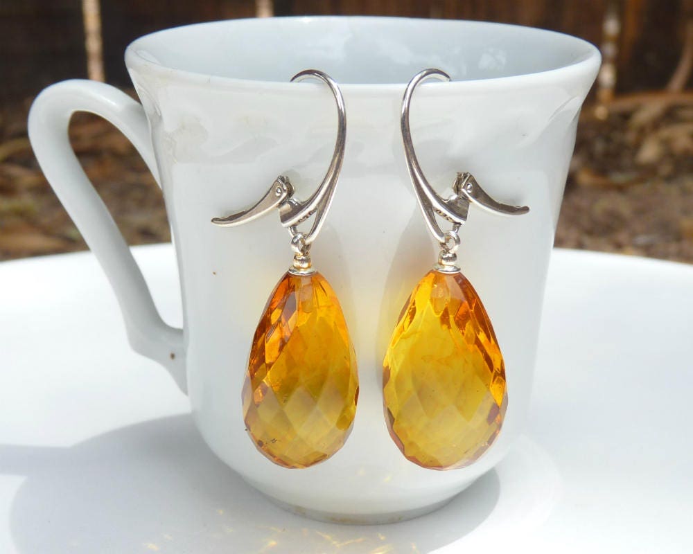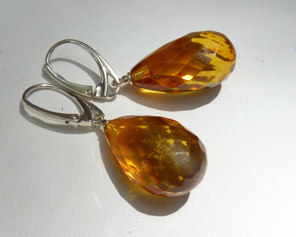 Baltic Amber Earrings Honey Faceted Drop Natural Jewelry 1.64" 4.8 gram 925 Silver