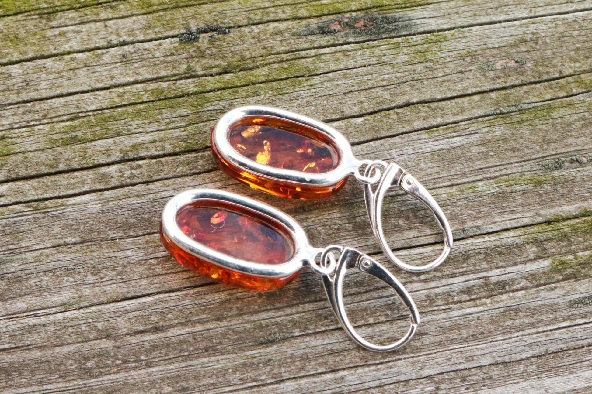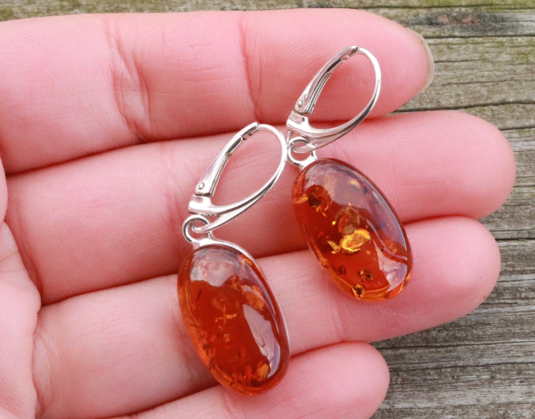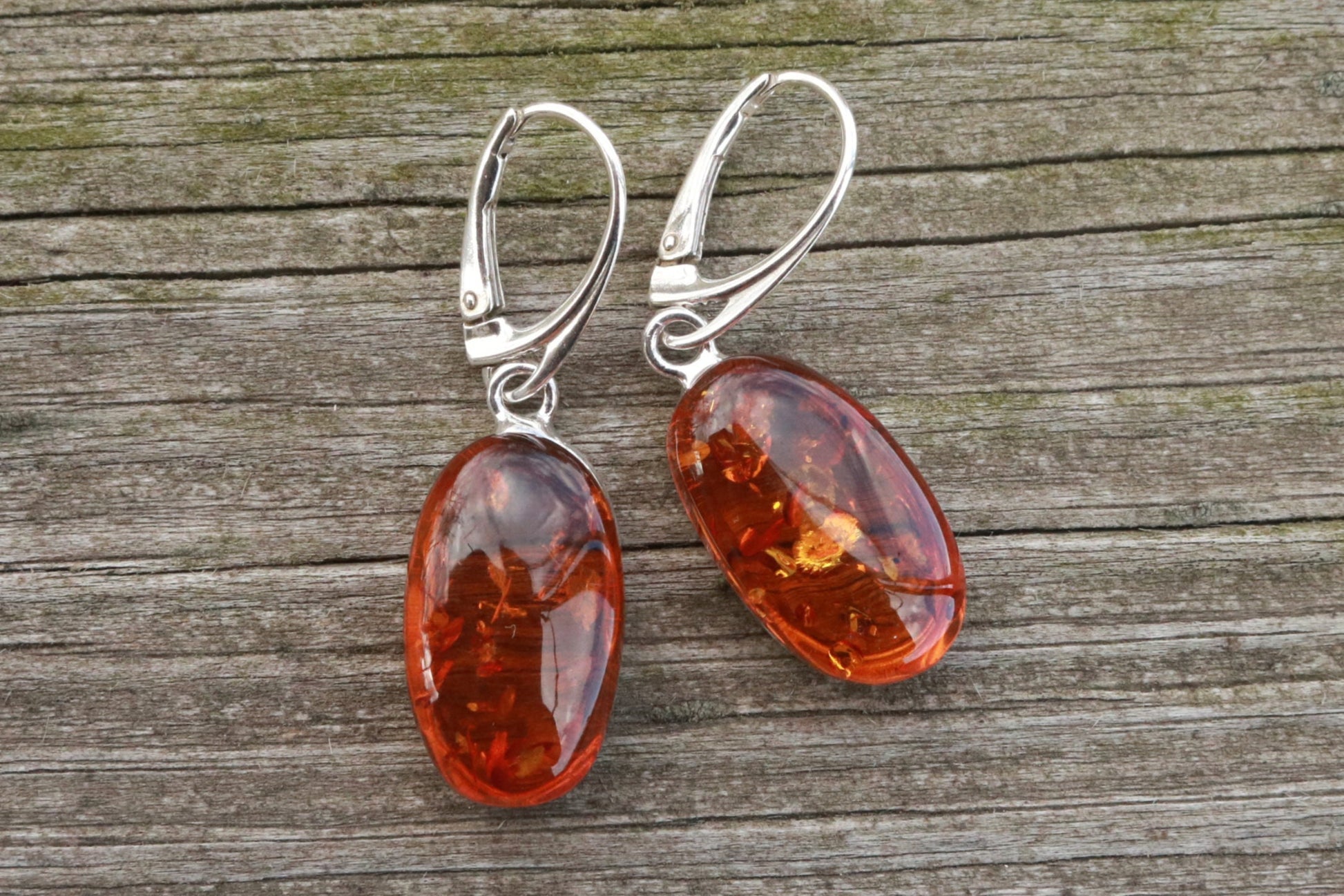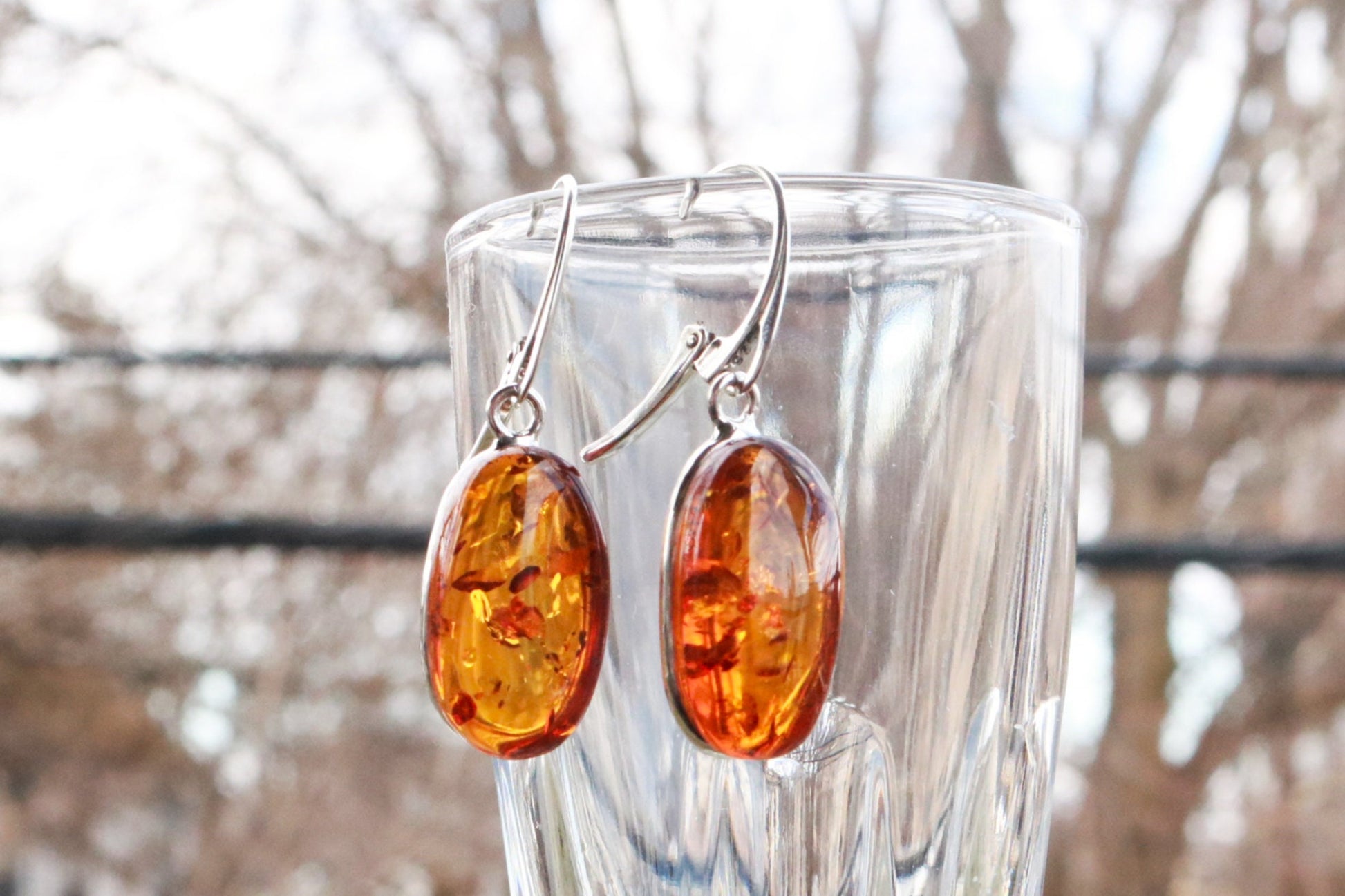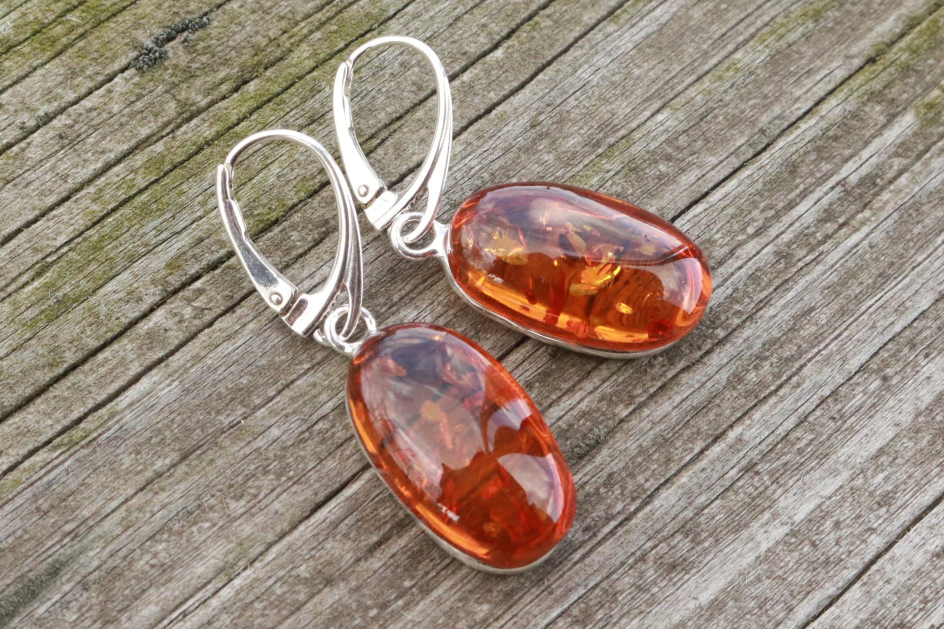 Gorgeous Baltic Amber oval earrings sparkling honey color.