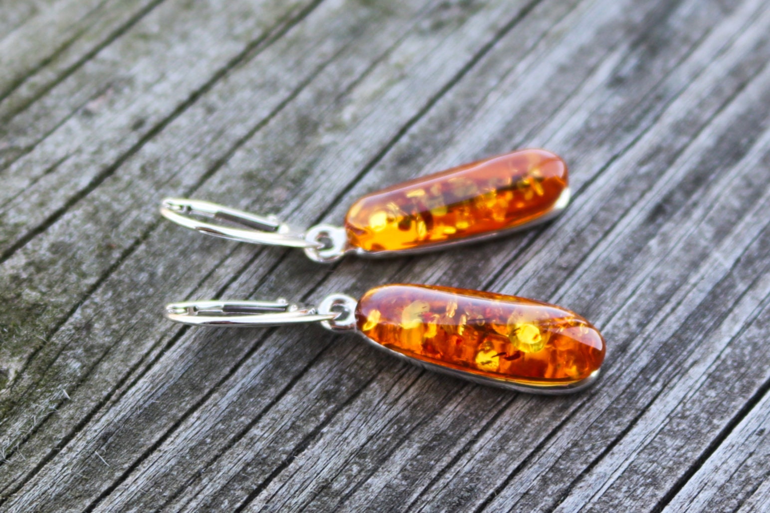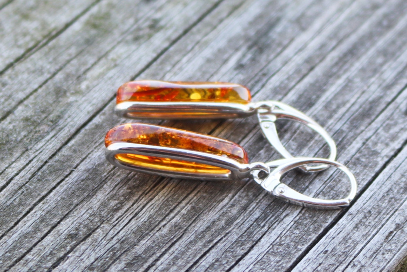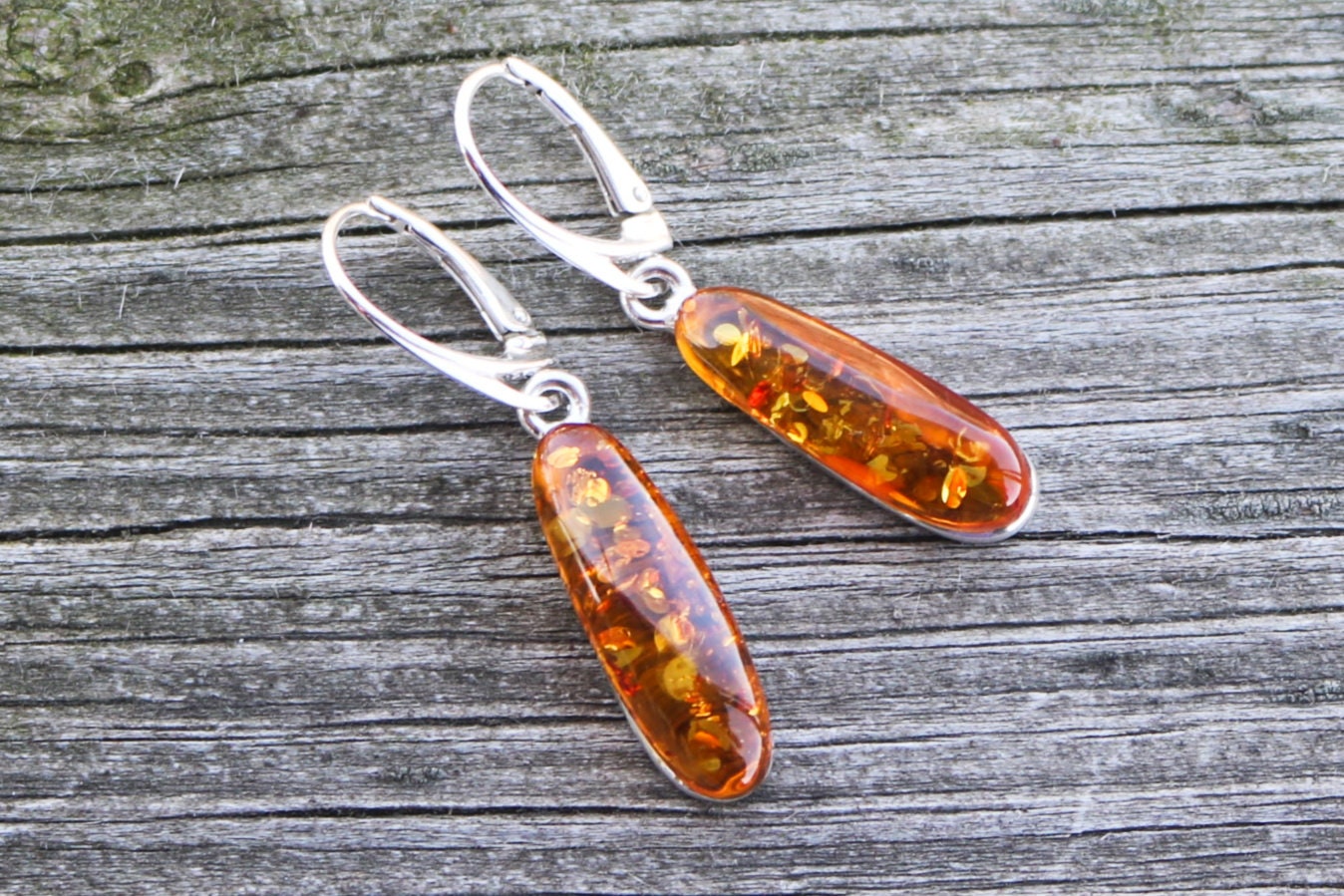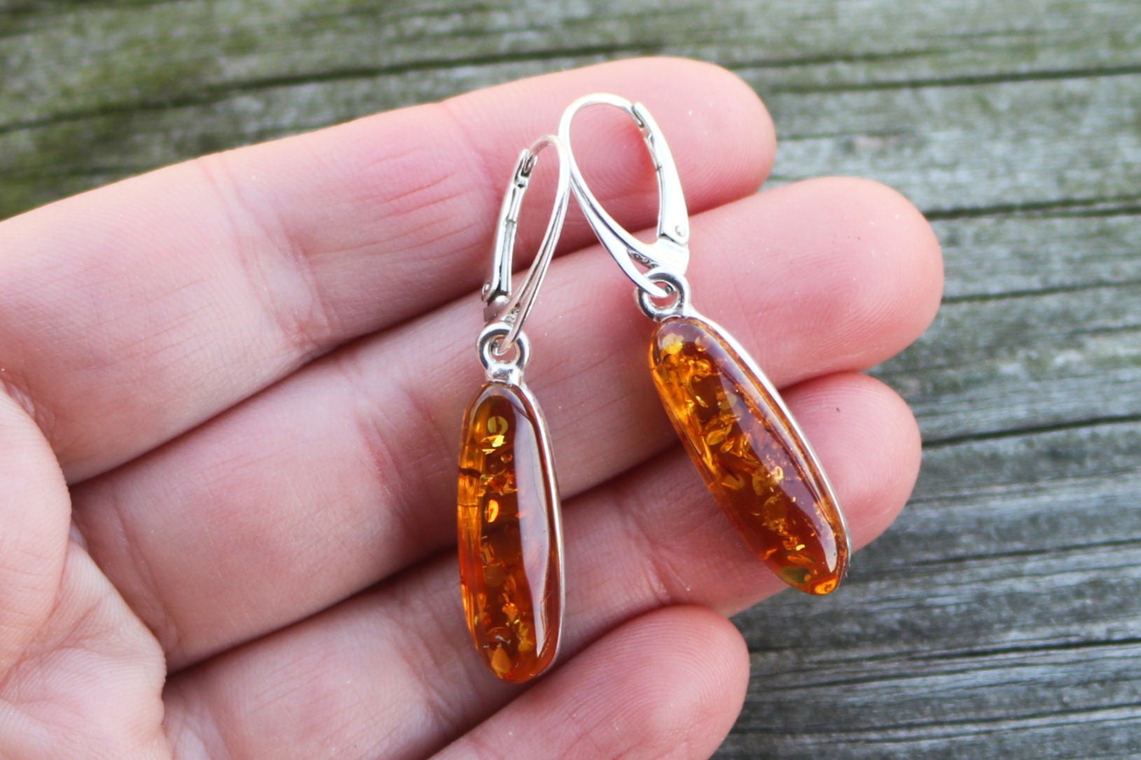 Baltic Amber Earrings Honey Oval Sparkling Natural Jewelry 1.72" 5.8 gram 925 silver