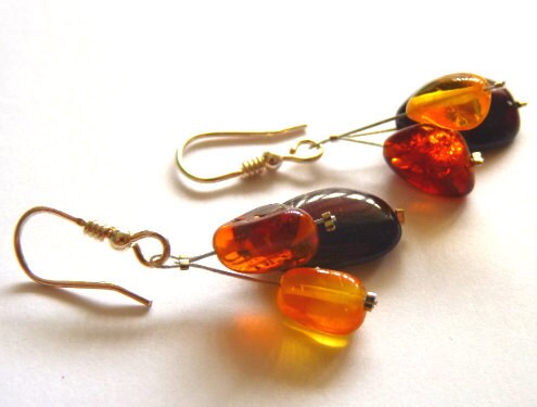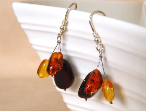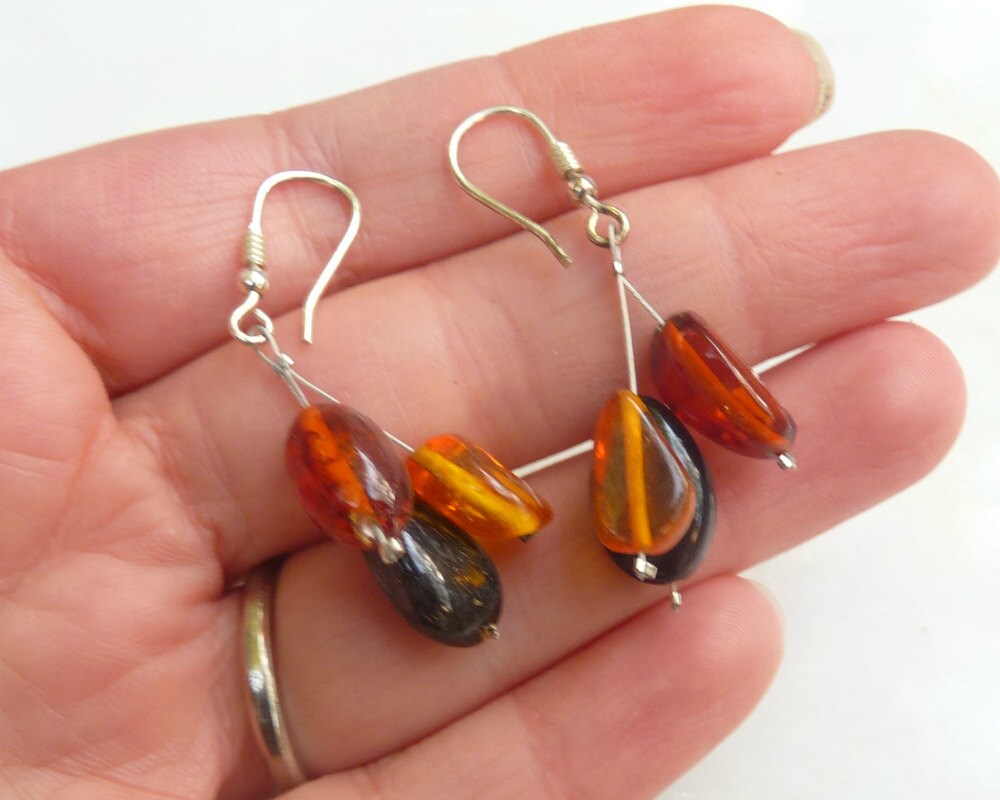 Baltic Amber handcrafted earrings in cognac, yellow and cherry colors; set in 925 sterling silver
