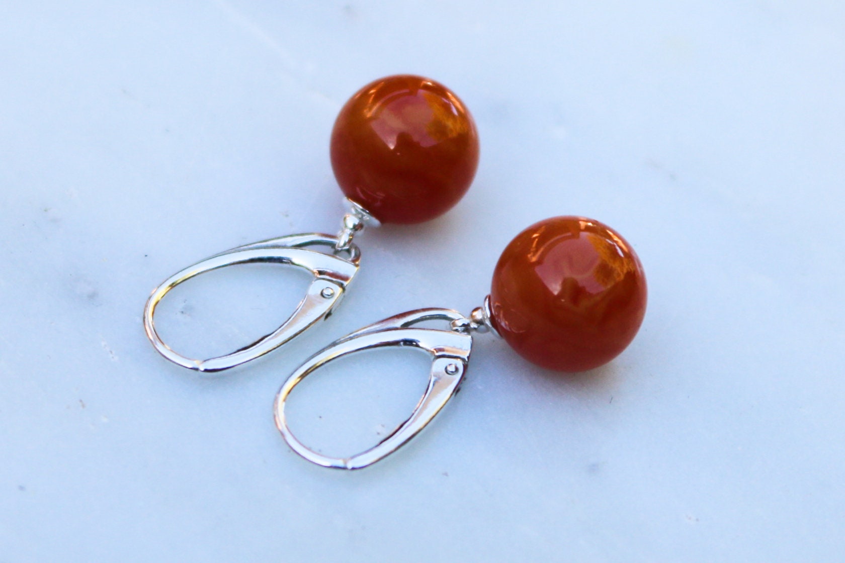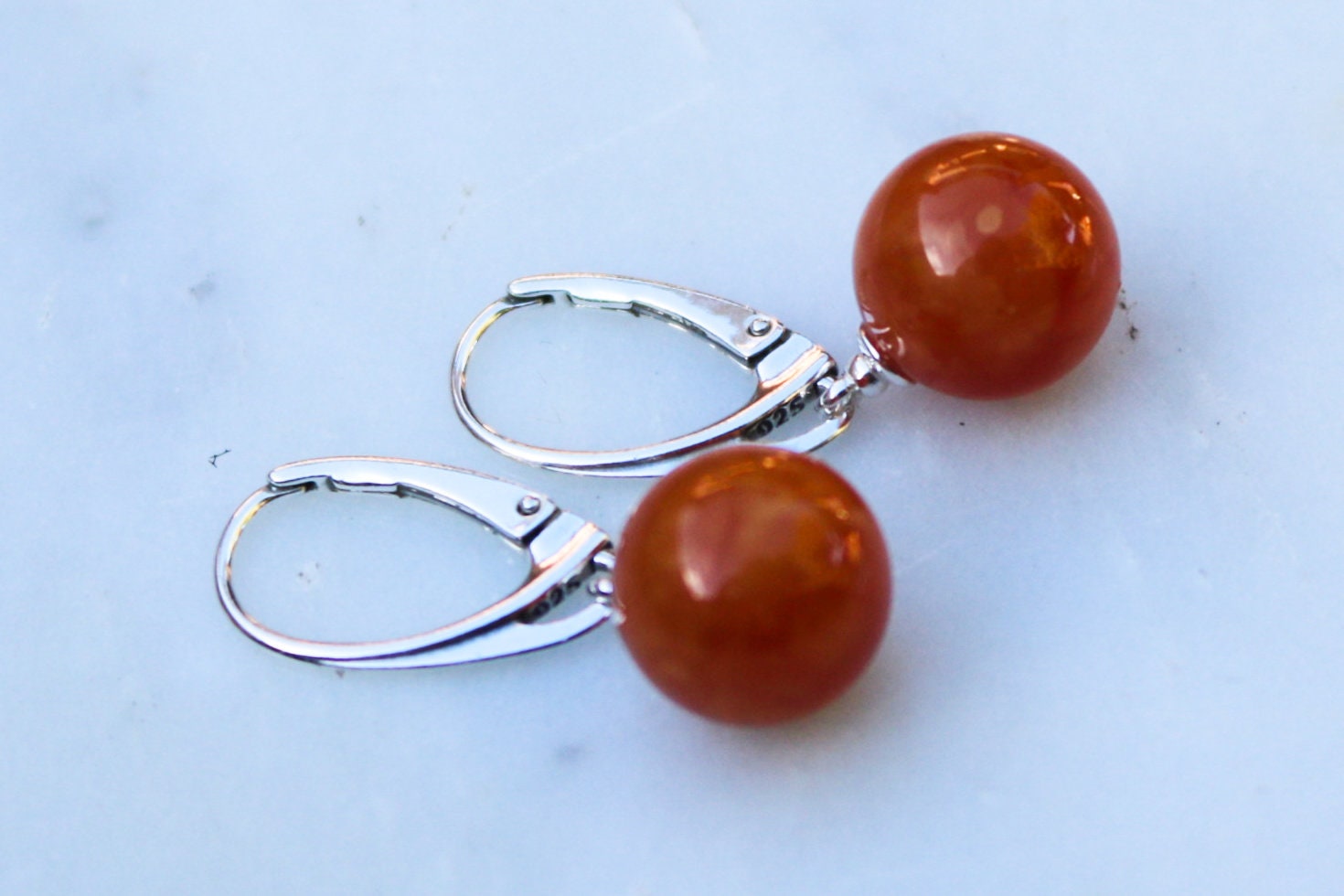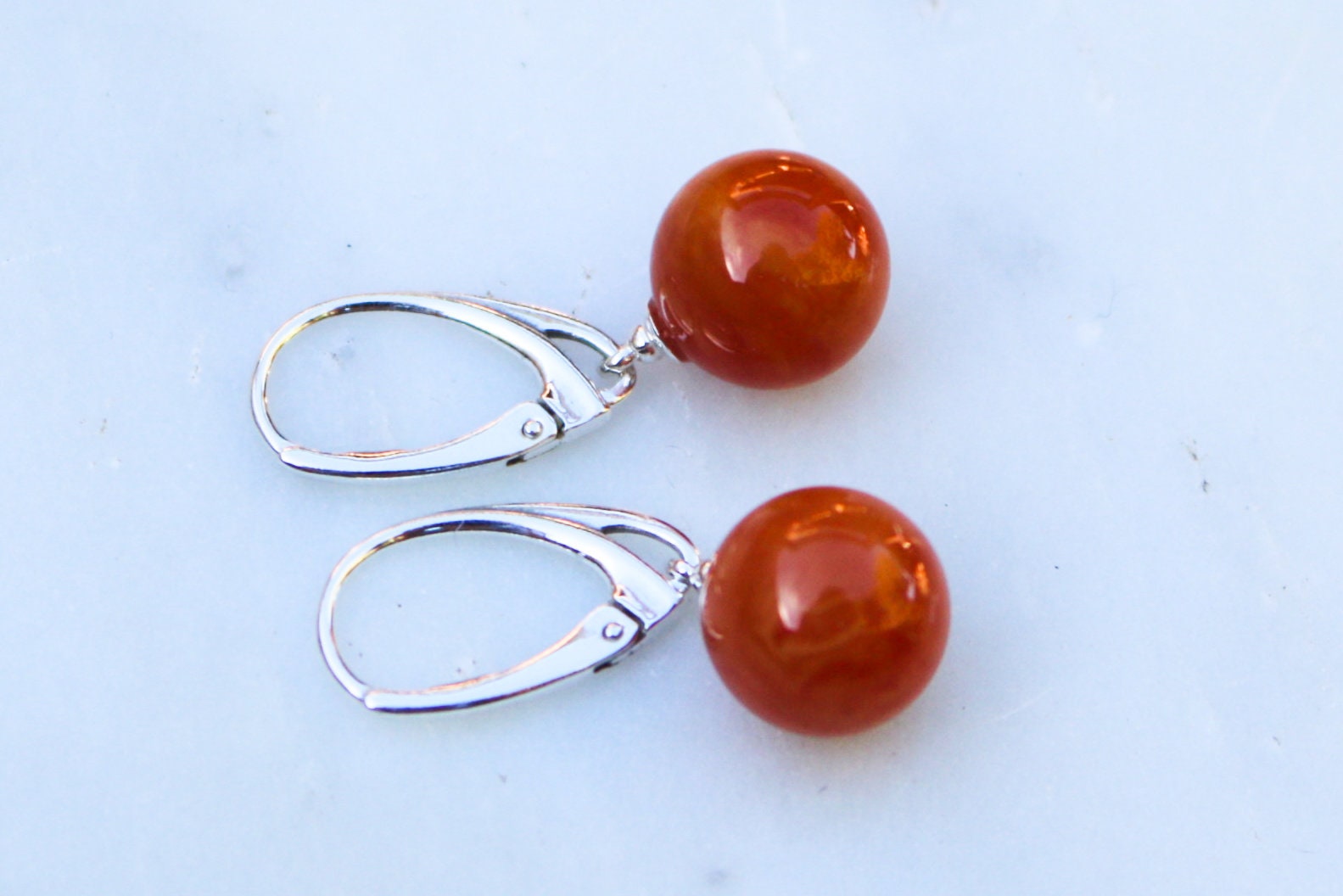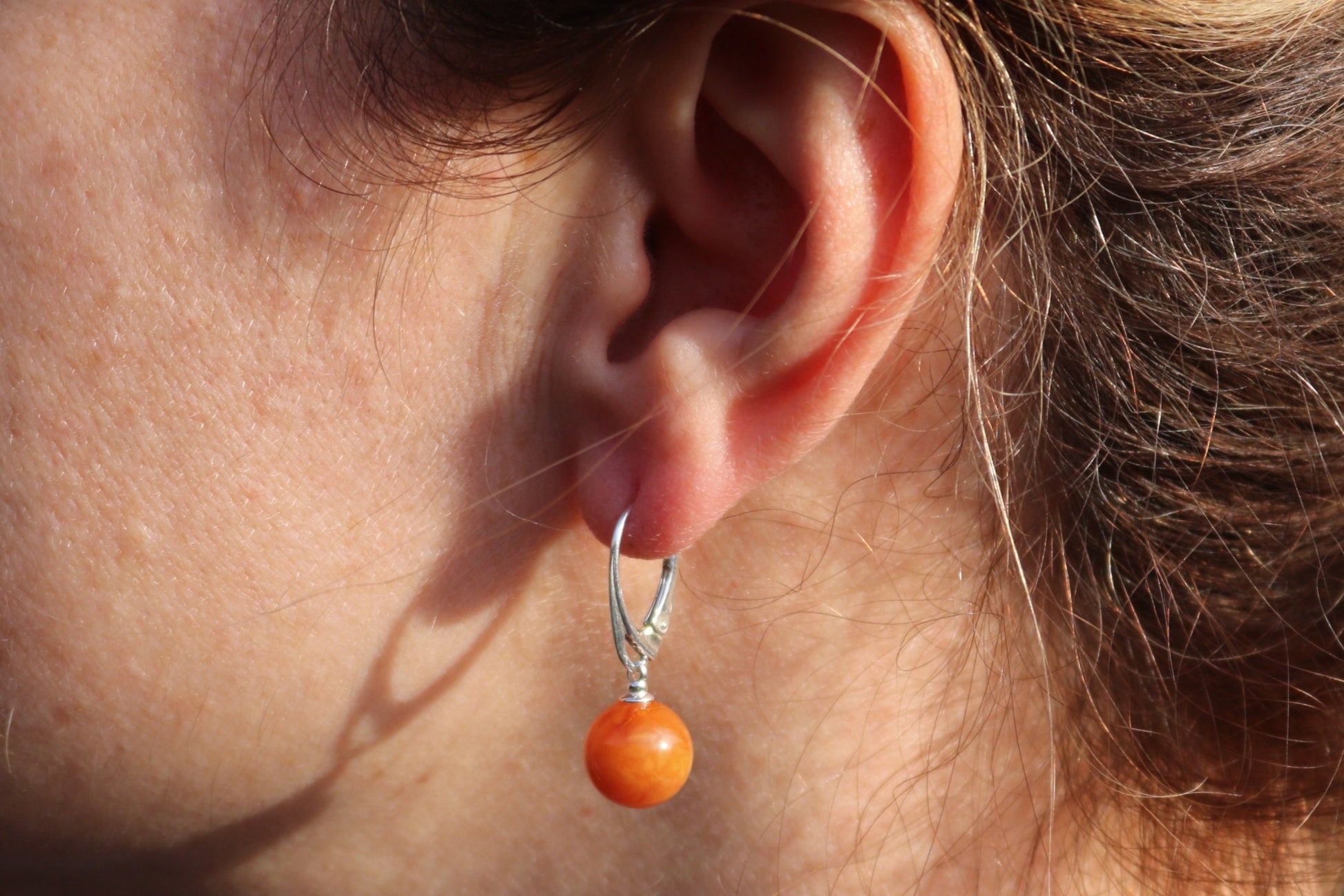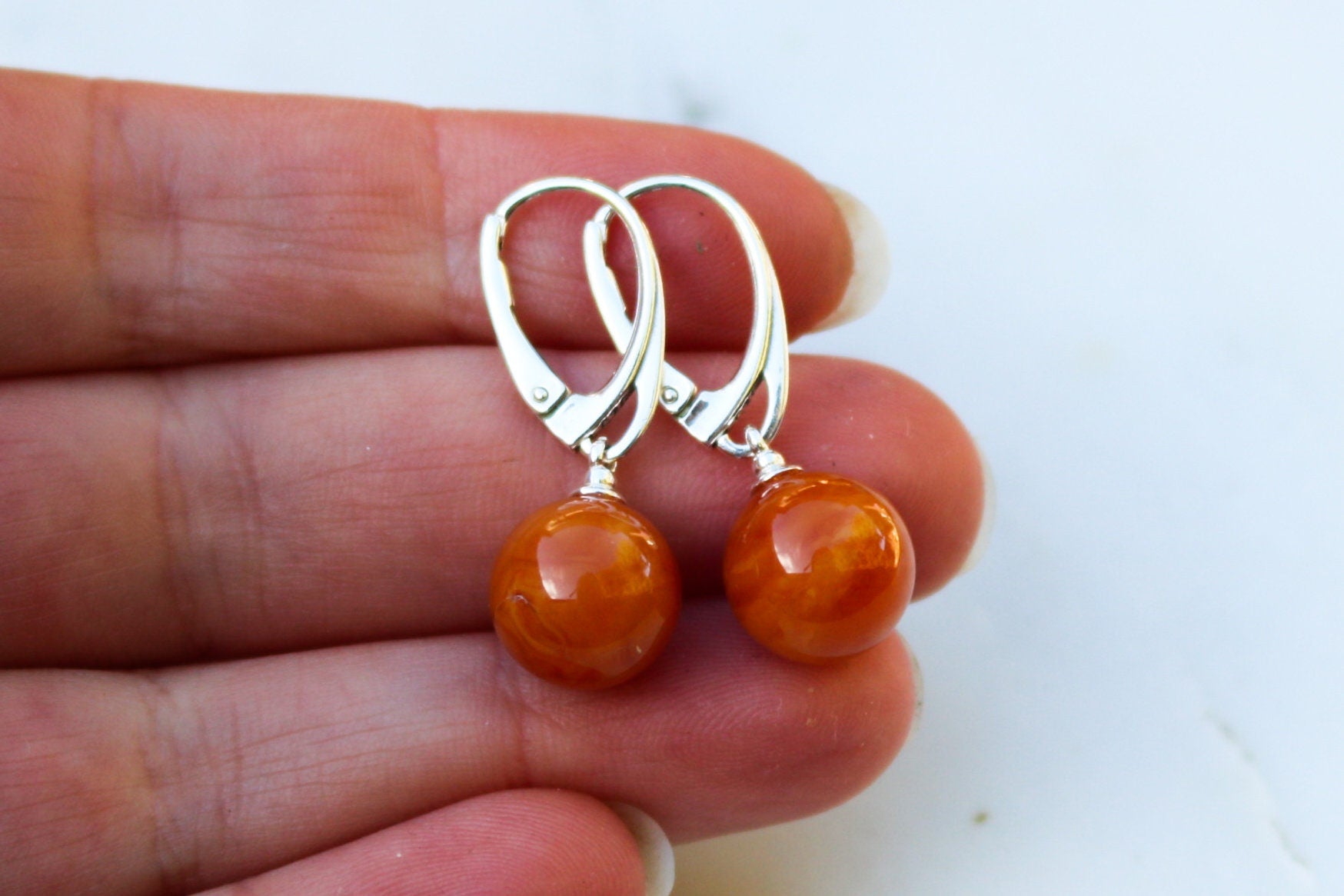 Baltic Amber Earrings Pink Rose Ball Dangling Jewelry 11 mm 1.2" 3 gram