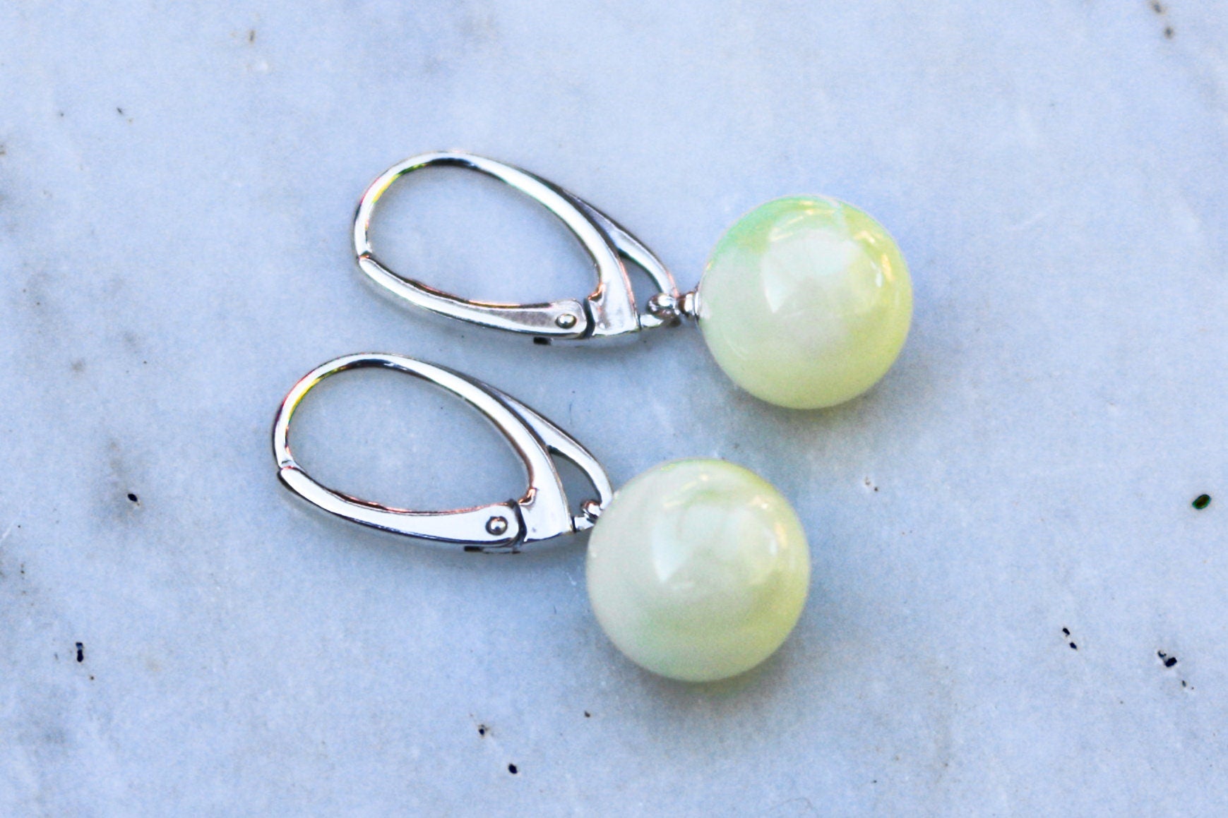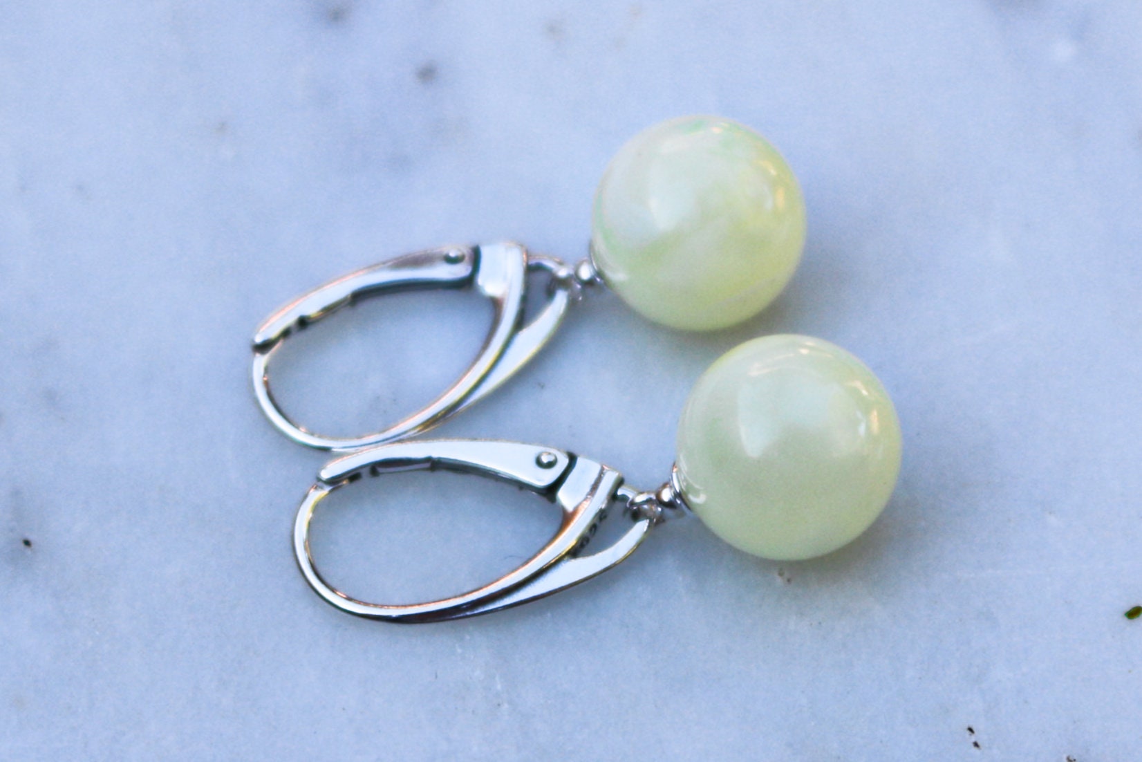 Baltic Amber Earrings Royal White Milky Balls Natural Untreated Jewelry 11 mm 1.22" 3 gram