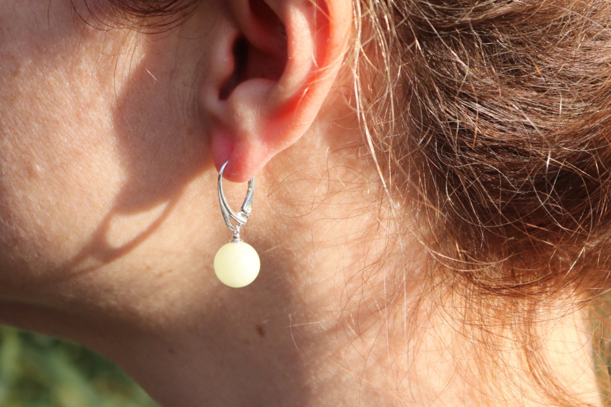 Baltic Amber ball earrings made out of a natural Royal White color. Set in 925 sterling silver.